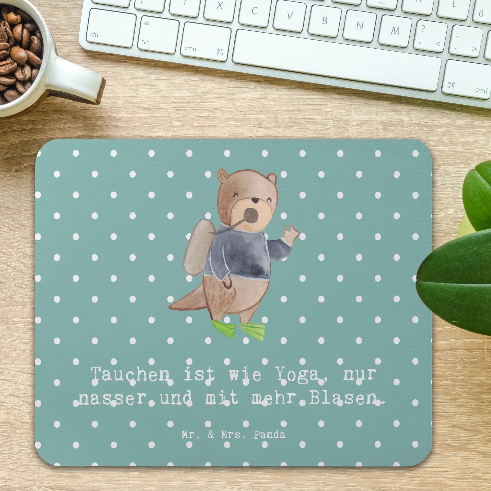 Das perfekte Geschenk für alle Sportliebhaber! Unser einzigartiges Mauspad "Tauchen" von Mr. & Mrs. Panda ist nicht nur ein stylisches Accessoire für dein Homeoffice oder Büro, sondern auch ein echter Hingucker, der dich beim Arbeiten begleitet. Mit dem humorvollen Slogan "Tauchen ist wie Yoga, nur nasser und mit mehr Blasen." sorgt es für gute Laune und bringt eine erfrischende Note in deinen Alltag. Ob du ein leidenschaftlicher Taucher bist oder einfach nur die Unterwasserwelt liebst – dieses Mauspad wird dein Herz höher schlagen lassen!