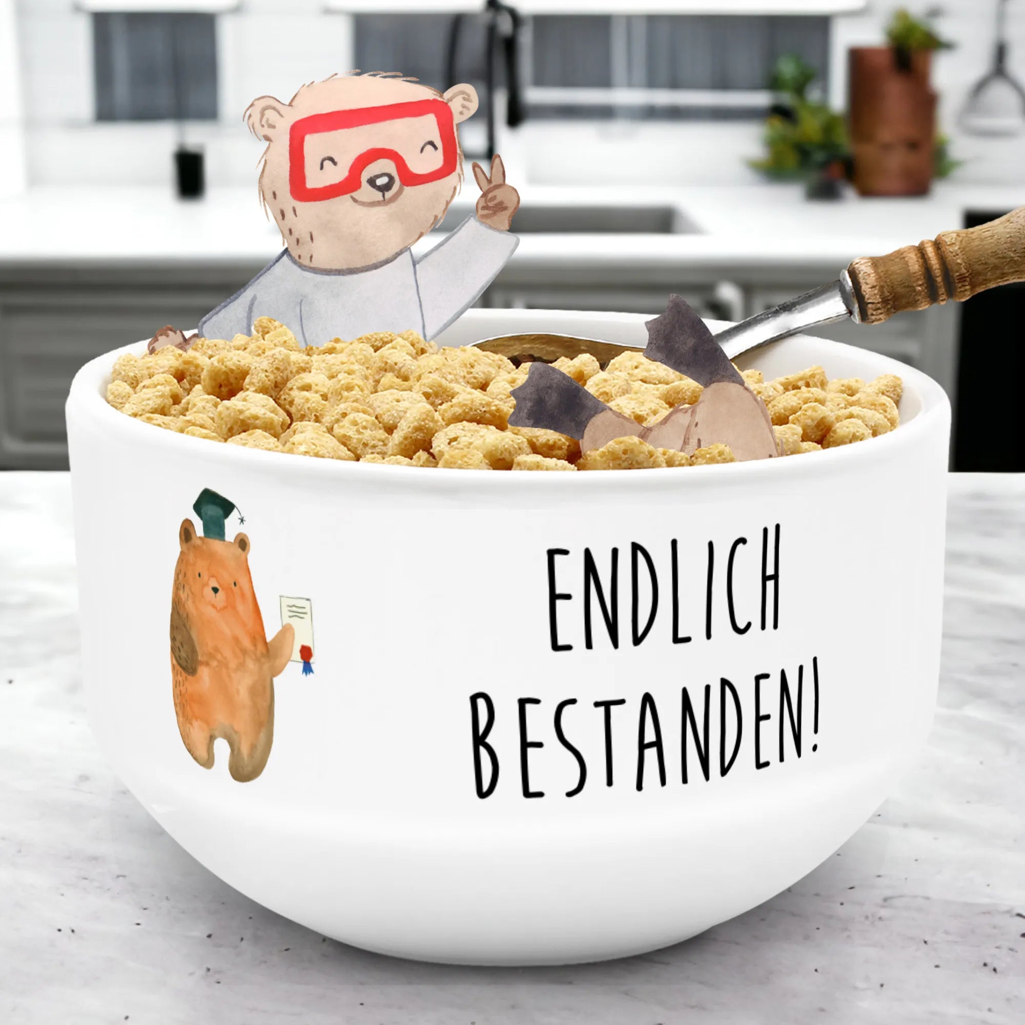 Muesli Bowl bear Test soup bowl, bowl, ceramic bowl, breakfast bowl, porcelain bowl, snack bowl, cereal dish, fruit bowl, dessert bowl, cereal bowl, salad bowl, bear, teddy, teddy bear, cuddly toy, diploma, certificate, examinations, examination passed, Abitur, degree