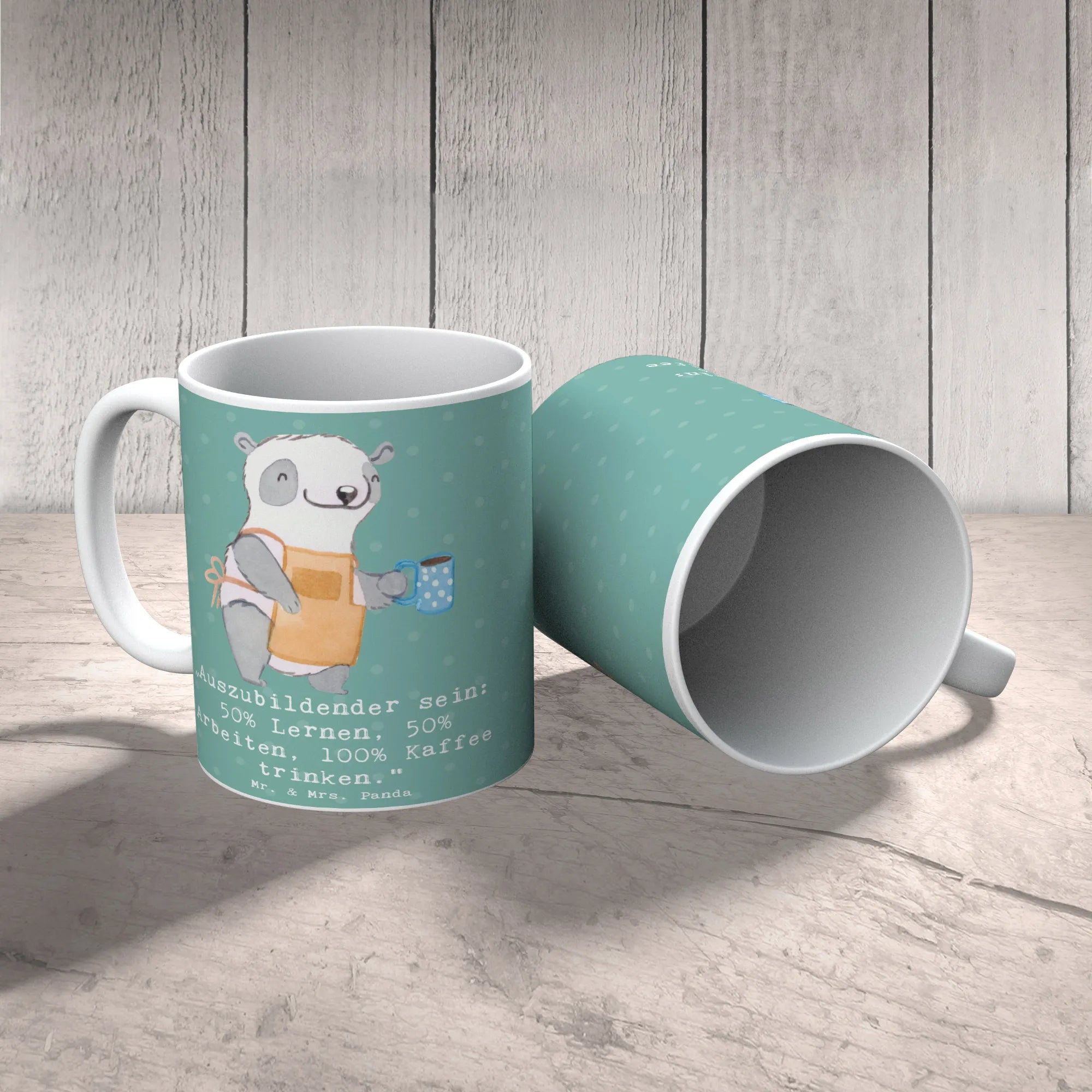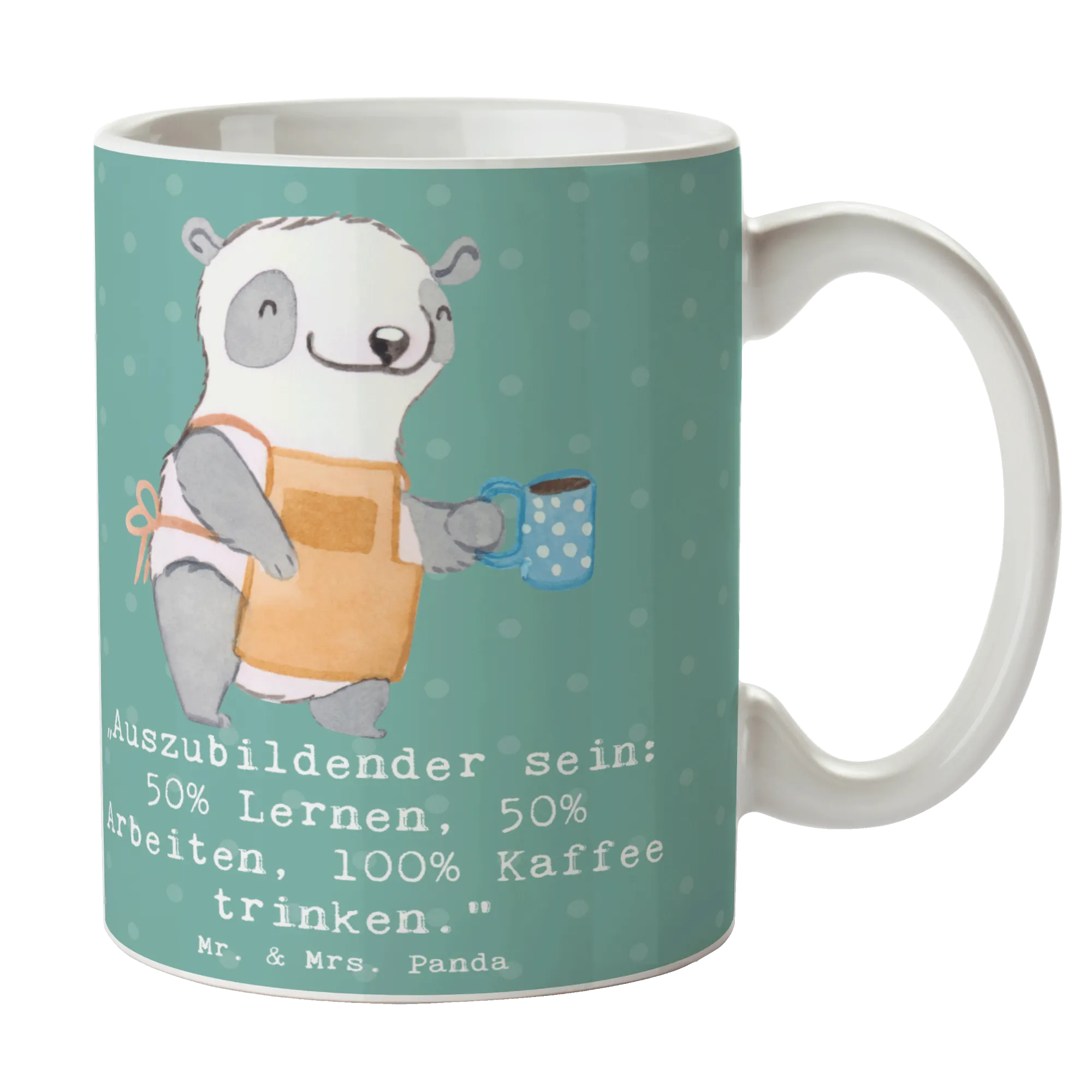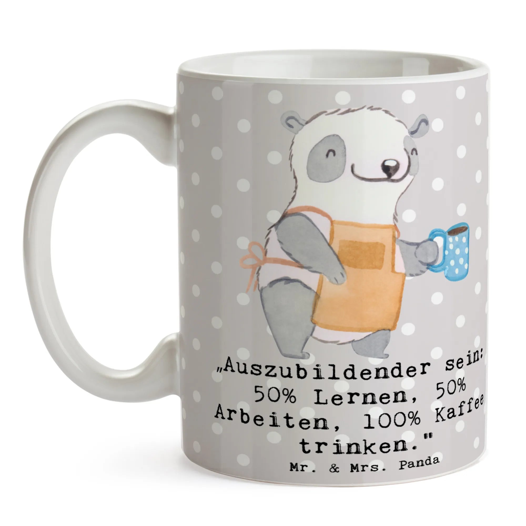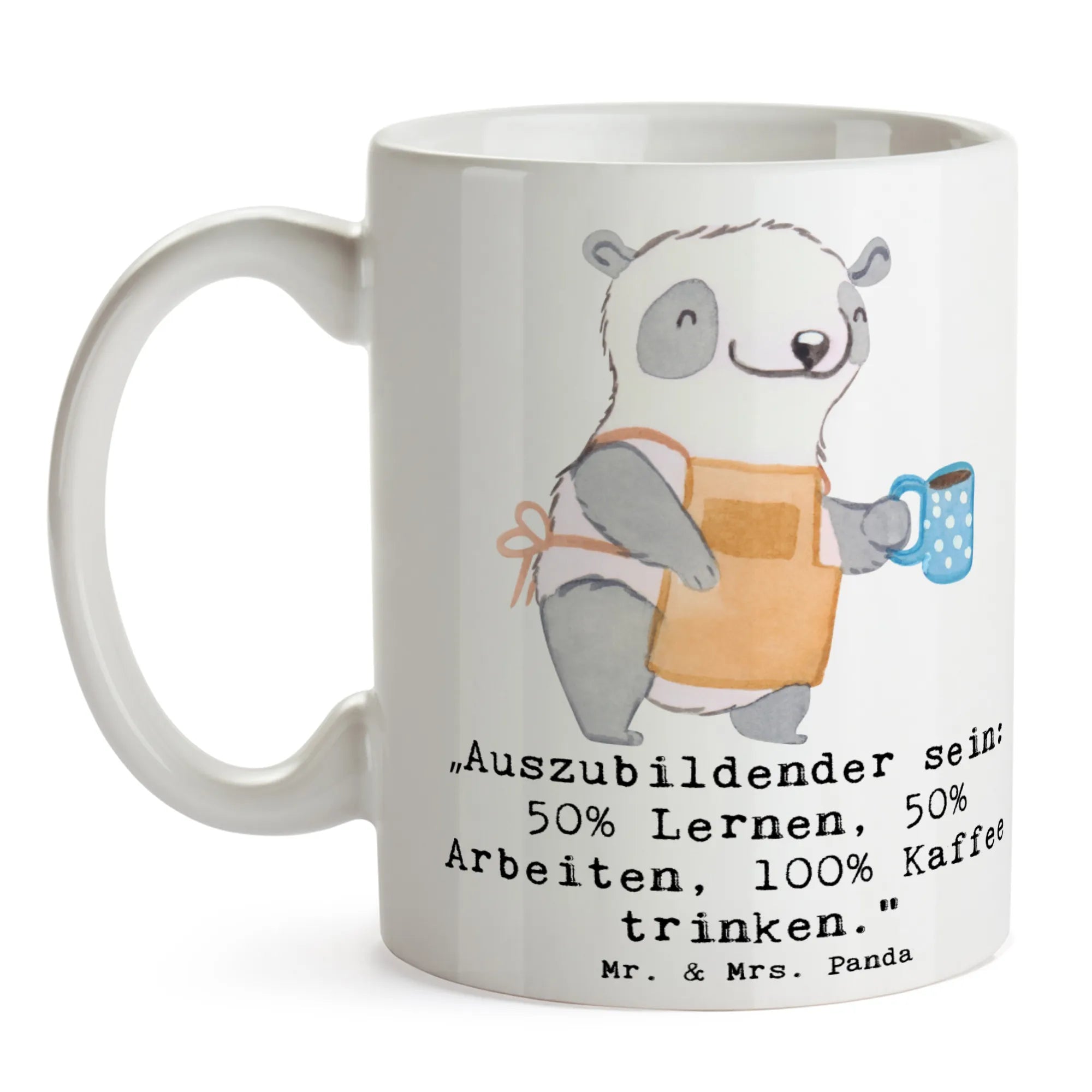 Mug „Auszubildender sein: 50% Lernen, 50% Arbeiten, 100% Kaffee trinke – Mr. & Mrs. Panda