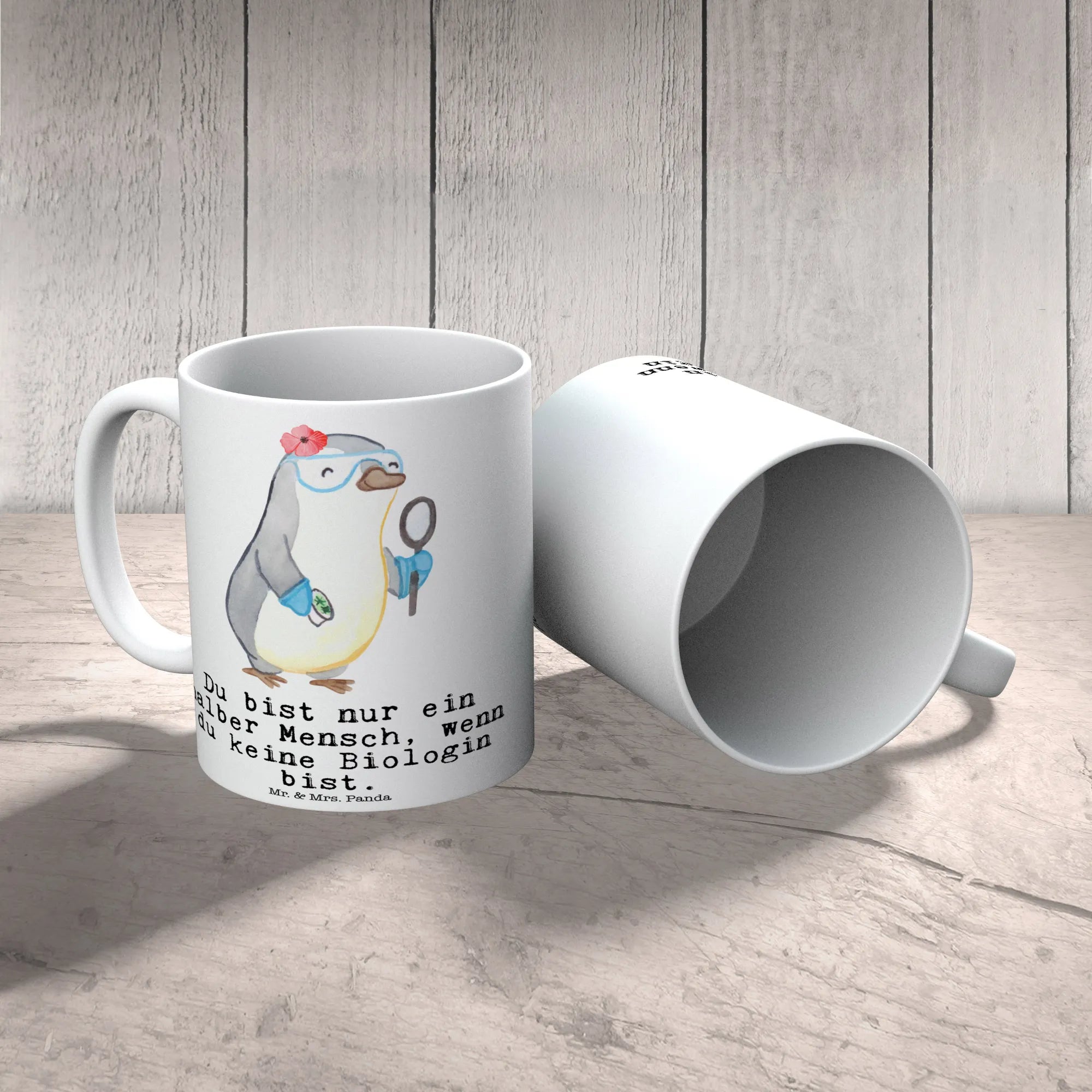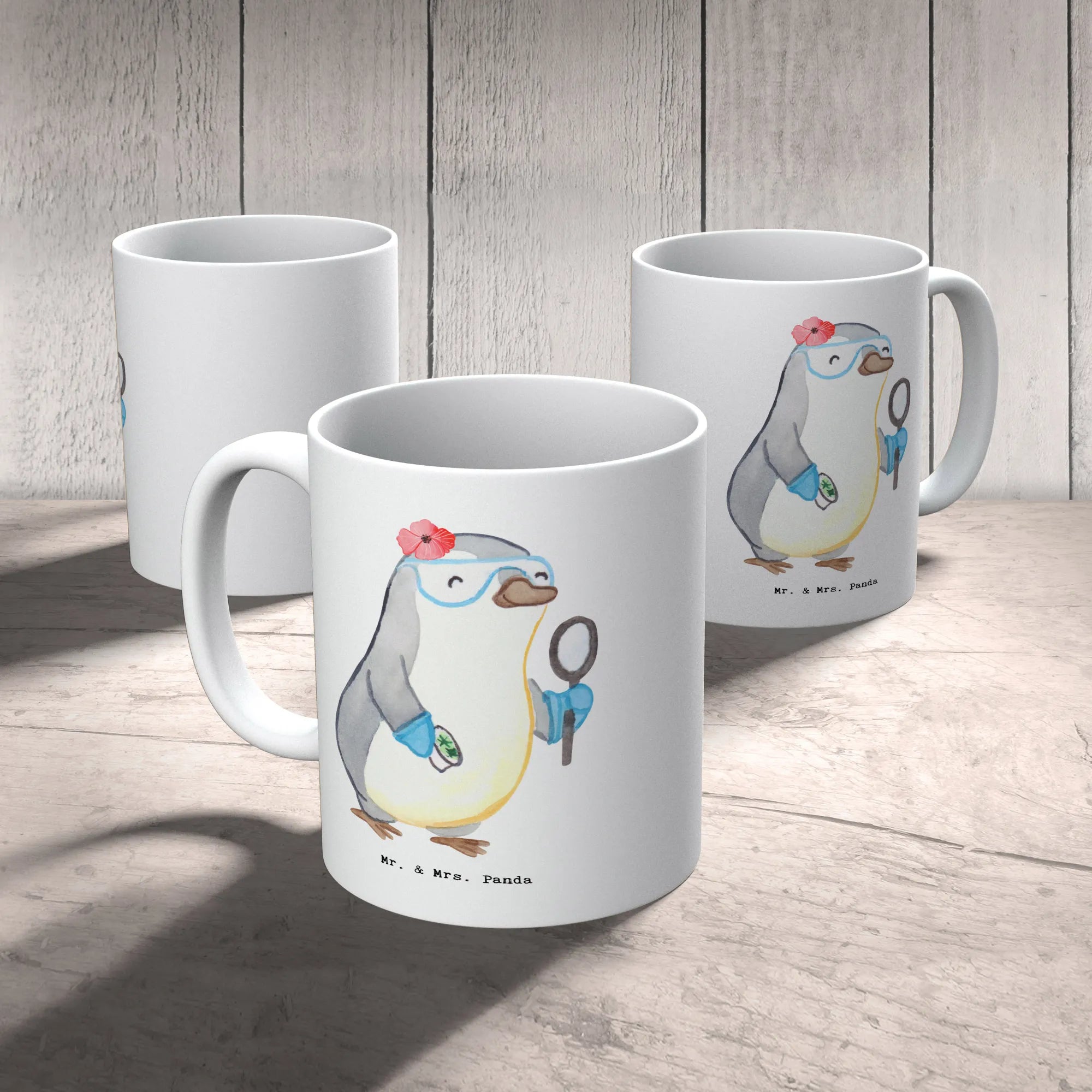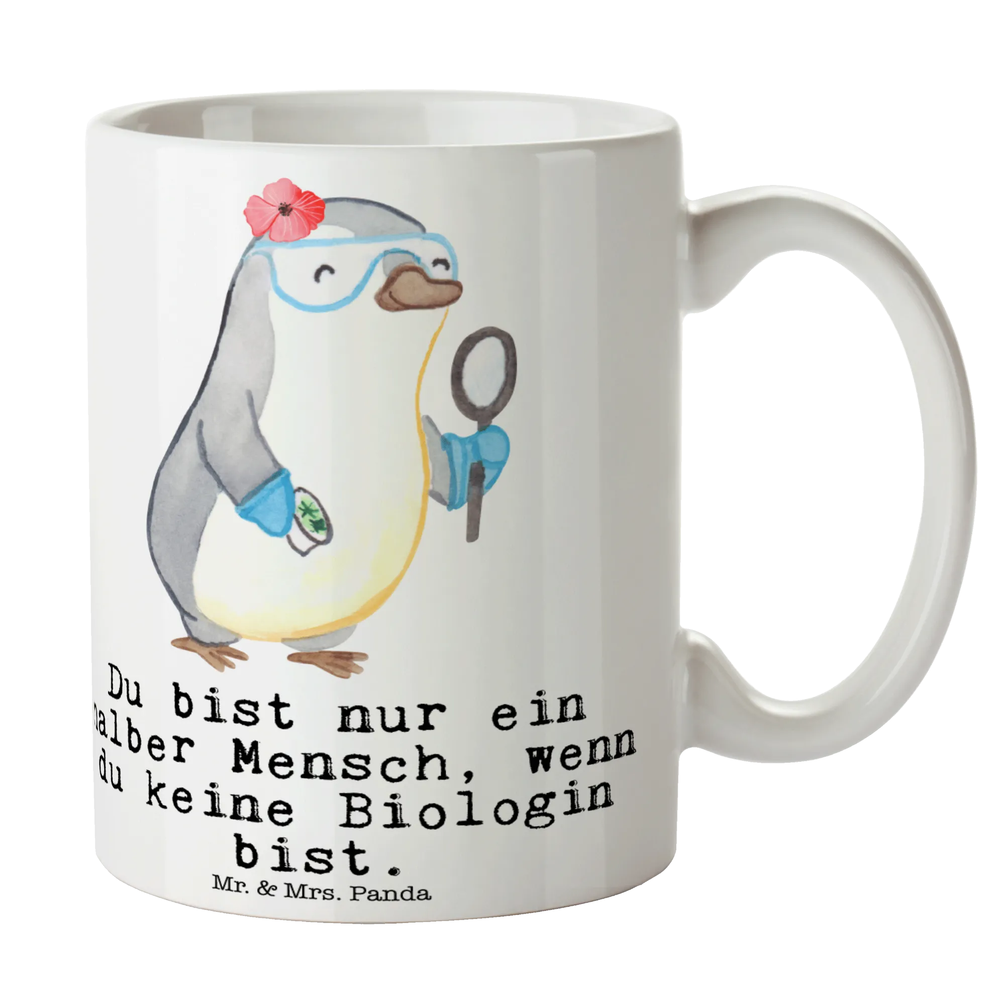 Are you on the lookout for the perfect gift for that special biologist in your life? Look no further! Our stunning ceramic mug featuring a delightful biologist design from the charming Mr. & Mrs. Panda collection is an ideal choice for anyone who loves the wonders of nature and the excitement of scientific discovery. With its beautifully illustrated motif, this mug showcases a cute penguin in a laboratory, representing the fun and engaging world of biology.