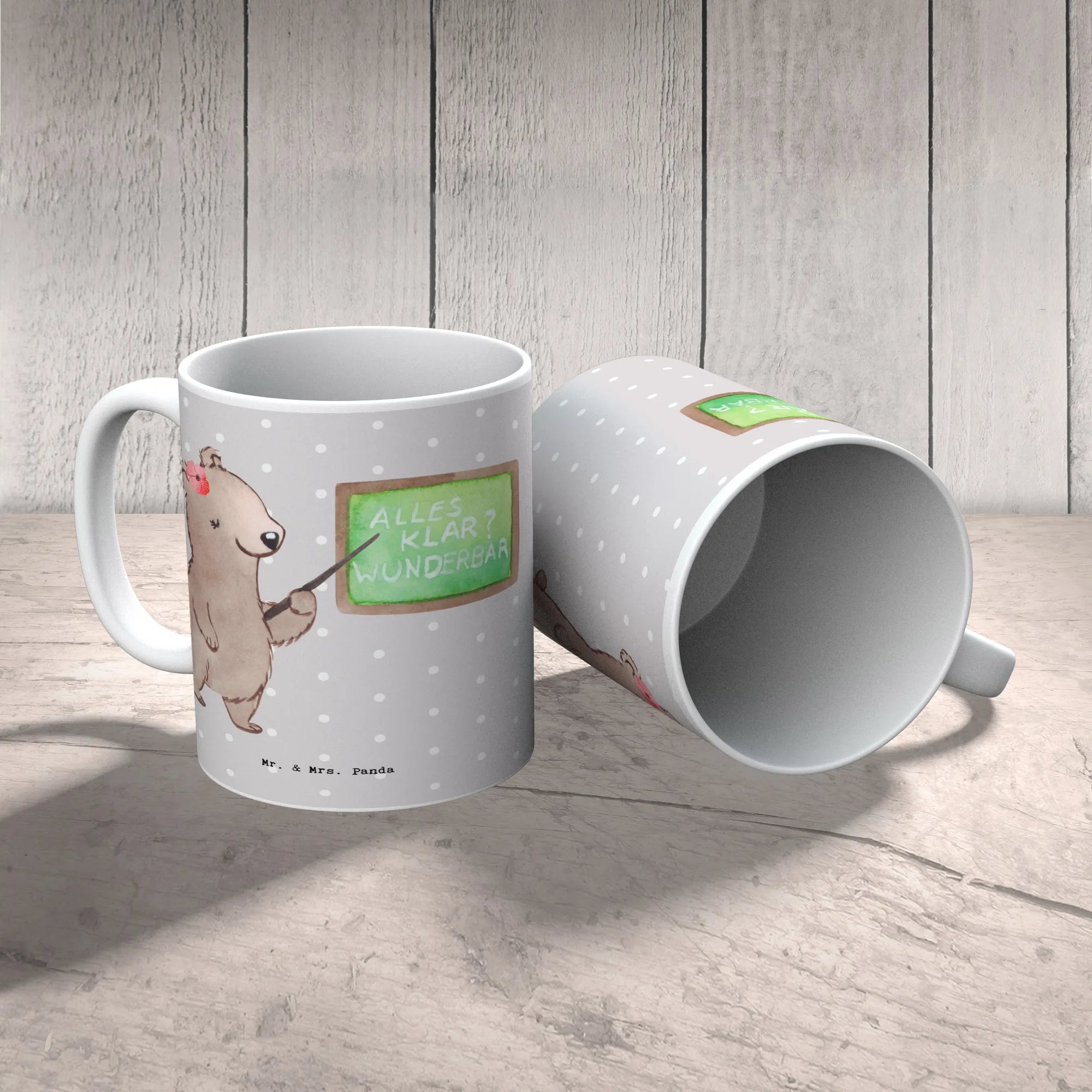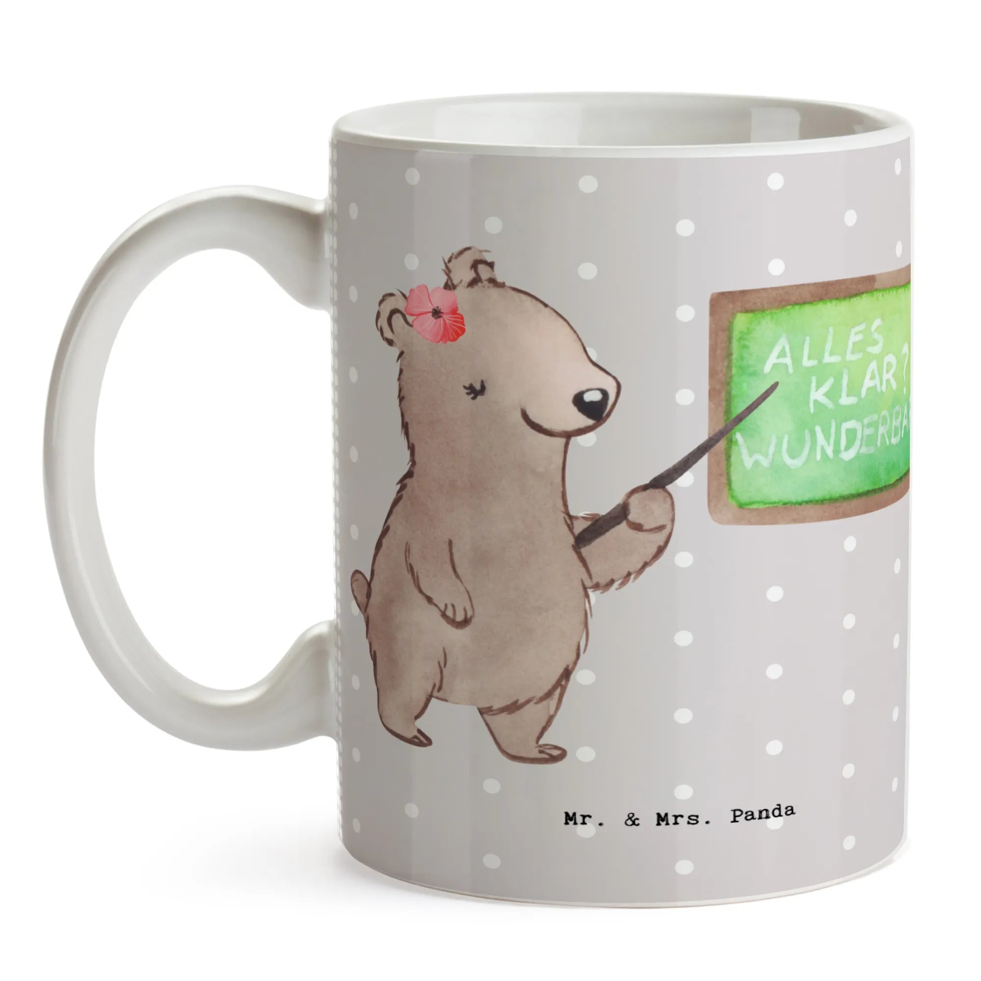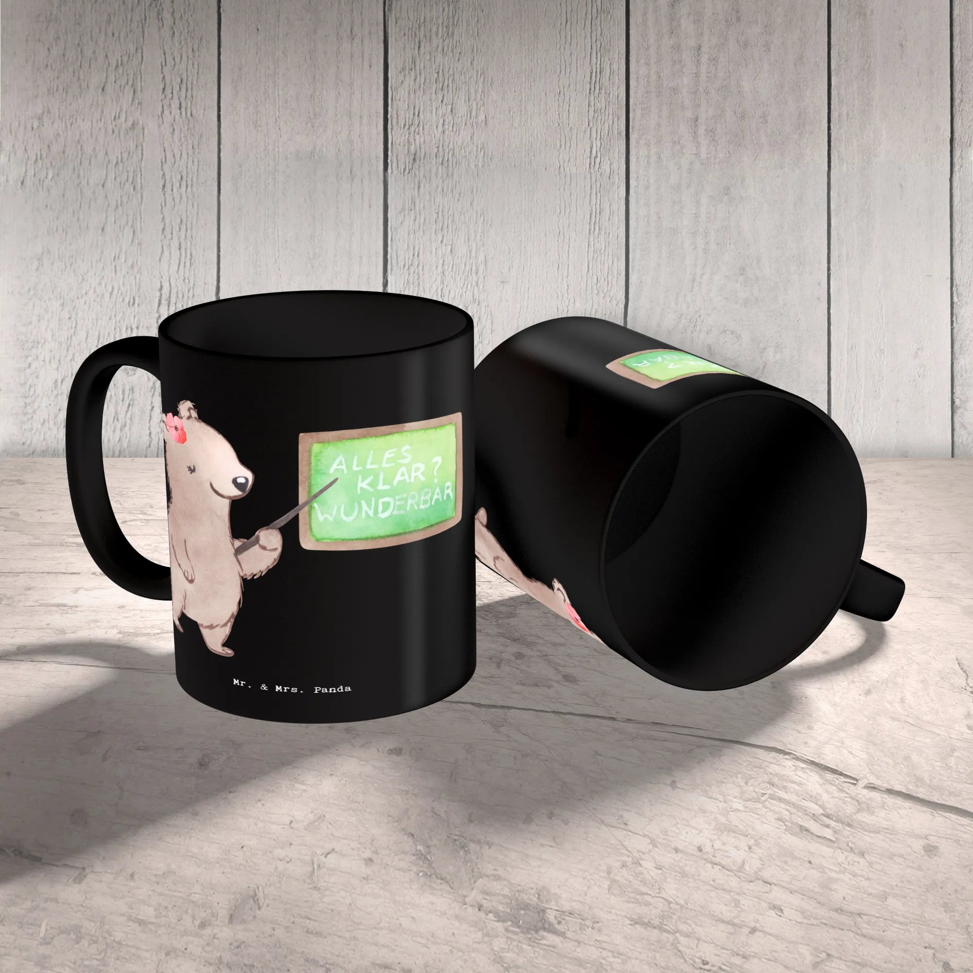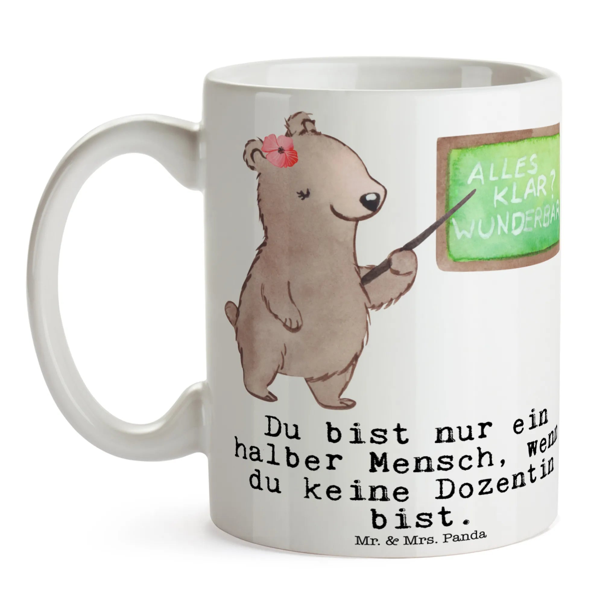 The Mr. & Mrs. Panda mug features a stunning illustration of a cute female bear standing proudly in front of a chalkboard, embodying the spirit of teaching. And let’s be honest: "Is life even worth living if you're not a lecturer?" – this playful saying is sure to elicit a smile while adding a touch of humor to those coffee breaks during lectures.