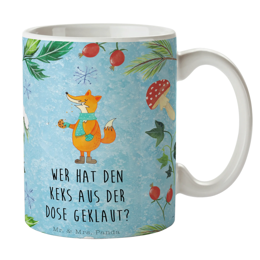 Step into a world of delight with our whimsical fox who stands tall, donning a turquoise polka-dotted scarf and matching gloves. In his paw, he holds a cookie, playfully giving it a kiss as crumbs tumble down around him. The playful phrase 'Wer hat den Keks aus der Dose geklaut?' wraps around this charming character, adding to the lighthearted atmosphere. This motif isn't just about cookies; it’s a celebration of joy, curiosity, and the playful moments we cherish. Imagine this fox in your home, making every gathering a bit brighter and every treat a little sweeter. With its russet tones and cheerful demeanor, this motif invites you to embrace life’s little joys, whether it’s sharing a cookie or simply enjoying a moment of laughter with friends. Let this delightful fox inspire you to find joy in every day, reminding us all to indulge in the playful side of life.