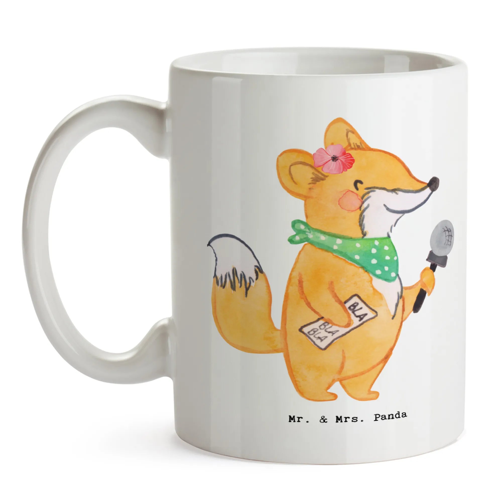 Are you on the hunt for the perfect gift for a fantastic journalist in your life? Look no further! Our Mr. & Mrs. Panda mug, featuring a charming design of a fox holding a microphone, is not just a coffee mug; it’s a delightful daily companion perfect for sipping coffee or tea while diving into the exciting world of news reporting.