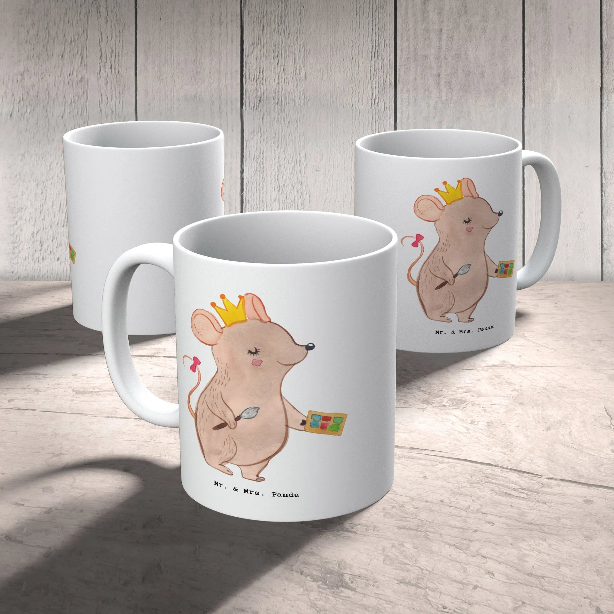 If you’re on the hunt for the perfect gift for a make-up artist, look no further! Introducing the fabulous ceramic mug from Mr. & Mrs. Panda, designed especially for beauty enthusiasts and professionals alike. This delightful mug features an adorable illustration of a cute little mouse, complete with a crown, eyeshadow in one hand, and a makeup brush in the other—truly capturing the essence of a makeup artist's world!