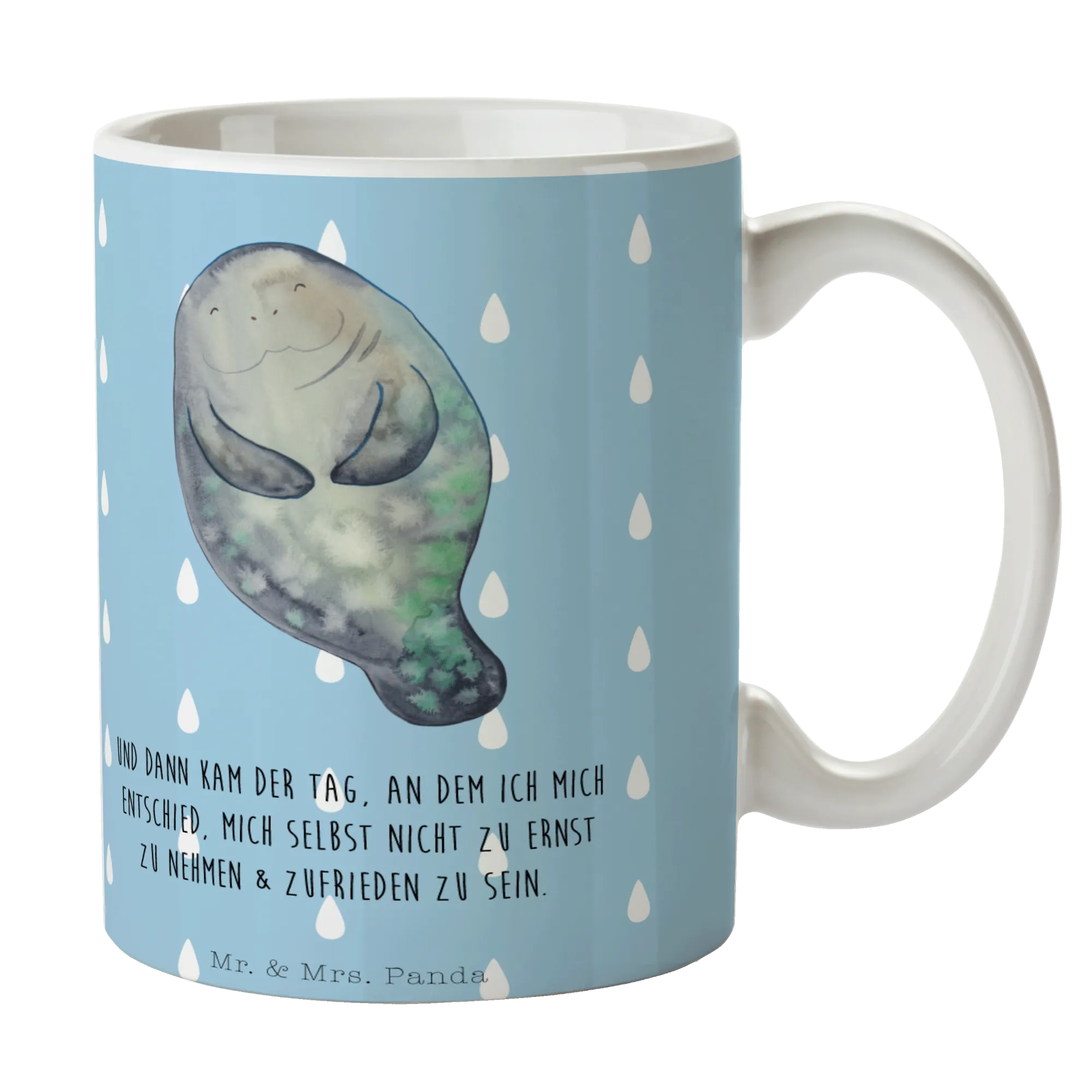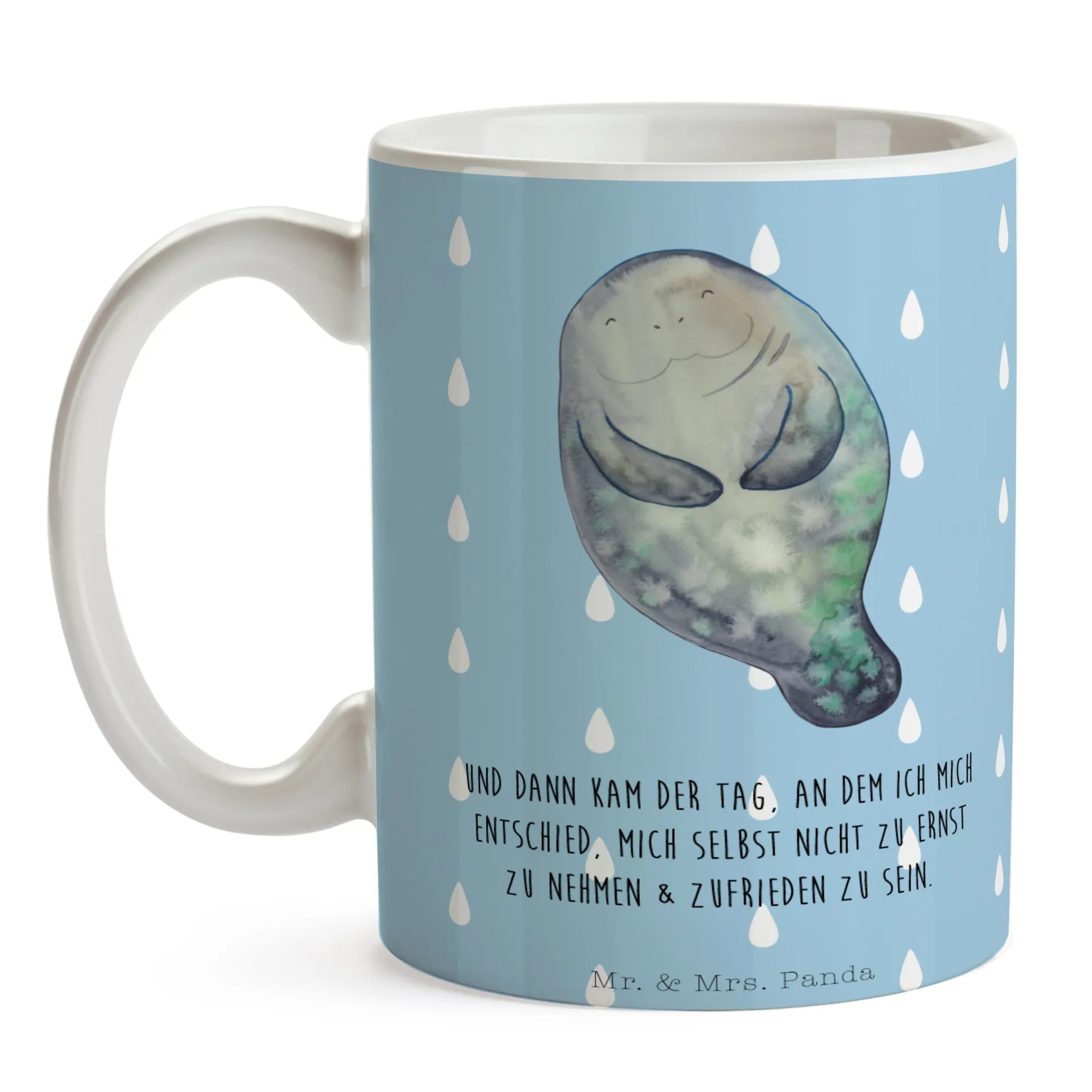 The charming design showcases a friendly manatee, surrounded by soothing shades of blue and gray, with gentle green accents reminiscent of aquatic life. Placed on this mug, the adorable manatee symbolizes self-love, care, and the beauty of new beginnings. There's a palpable warmth in its happy expression that serves as a delightful reminder to embrace life with a smile. Whether you’re treating yourself or looking for the ideal gift, this mug speaks volumes about positivity and mindfulness.