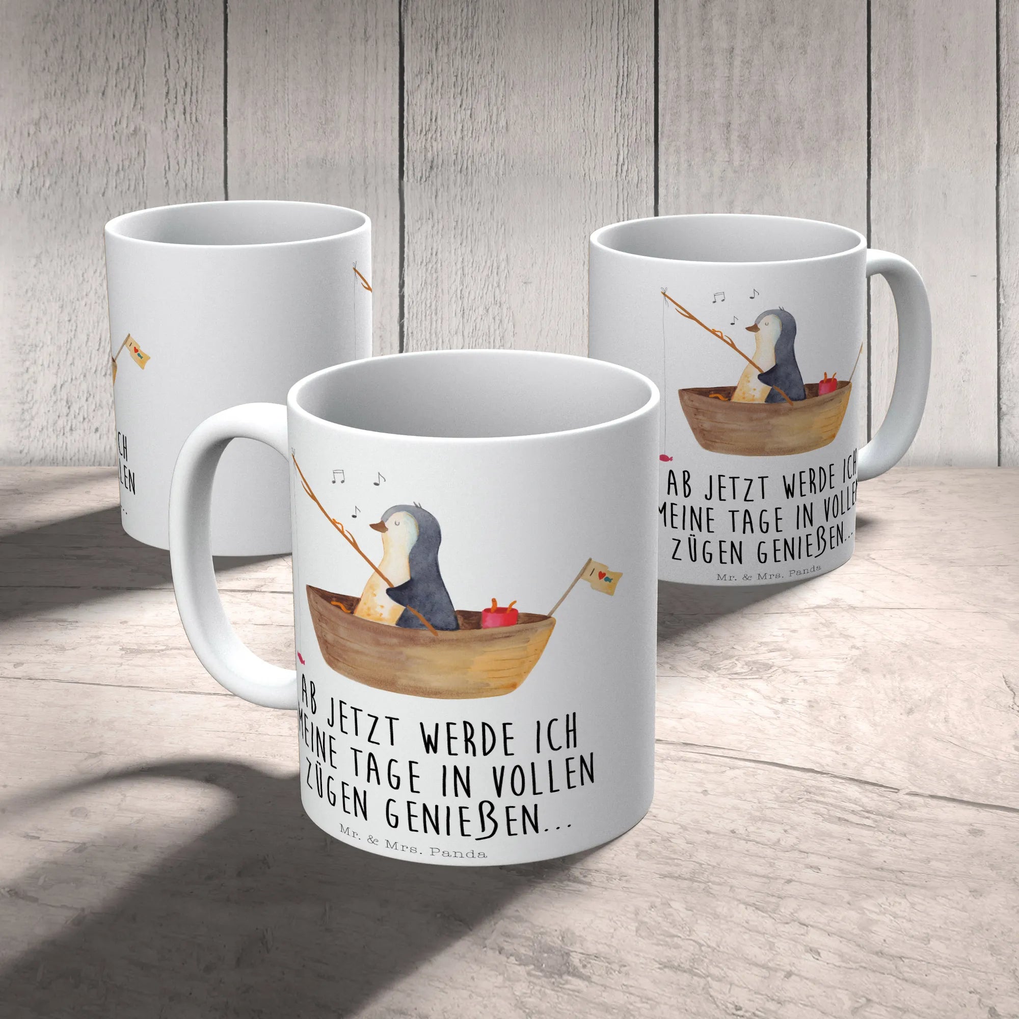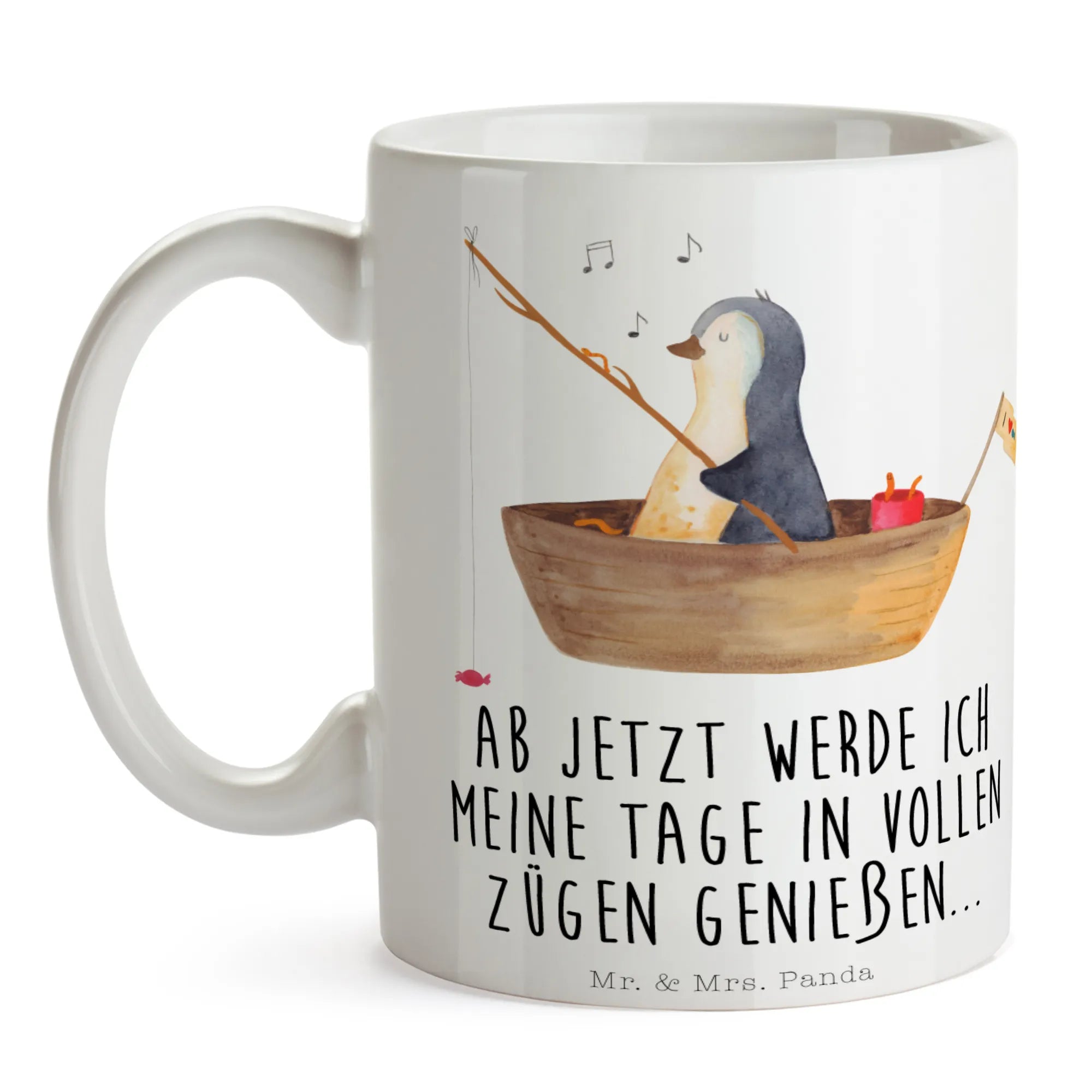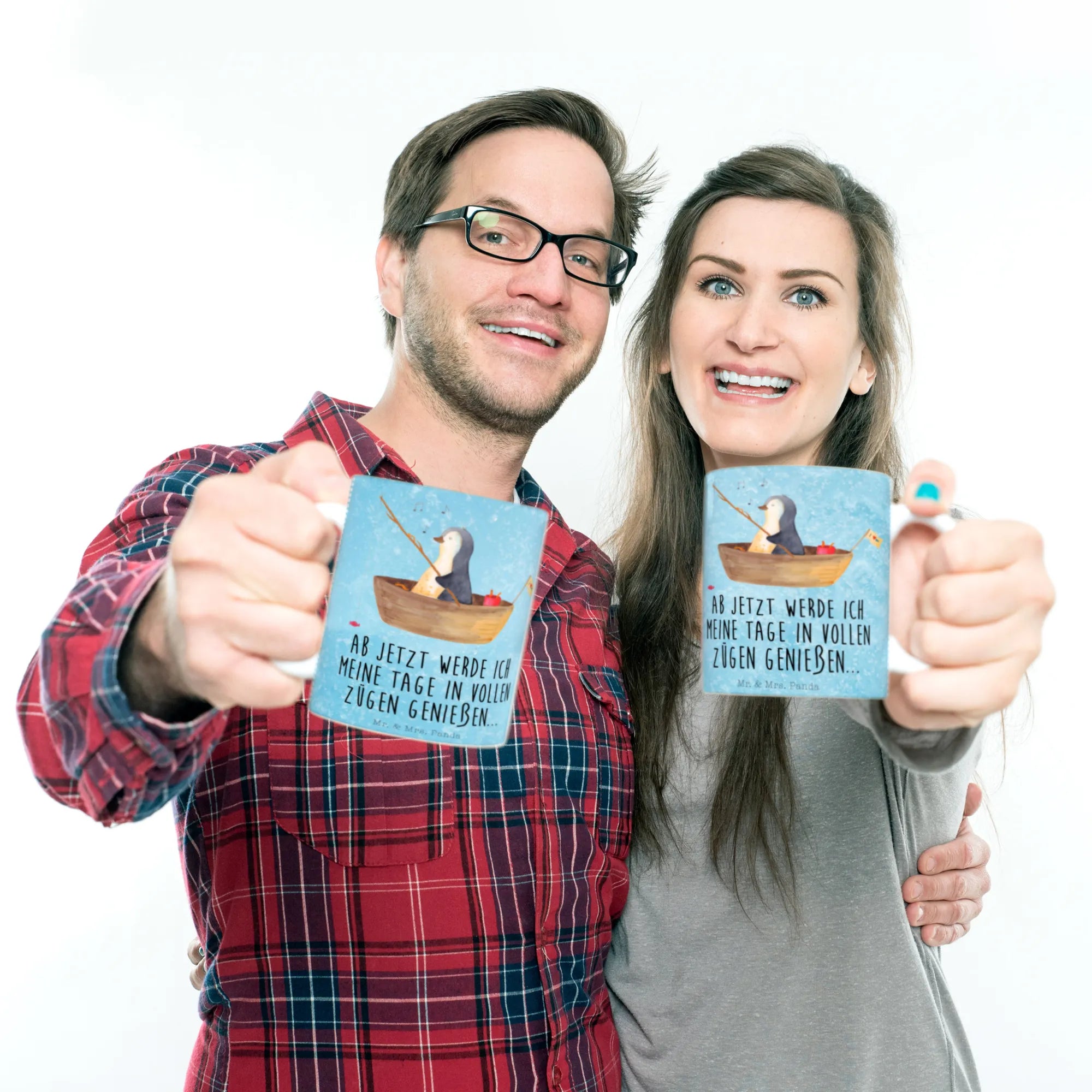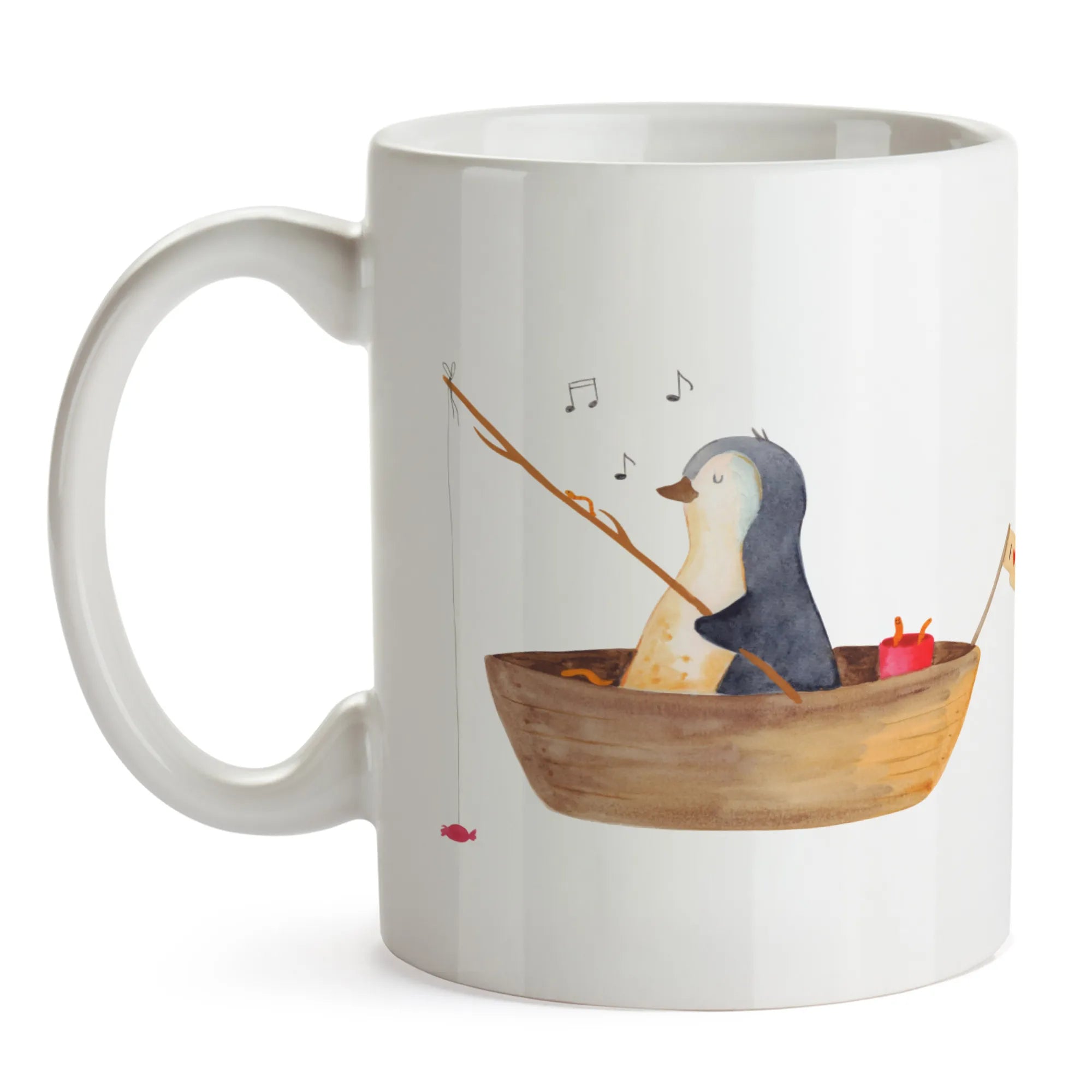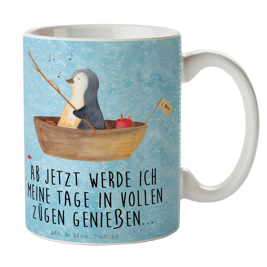 Mug Penguin fishing boat - with a saying - Ceramics - Ice Blue
