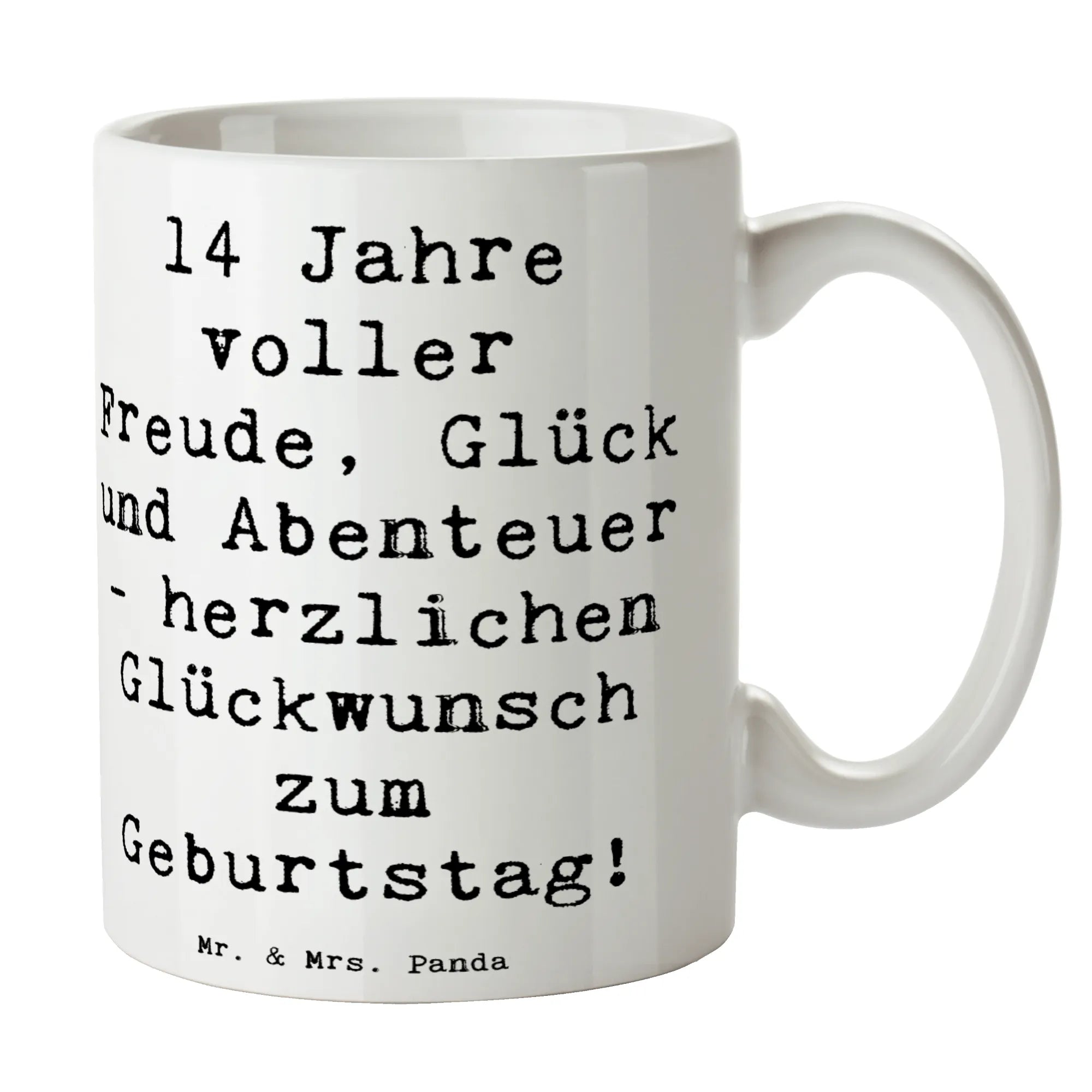 Mug Saying 14 Jahre voller Freude, Glück und Abenteuer - herzlichen Gl – Mr. & Mrs. Panda