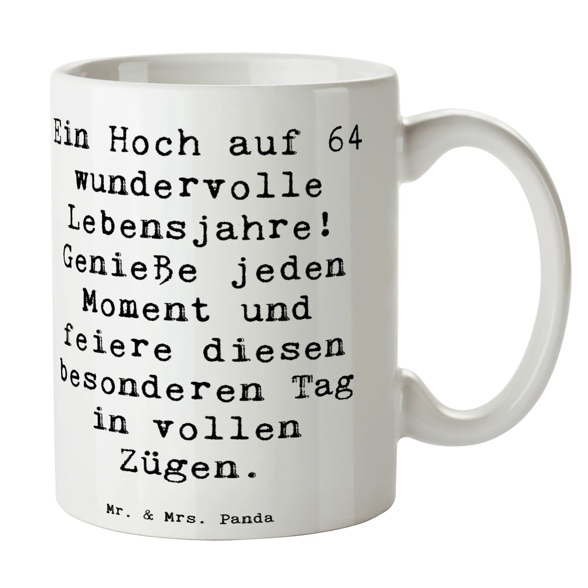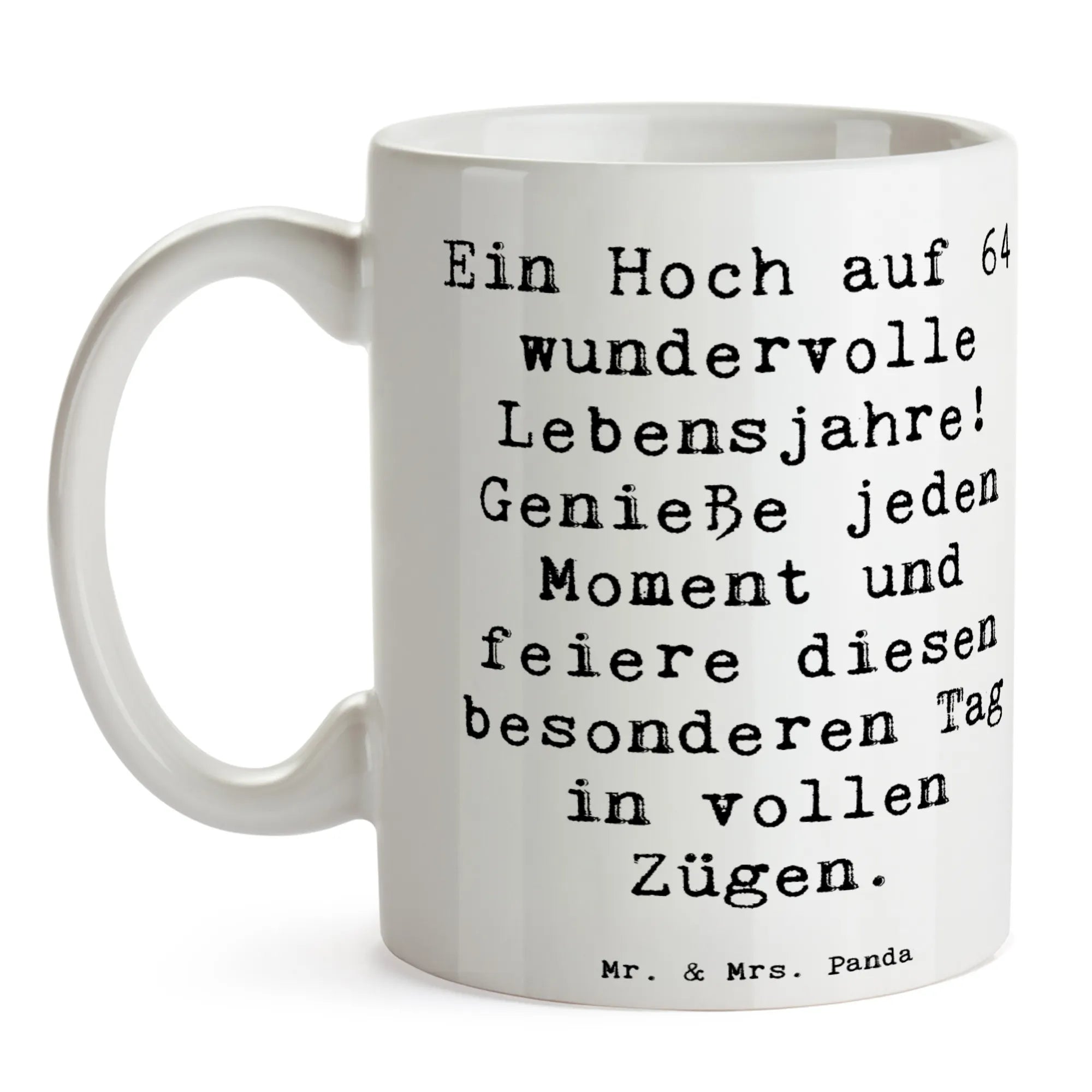Mug Saying Ein Hoch auf 64 wundervolle Lebensjahre! Genieße jeden Moment und feiere diesen besonderen Tag in vollen Zügen. - White