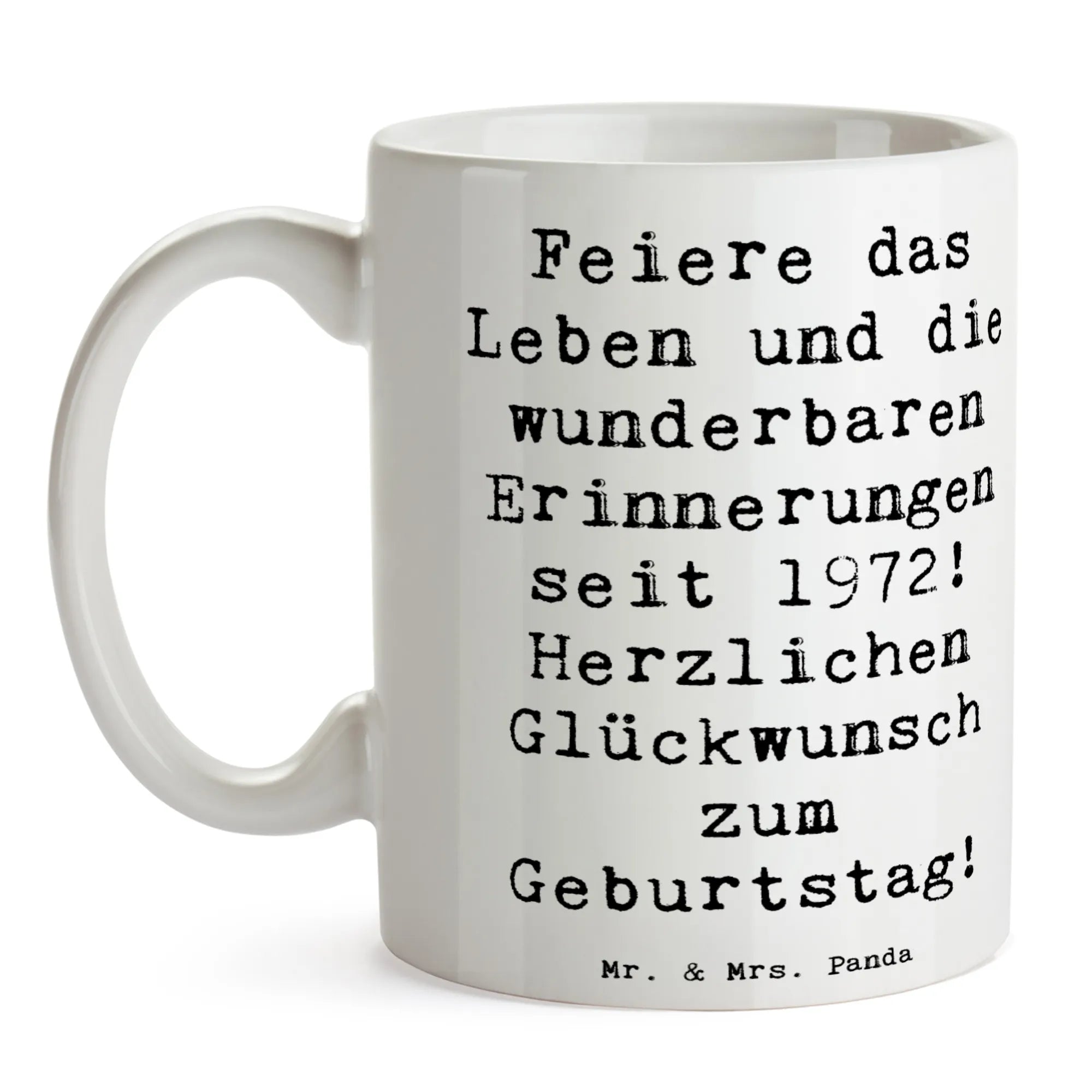 Mug Saying Feiere das Leben und die wunderbaren Erinnerungen seit 1972! Herzlichen Glückwunsch zum Geburtstag! - White