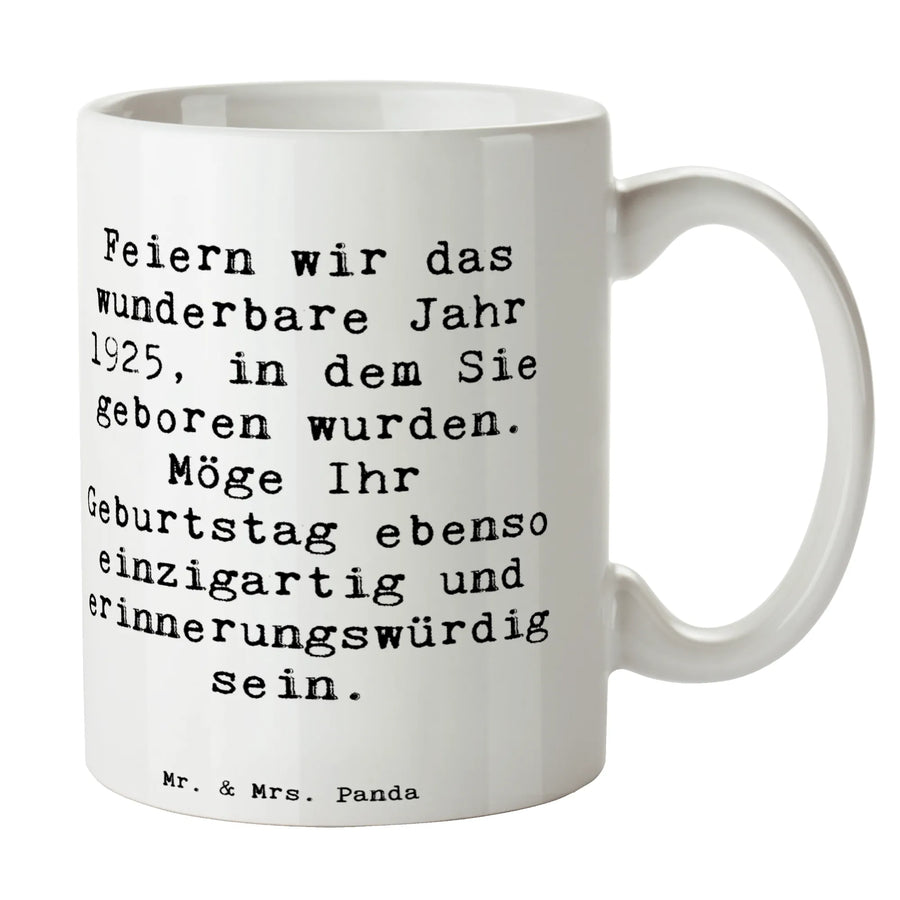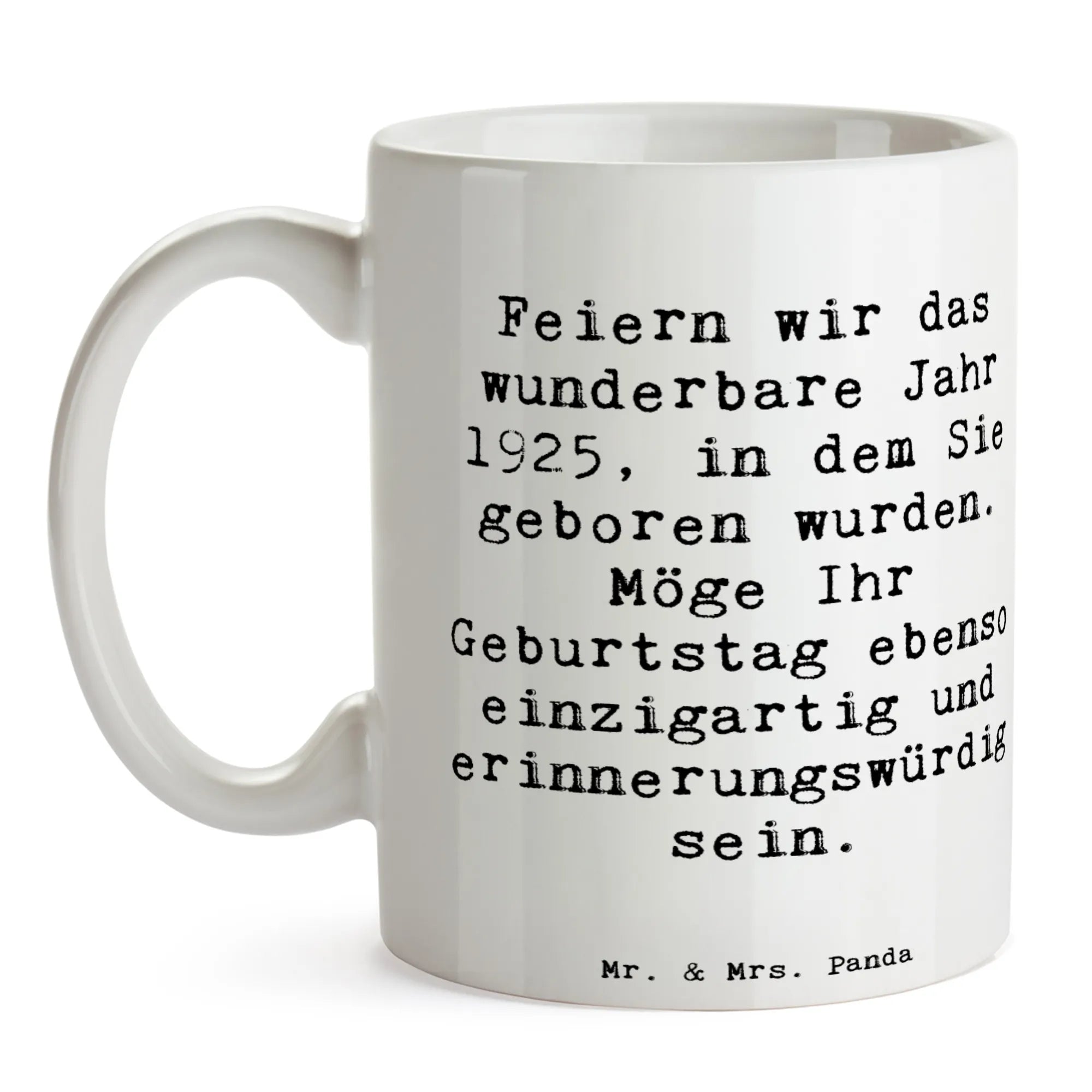 Mug Saying Feiern wir das wunderbare Jahr 1925, in dem Sie geboren wurden. Möge Ihr Geburtstag ebenso einzigartig und erinnerungswürdig sein. - White