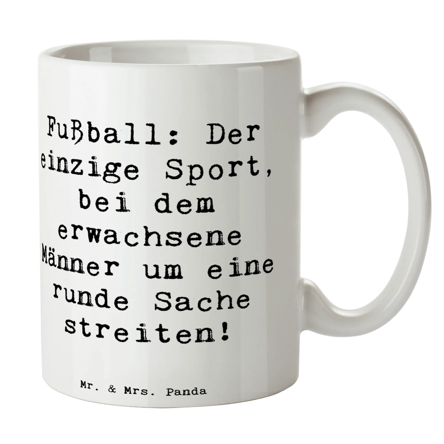 Mug Saying Fußball: Der einzige Sport, bei dem erwachsene Männer um eine runde Sache streiten! - White
