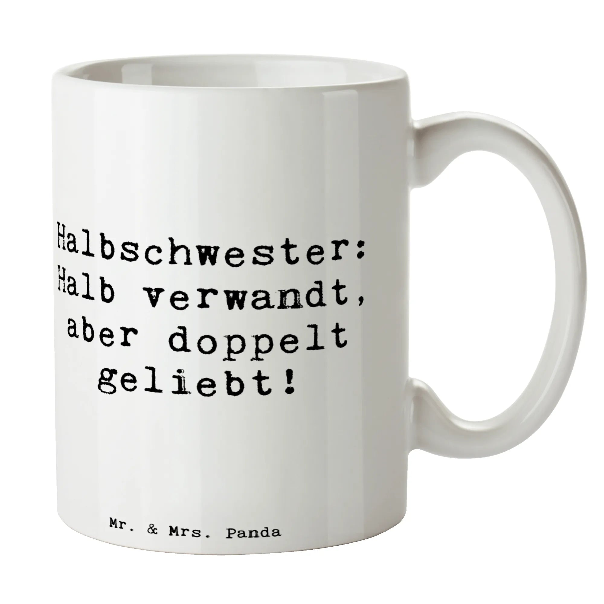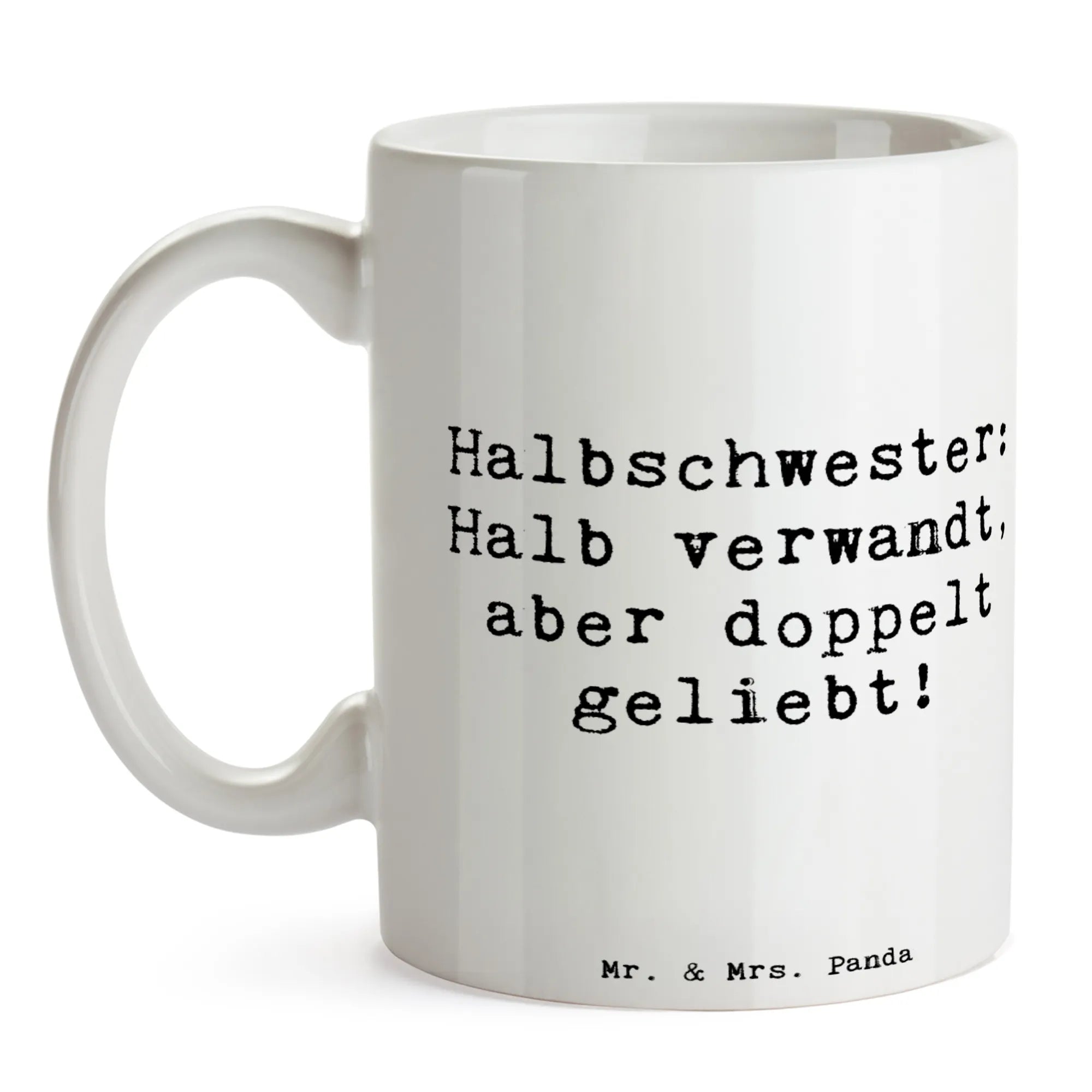 Mug Saying Halbschwester: Halb verwandt, aber doppelt geliebt! - White