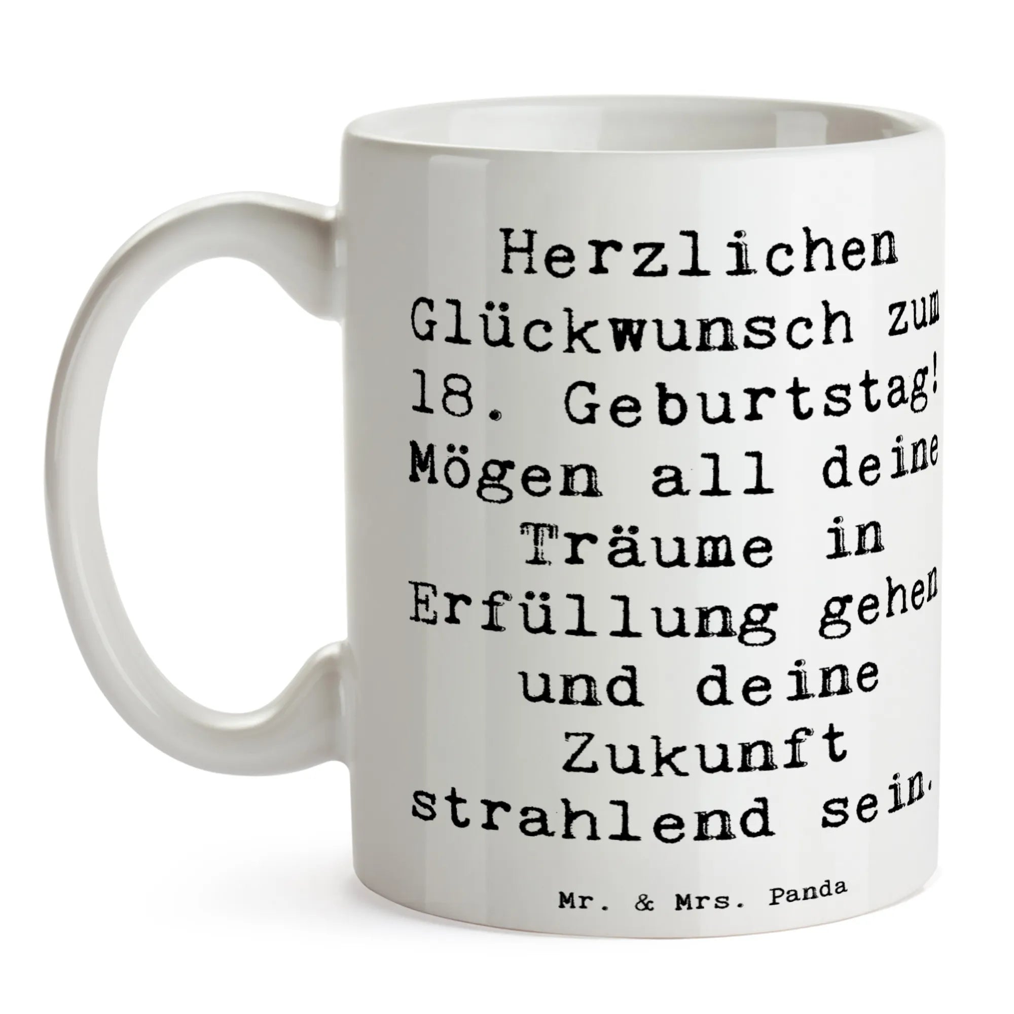 Mug Saying Herzlichen Glückwunsch zum 18. Geburtstag! Mögen all deine Träume in Erfüllung gehen und deine Zukunft strahlend sein. - White