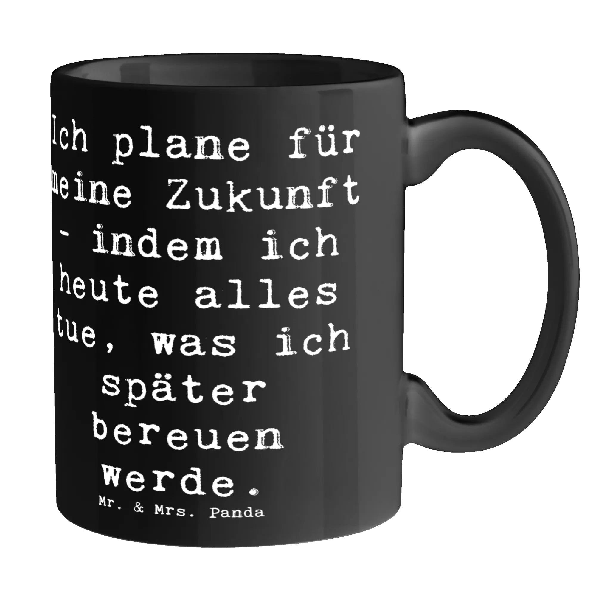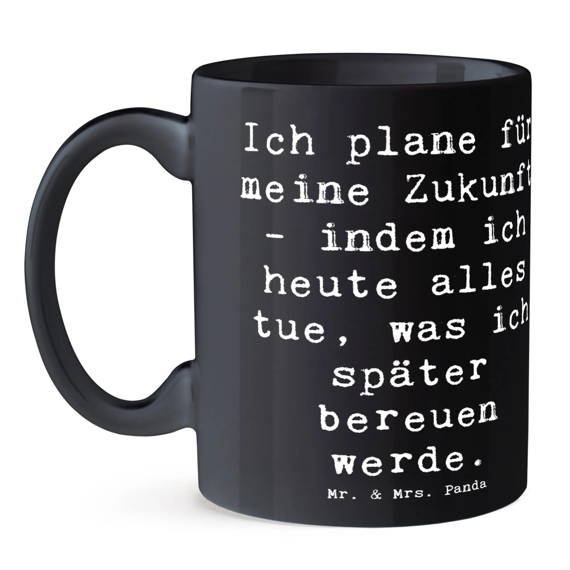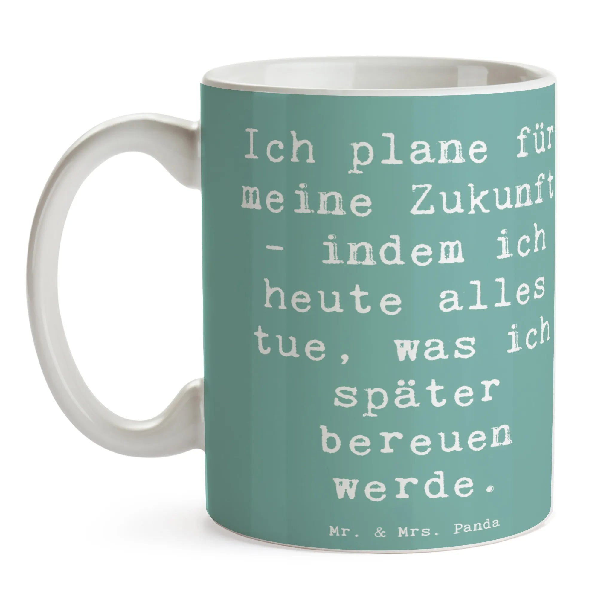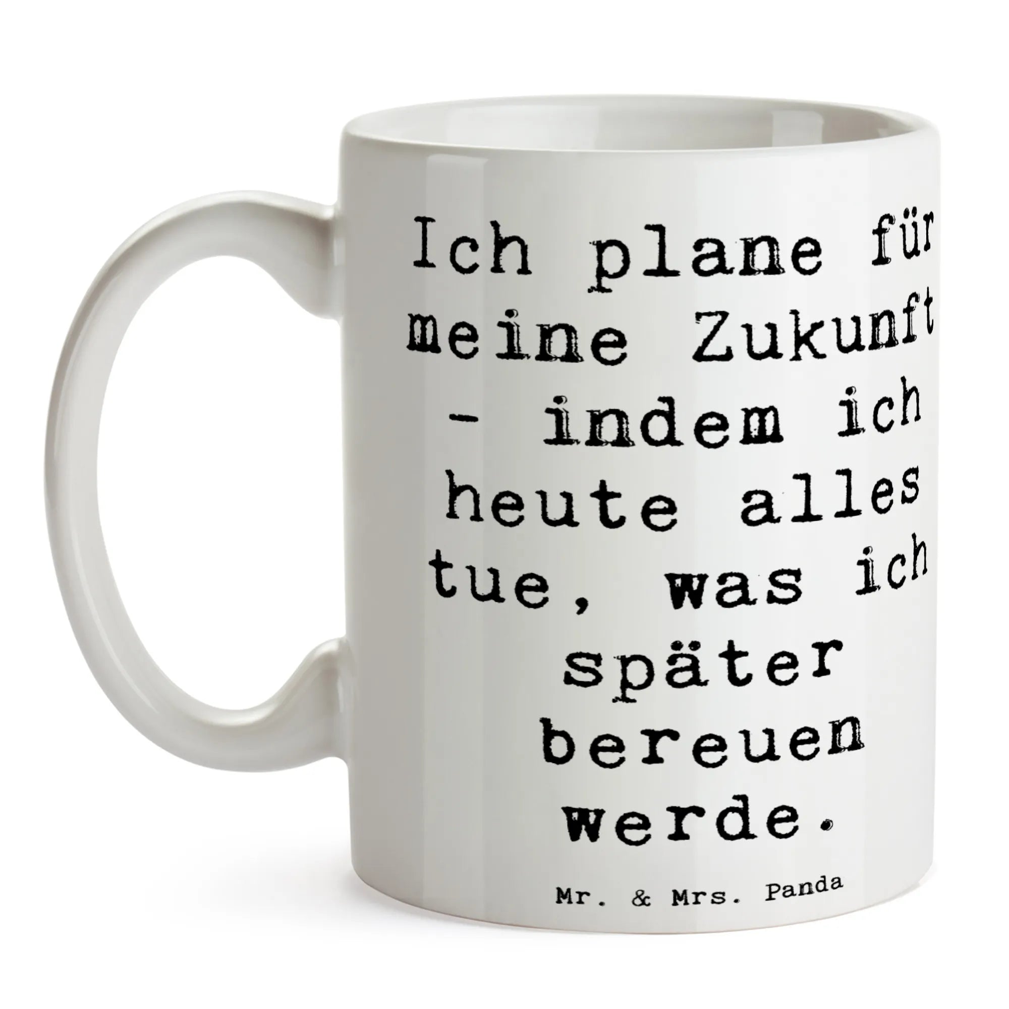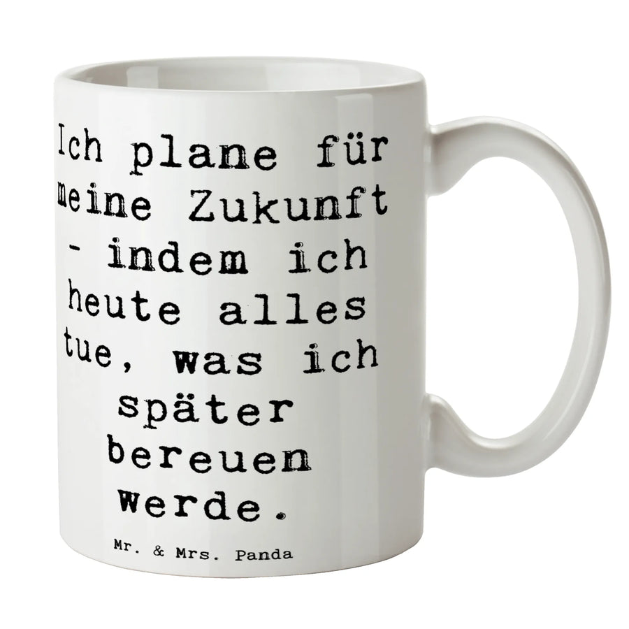 Mug Saying Ich plane für meine Zukunft - indem ich heute alles tue, was ich später bereuen werde. - White