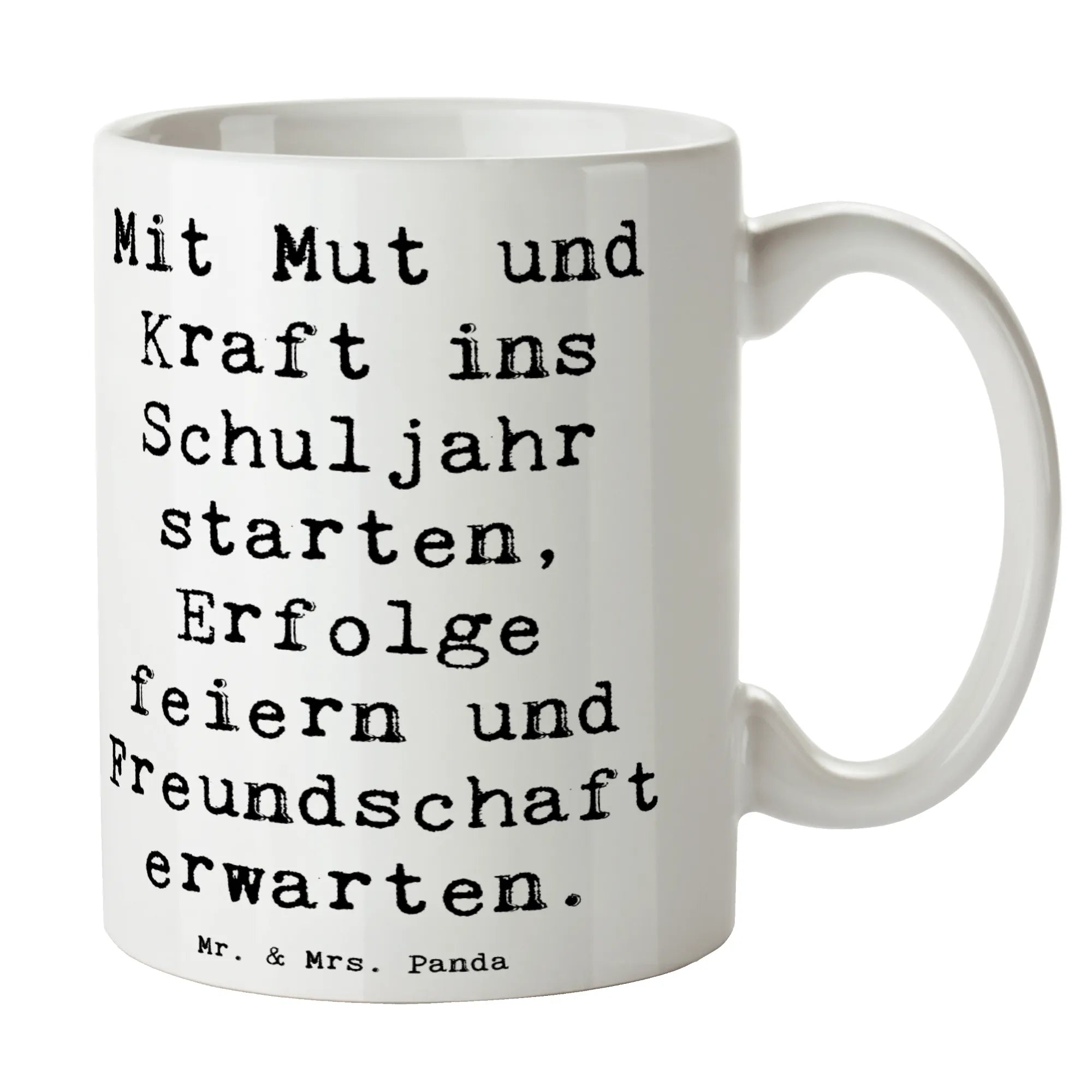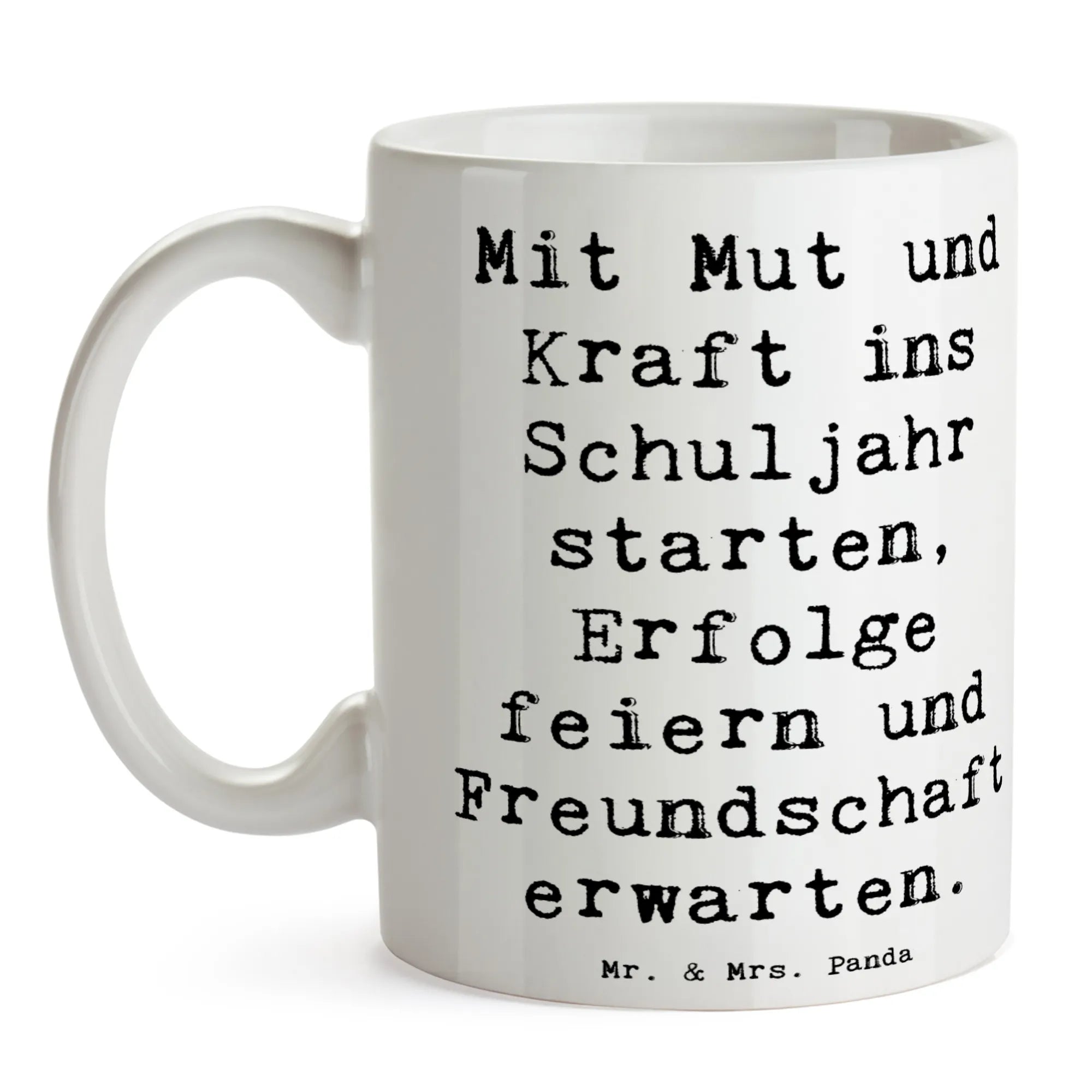Mug Saying Mit Mut und Kraft ins Schuljahr starten, Erfolge feiern und Freundschaft erwarten. - White