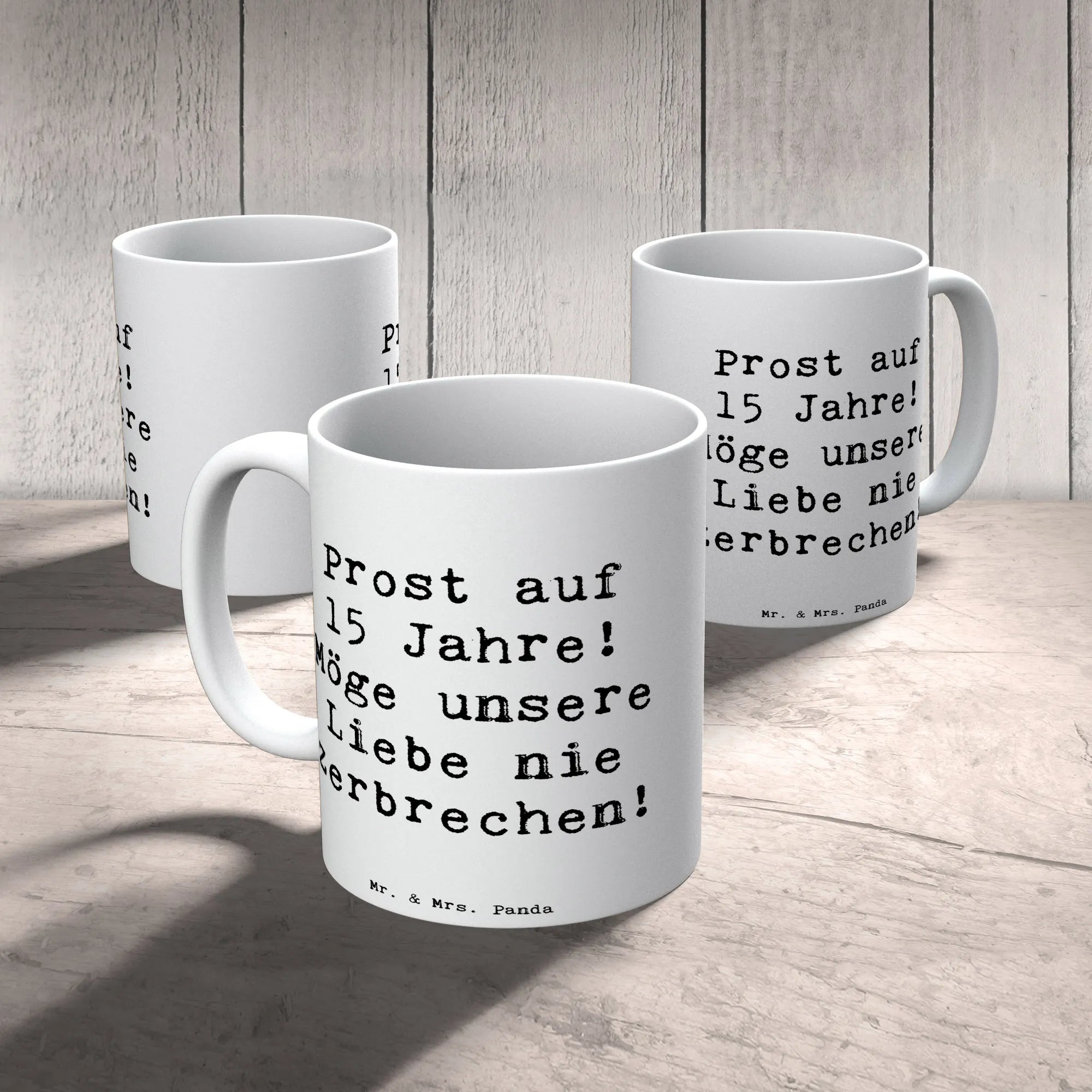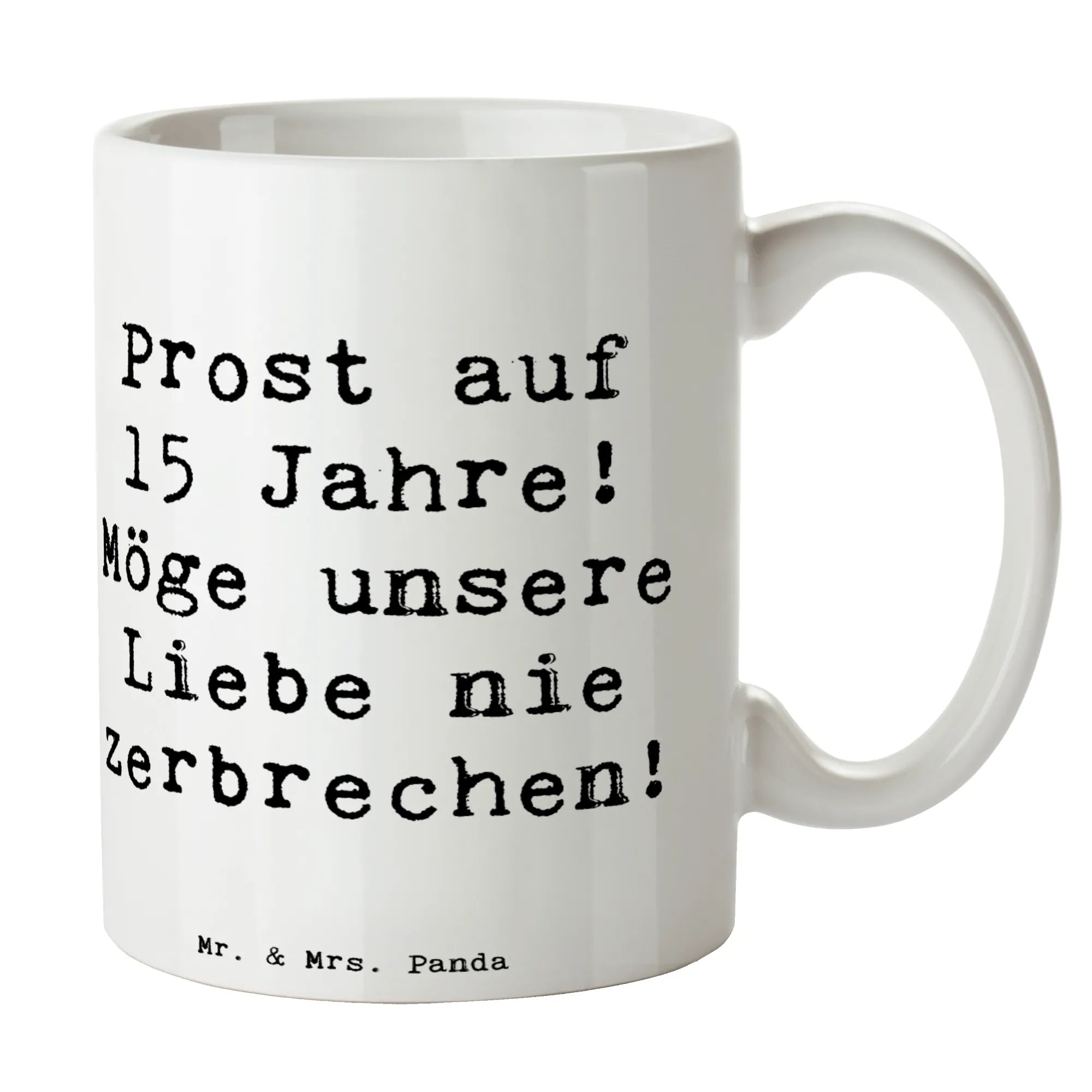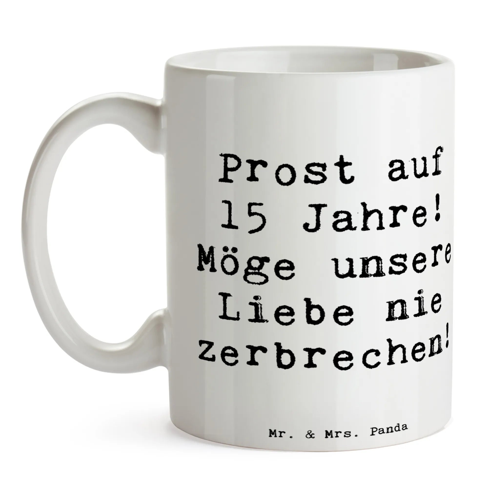 Mug Saying Prost auf 15 Jahre! Möge unsere Liebe nie zerbrechen! - White