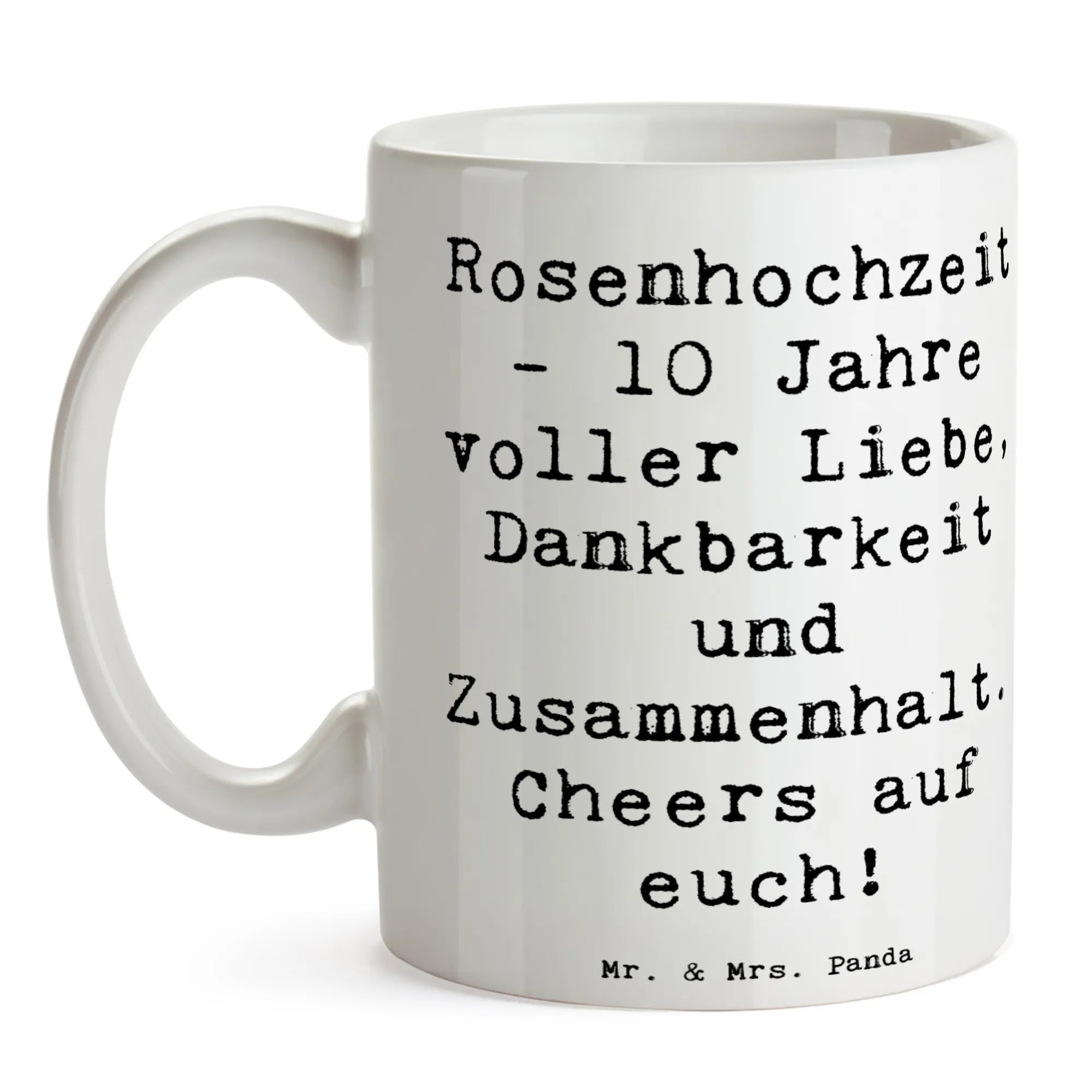 Mug Saying Rosenhochzeit - 10 Jahre voller Liebe, Dankbarkeit und Zusammenhalt. Cheers auf euch! - White