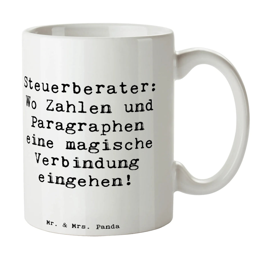 Entdecke die perfekte Tasse für Steuerberater in der wunderbaren Kollektion von Mr. & Mrs. Panda! Diese stilvolle Kaffeetasse mit ihrem einzigartigen Spruch "Steuerberater: Wo Zahlen und Paragraphen eine magische Verbindung eingehen!" ist nicht nur ein praktisches Accessoire, sondern auch ein liebevolles Geschenk für alle, die im Bereich Steuern arbeiten. Egal, ob du selbst Steuerberater bist oder einem lieben Kollegen, Freund oder Familienmitglied eine Freude machen möchtest – diese Tasse ist genau das richtige Geschenk!