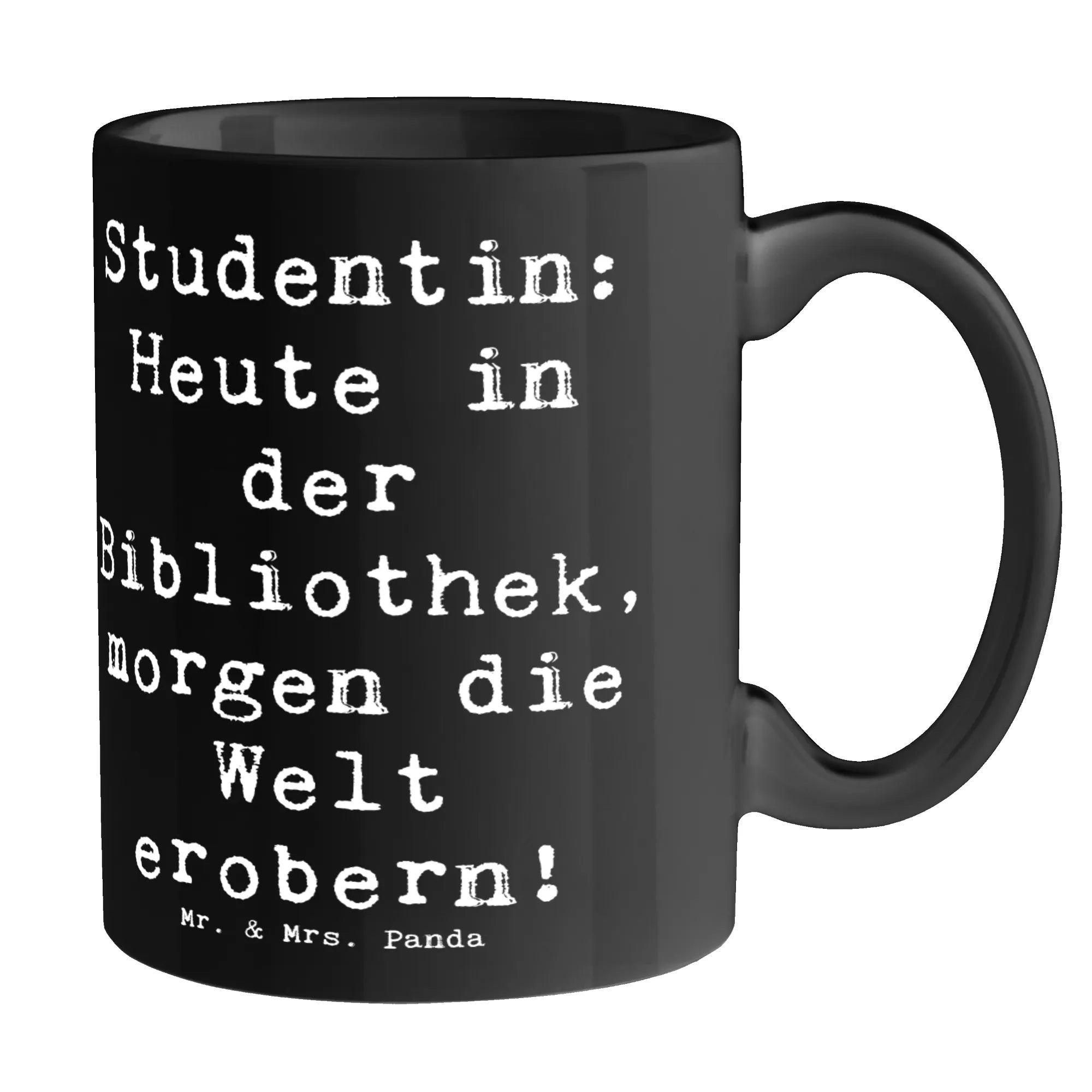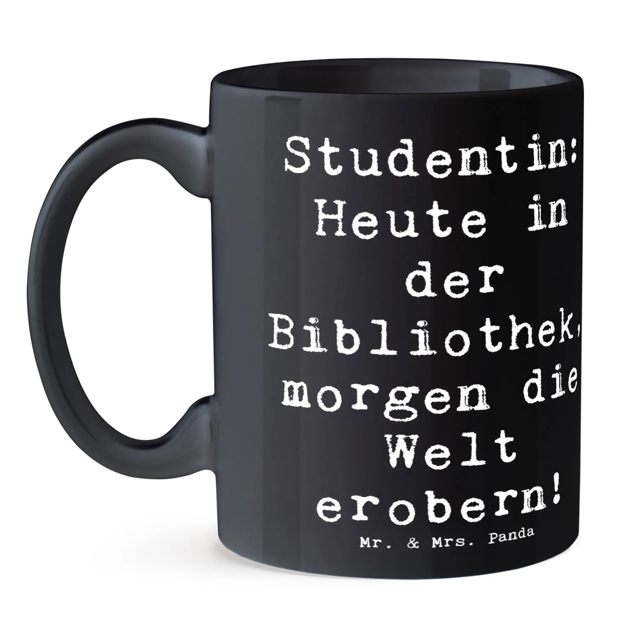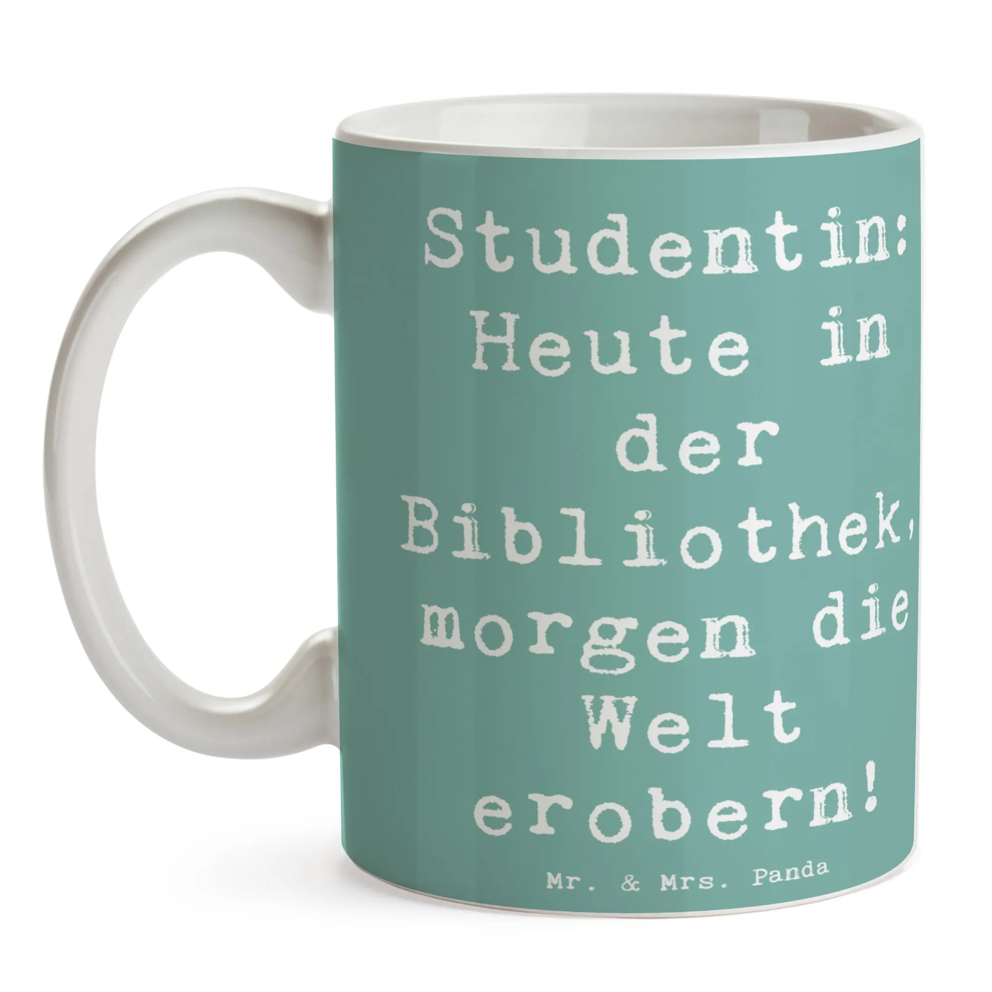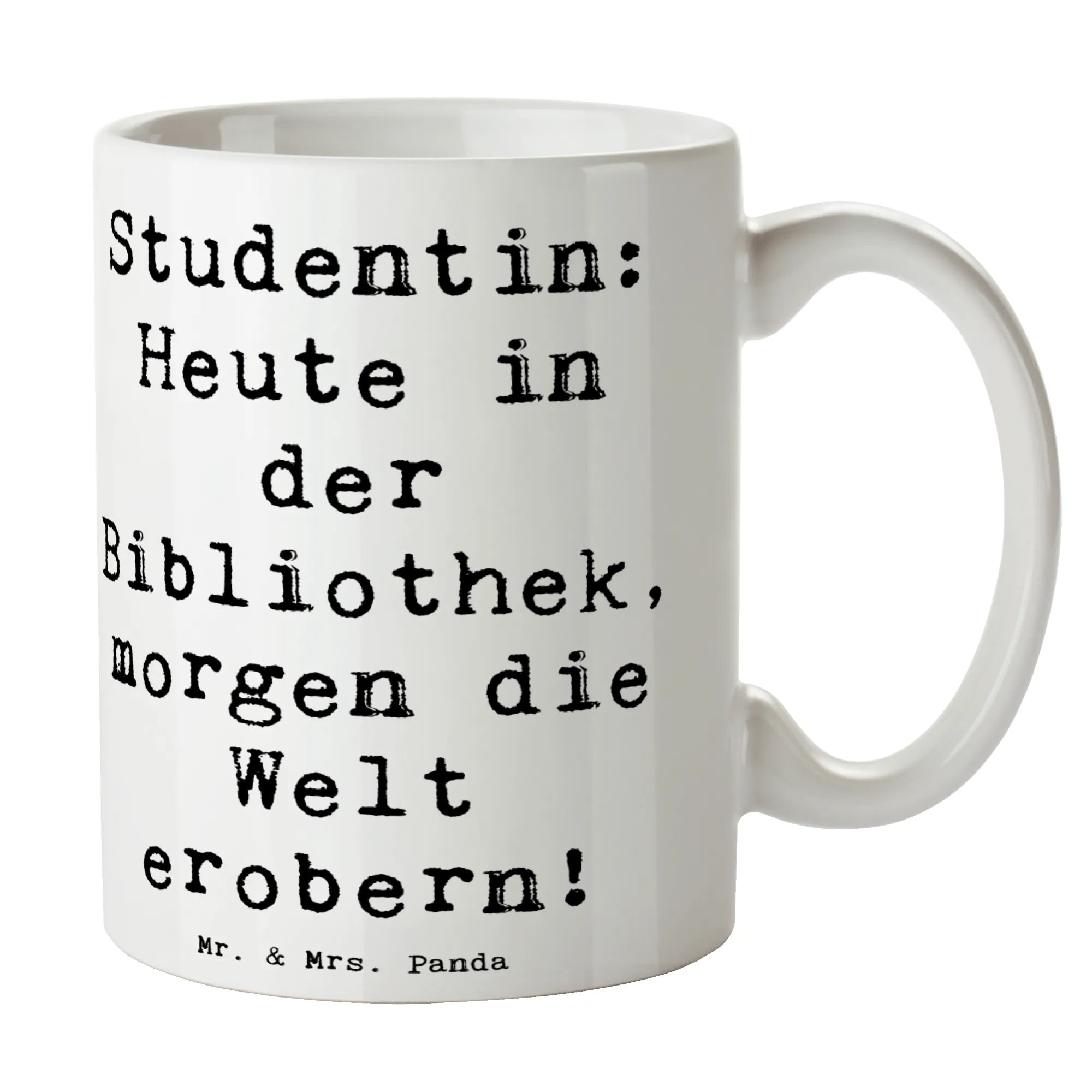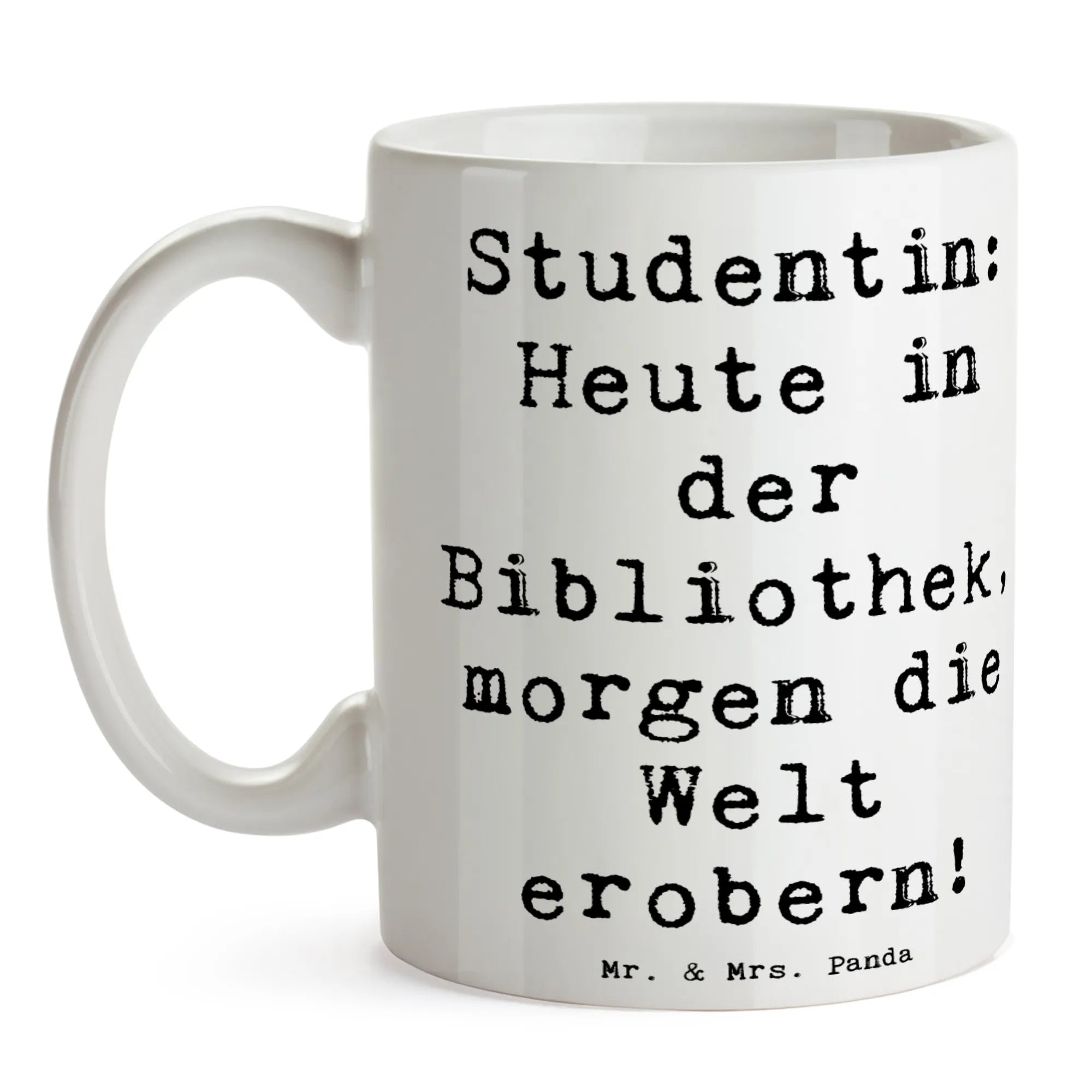 Mug Saying Studentin: Heute in der Bibliothek, morgen die Welt erobern! - White