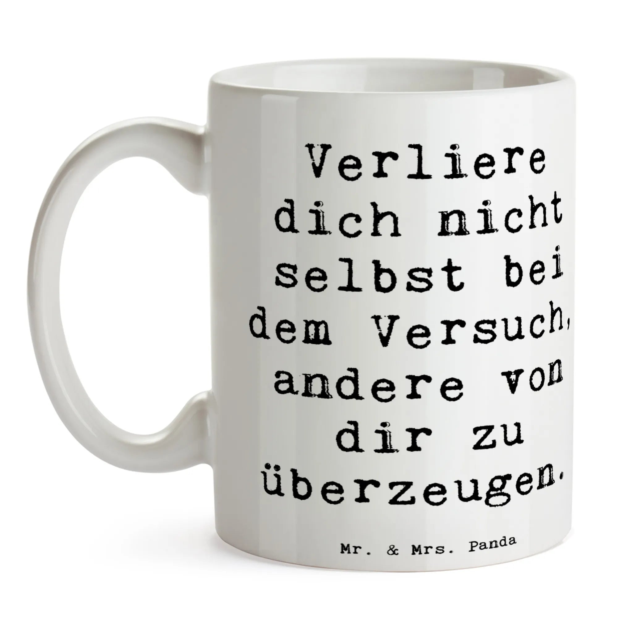 Mug Saying Verliere dich nicht selbst bei dem Versuch, andere von dir zu überzeugen. - White