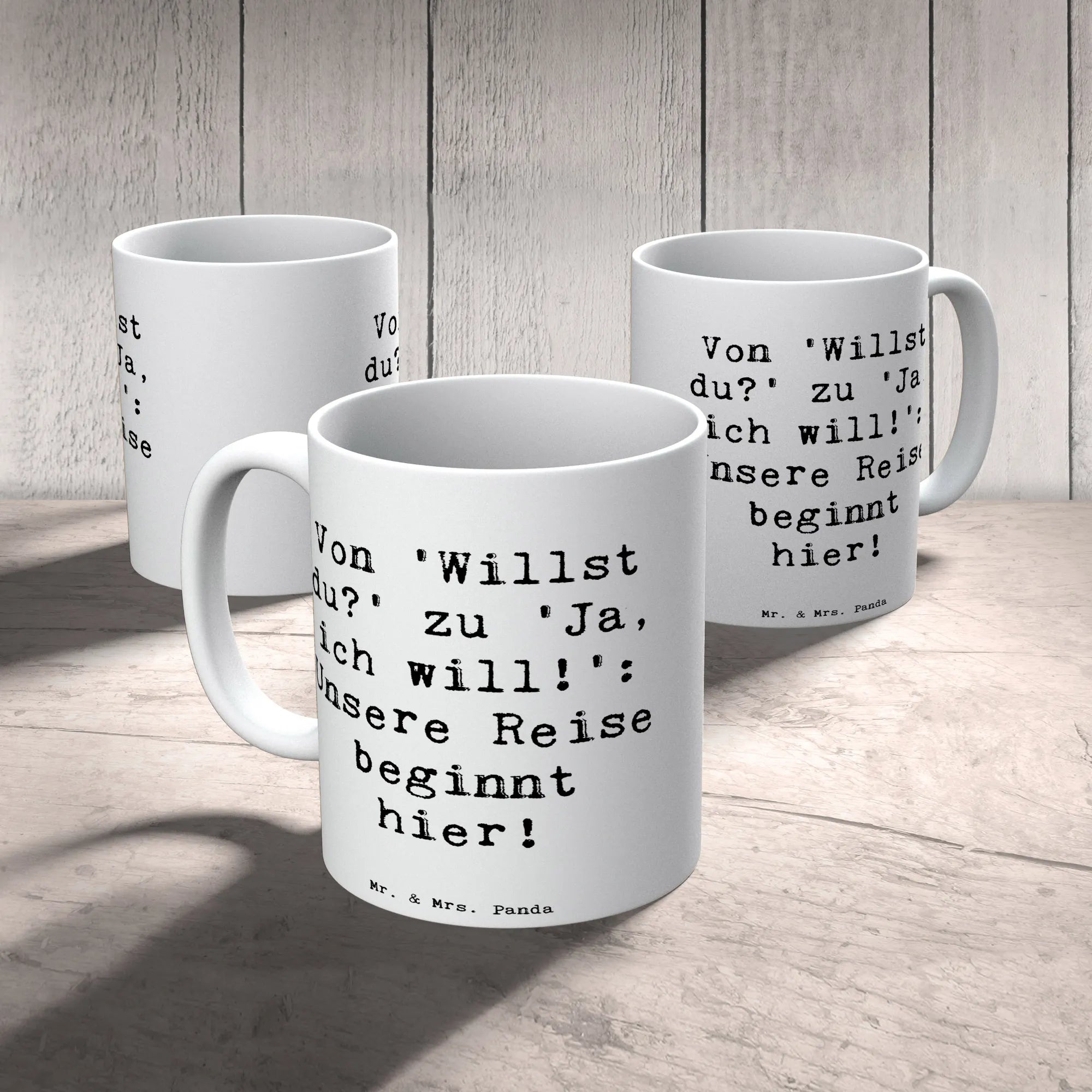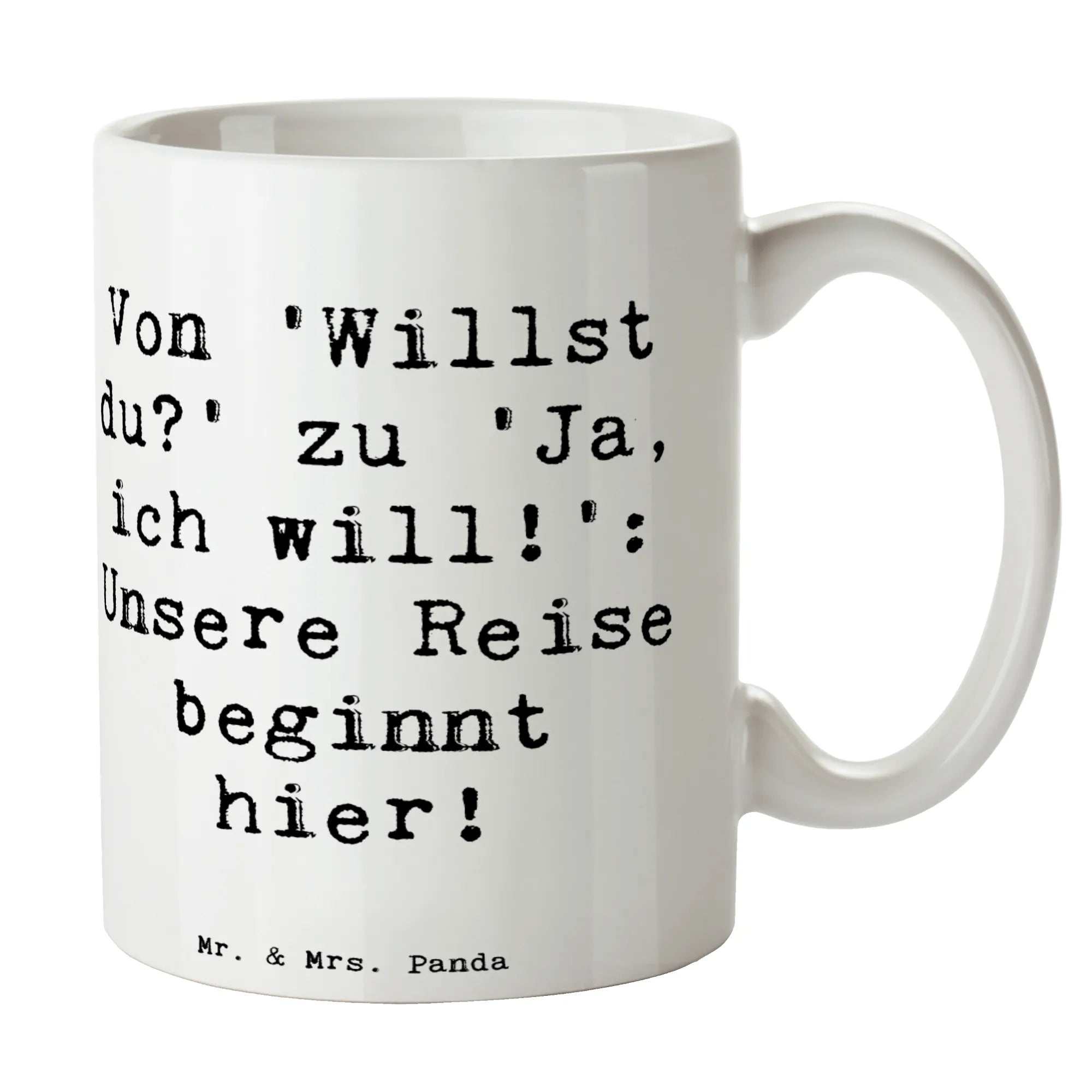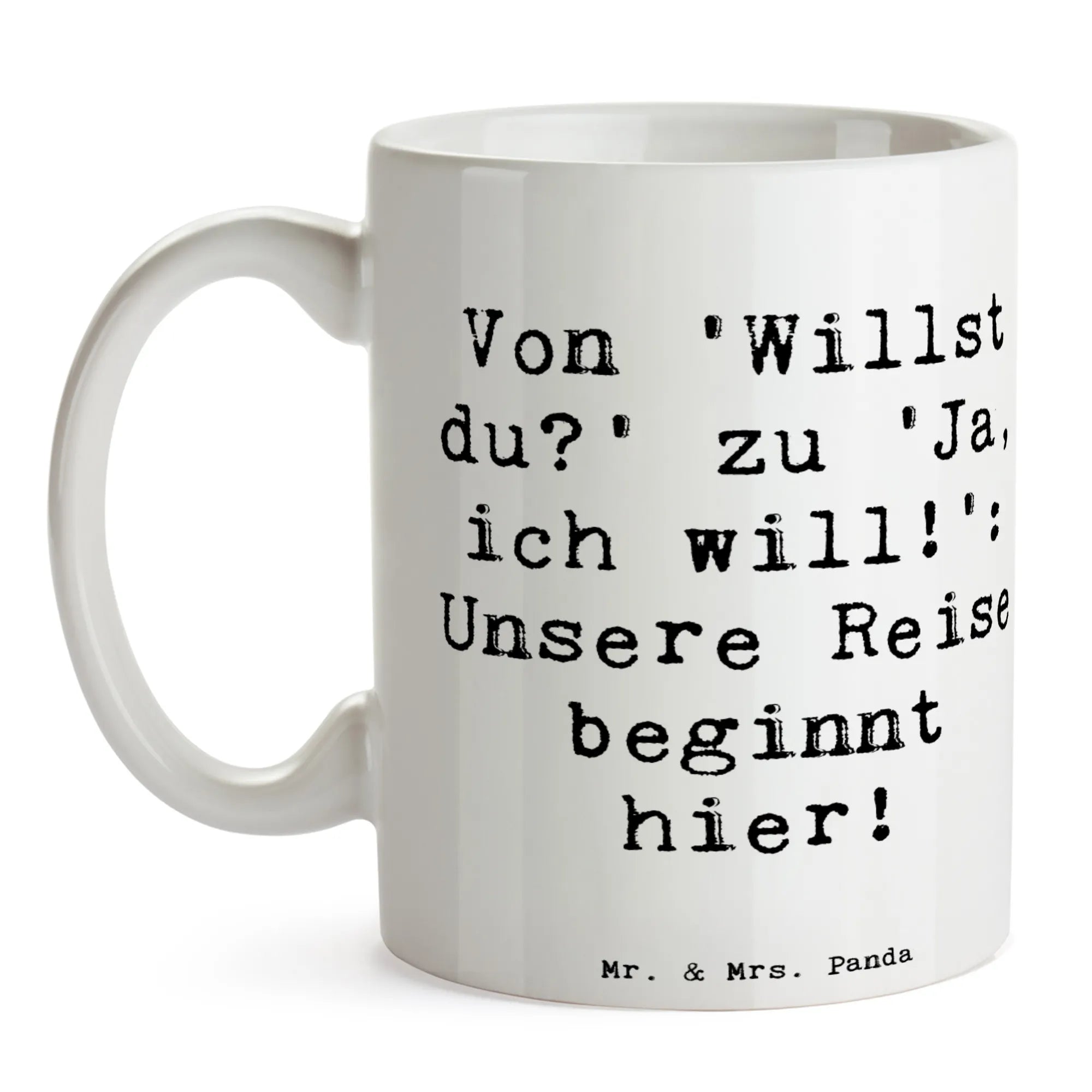 Mug Saying Von 'Willst du?' zu 'Ja, ich will!': Unsere Reise beginnt hier! - White