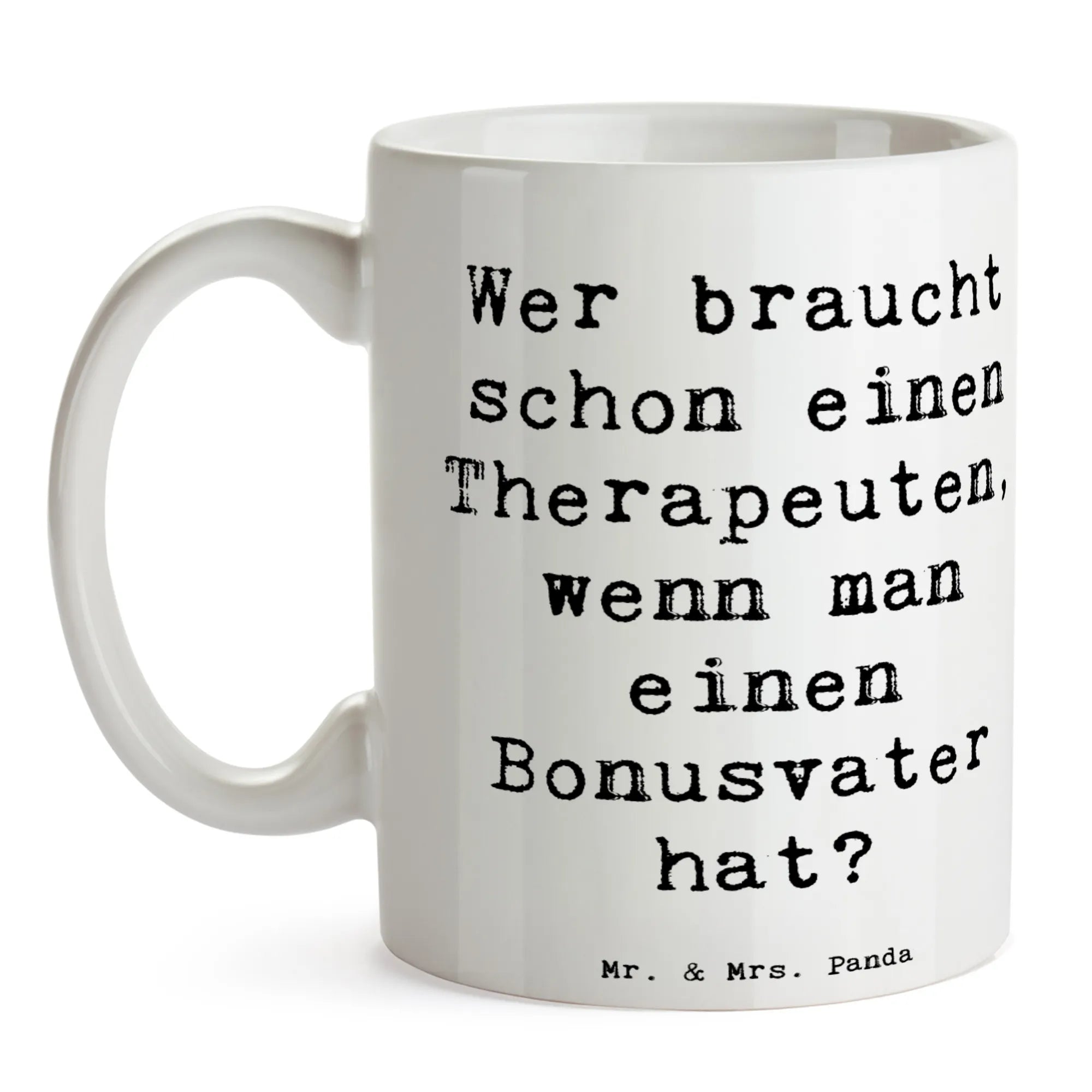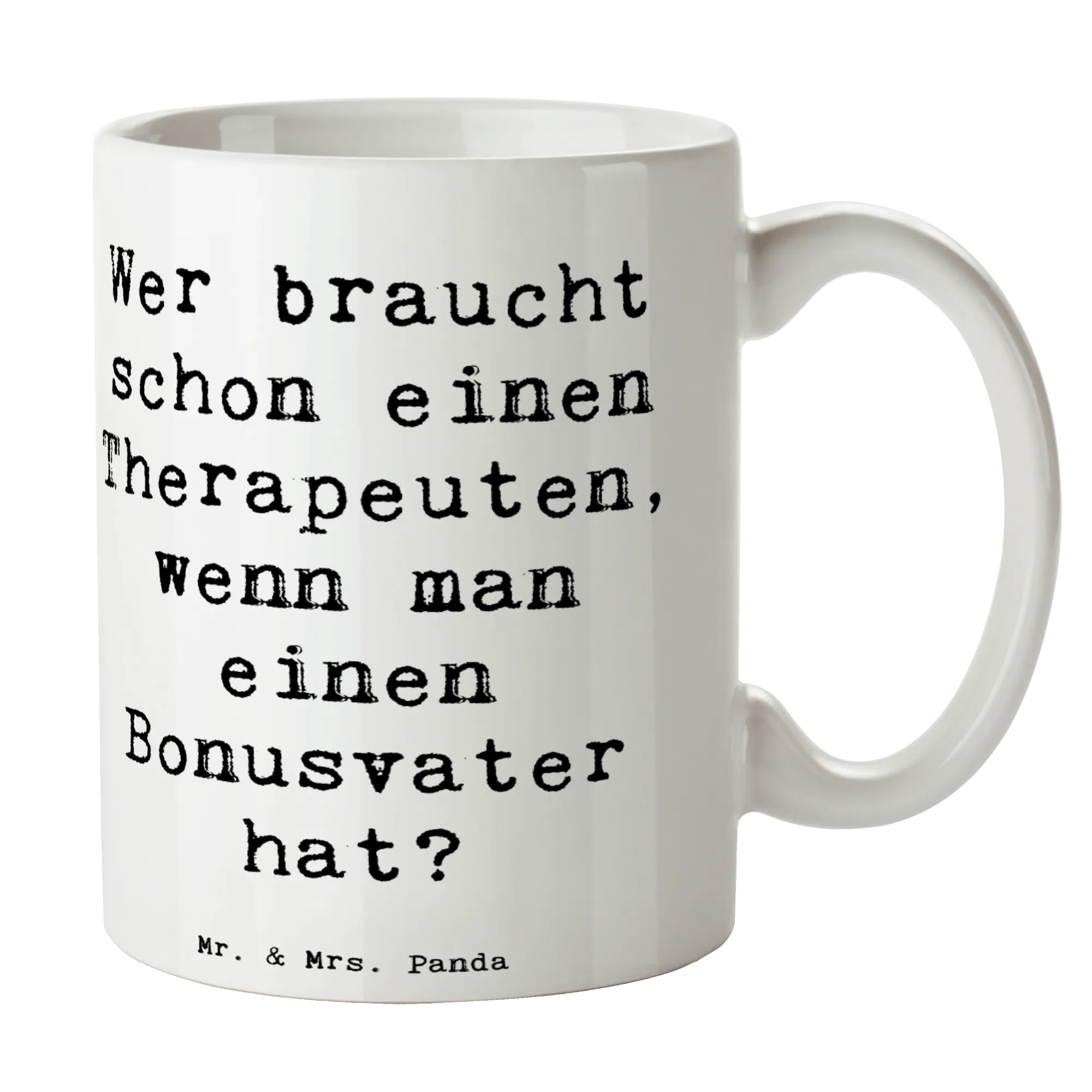 Mug Saying Wer braucht schon einen Therapeuten, wenn man einen Bonusvater hat? - White