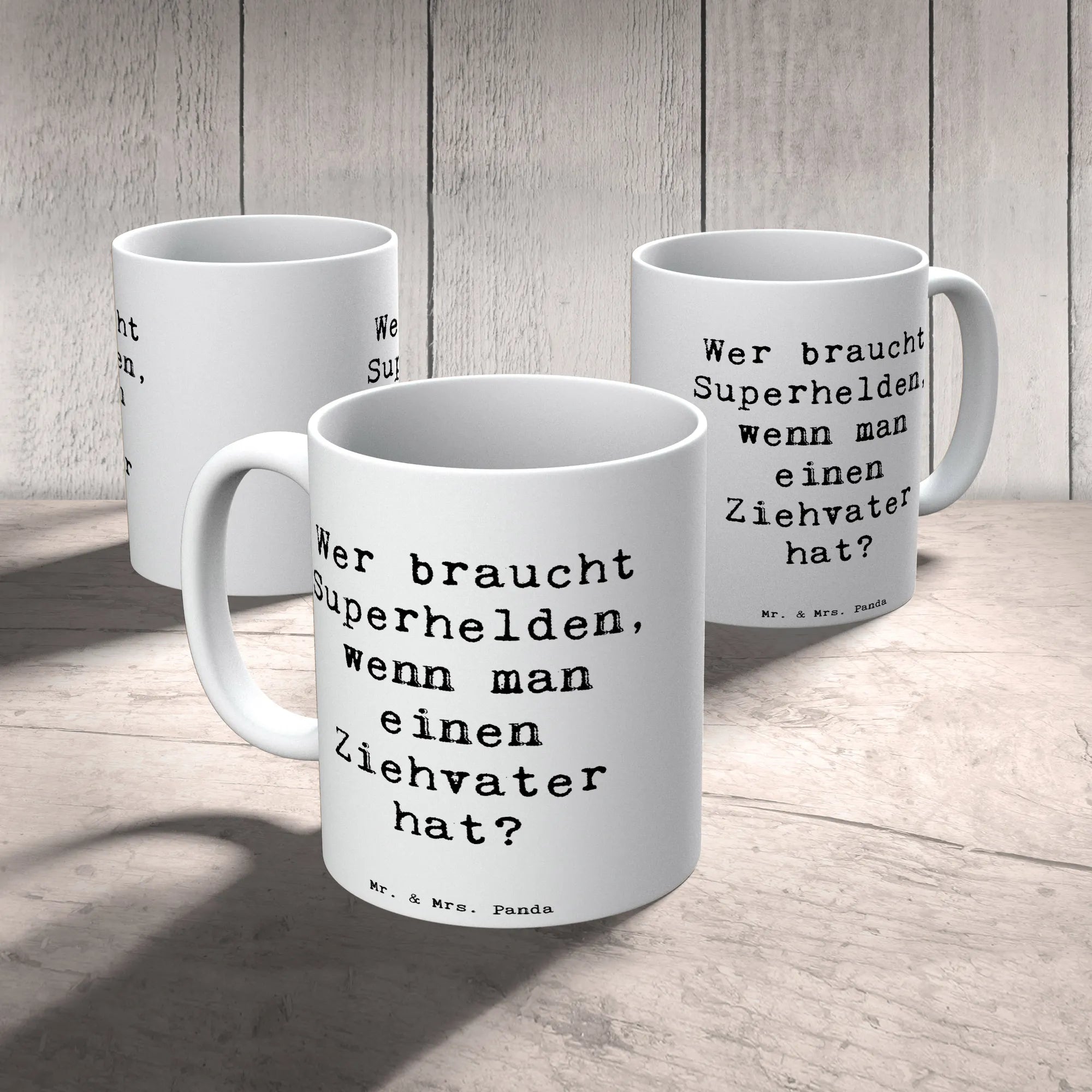 Mug Saying Wer braucht Superhelden, wenn man einen Ziehvater hat? - White