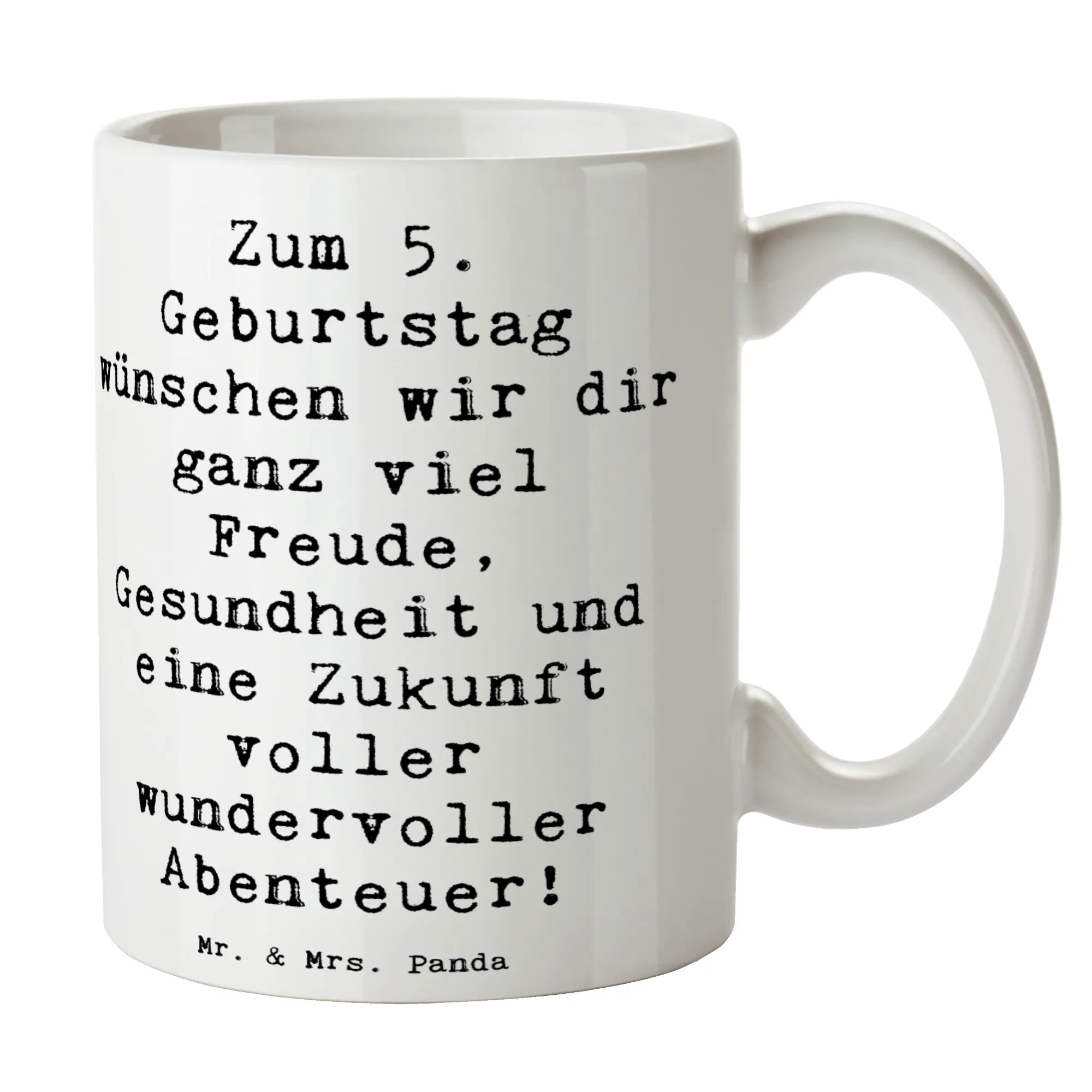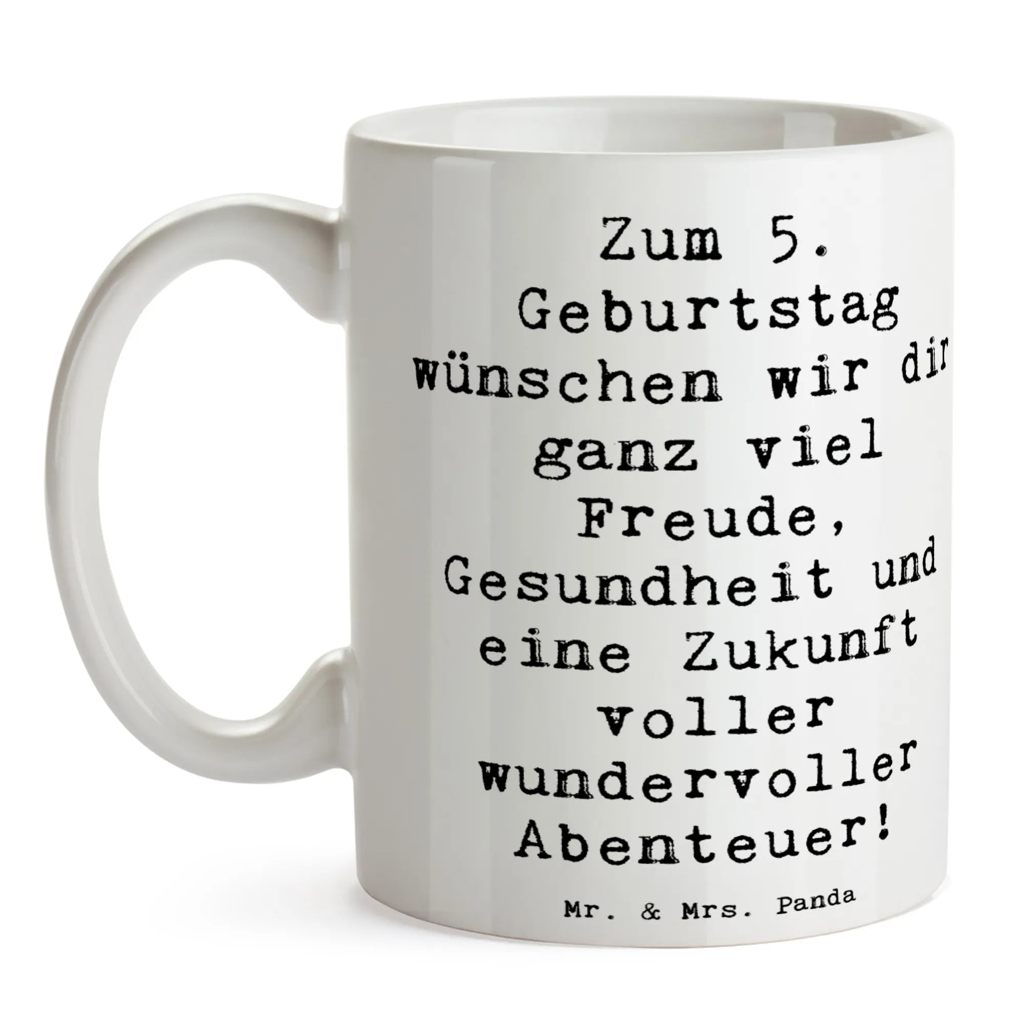 Mug Saying Zum 5. Geburtstag wünschen wir dir ganz viel Freude, Gesundheit und eine Zukunft voller wundervoller Abenteuer! - White