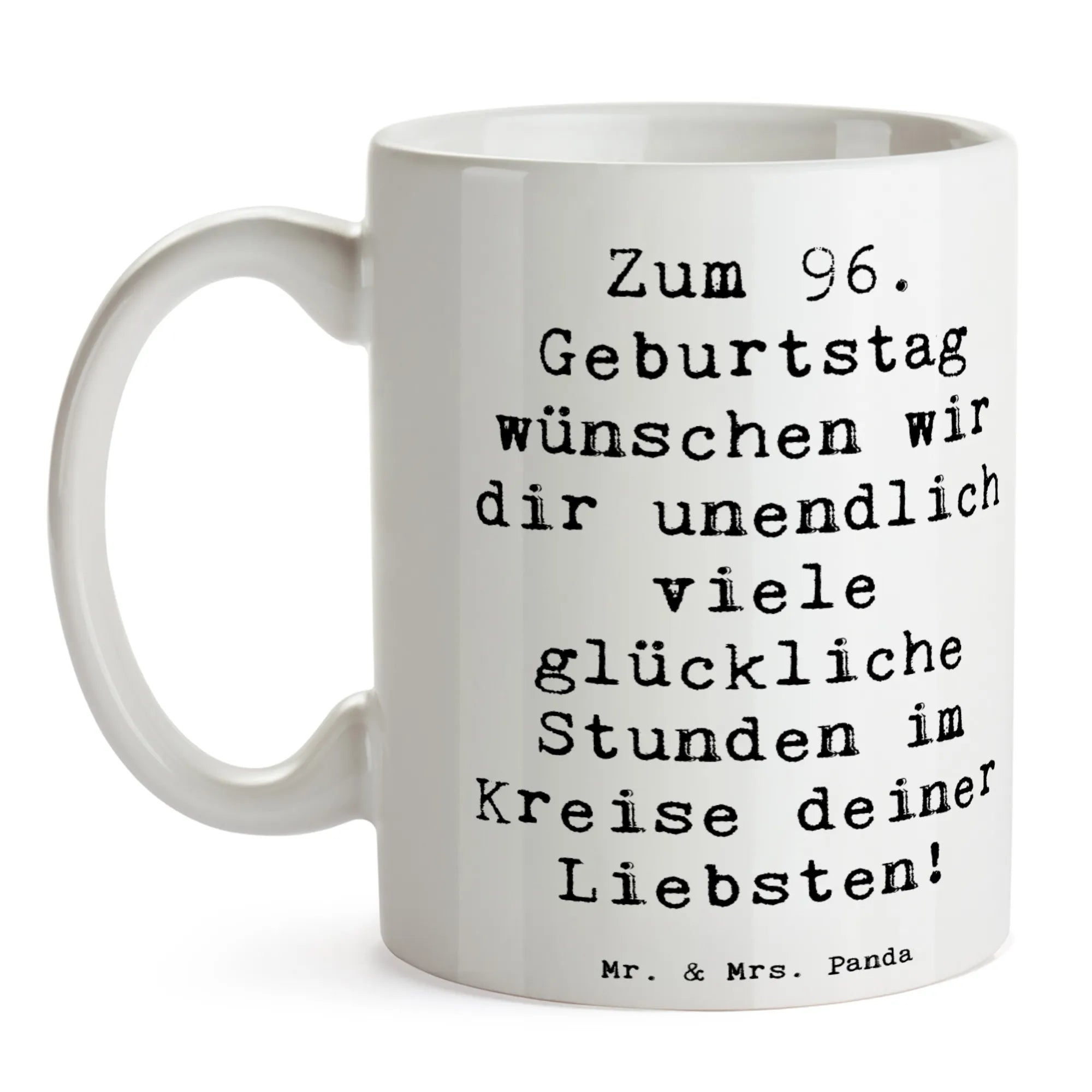 Mug Saying Zum 96. Geburtstag wünschen wir dir unendlich viele glückliche Stunden im Kreise deiner Liebsten! Geschenktasse, Tasse, Tasse mit Zitaten, Kaffeetasse, Keramiktasse, Tasse mit Motiven, Porzellantasse, Bürotasse, Teetasse, Geburtstag, Geburtstagsgeschenk, Geschenk