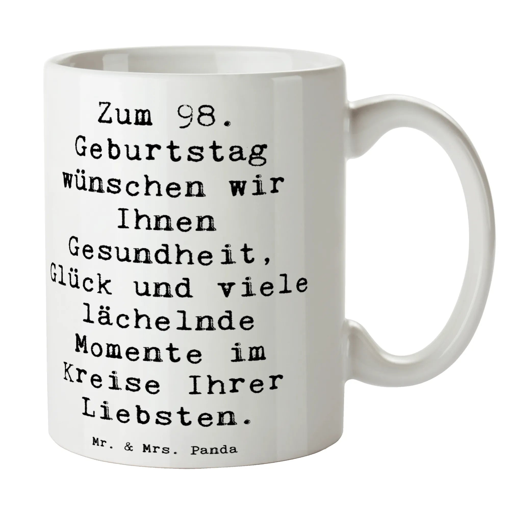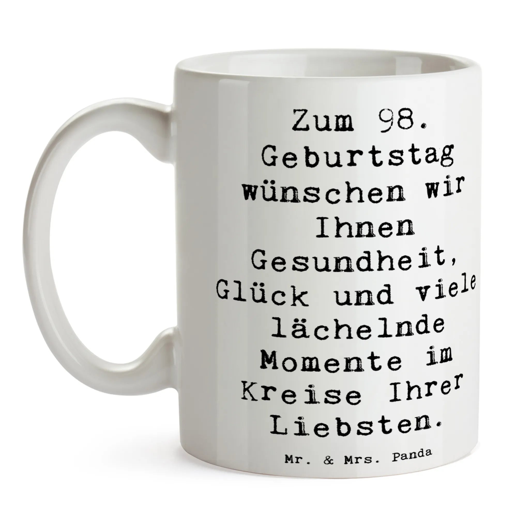 Mug Saying Zum 98. Geburtstag wünschen wir Ihnen Gesundheit, Glück und viele lächelnde Momente im Kreise Ihrer Liebsten. - White