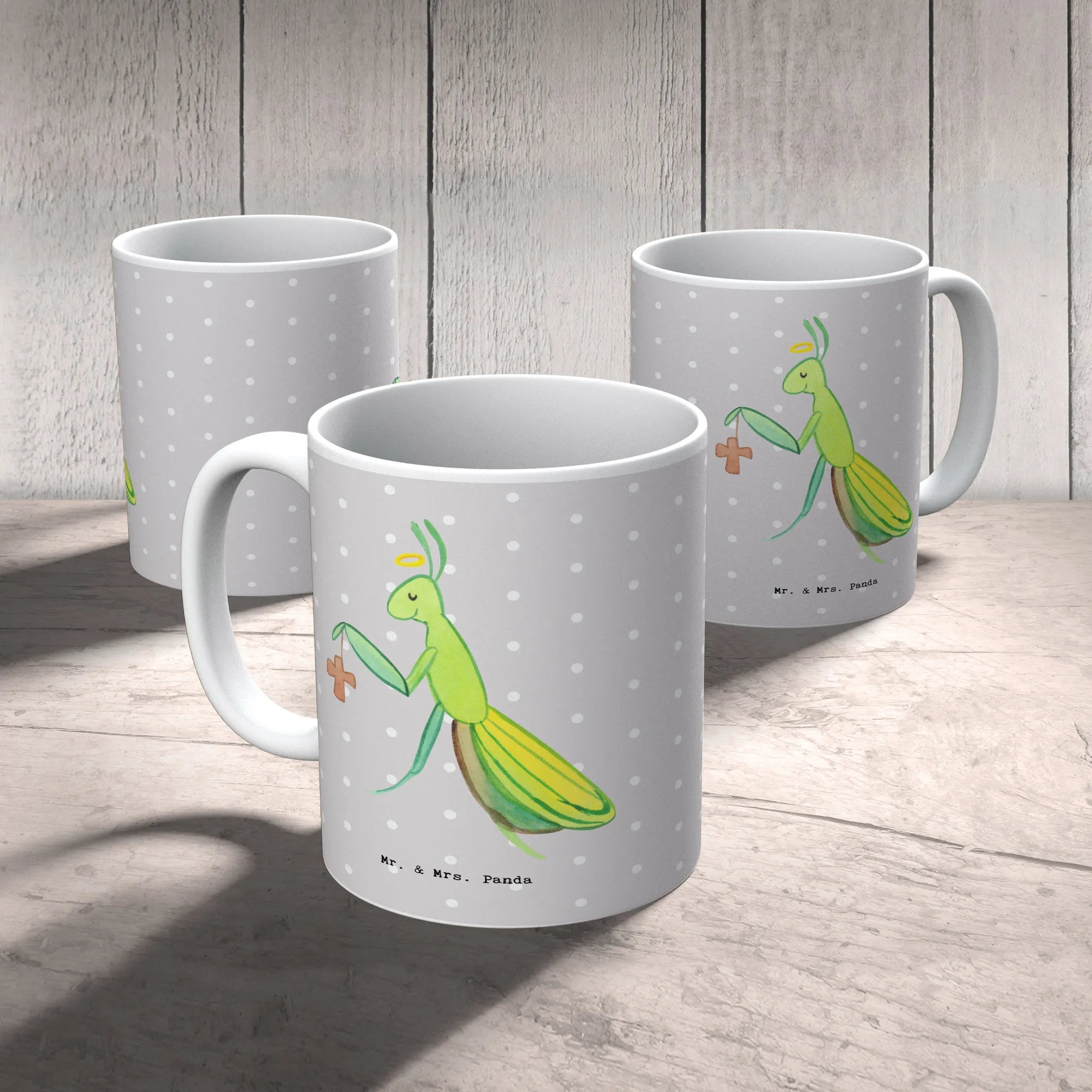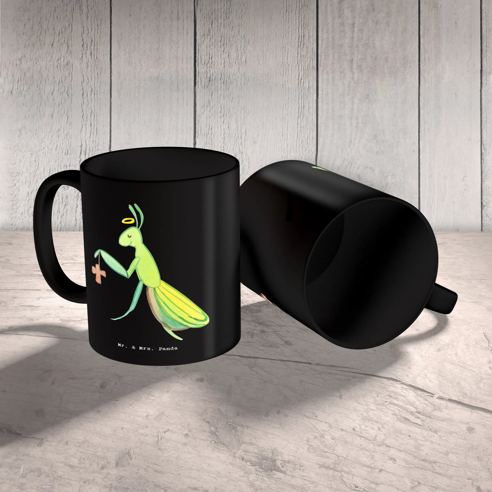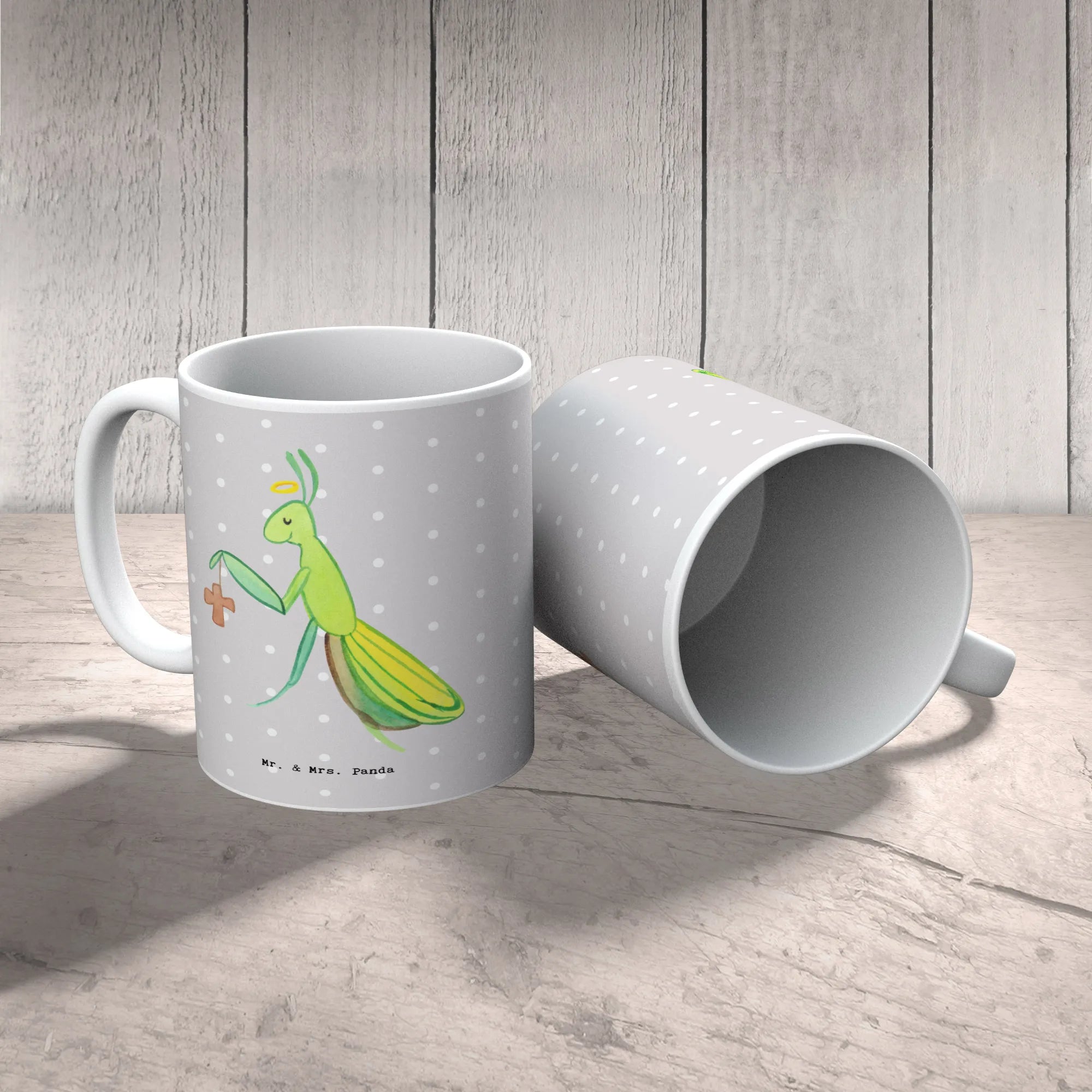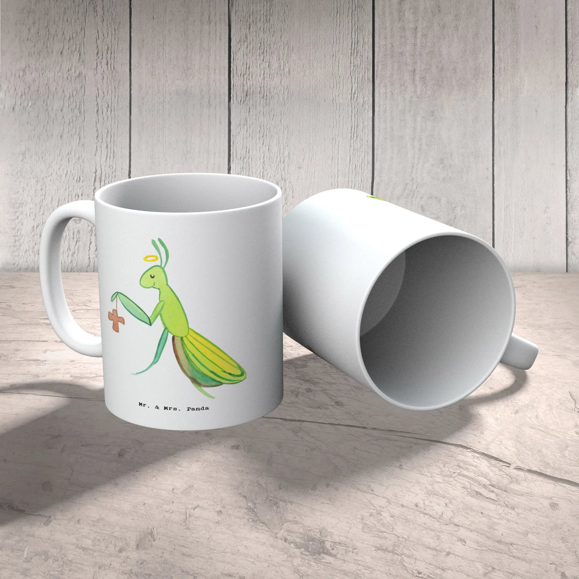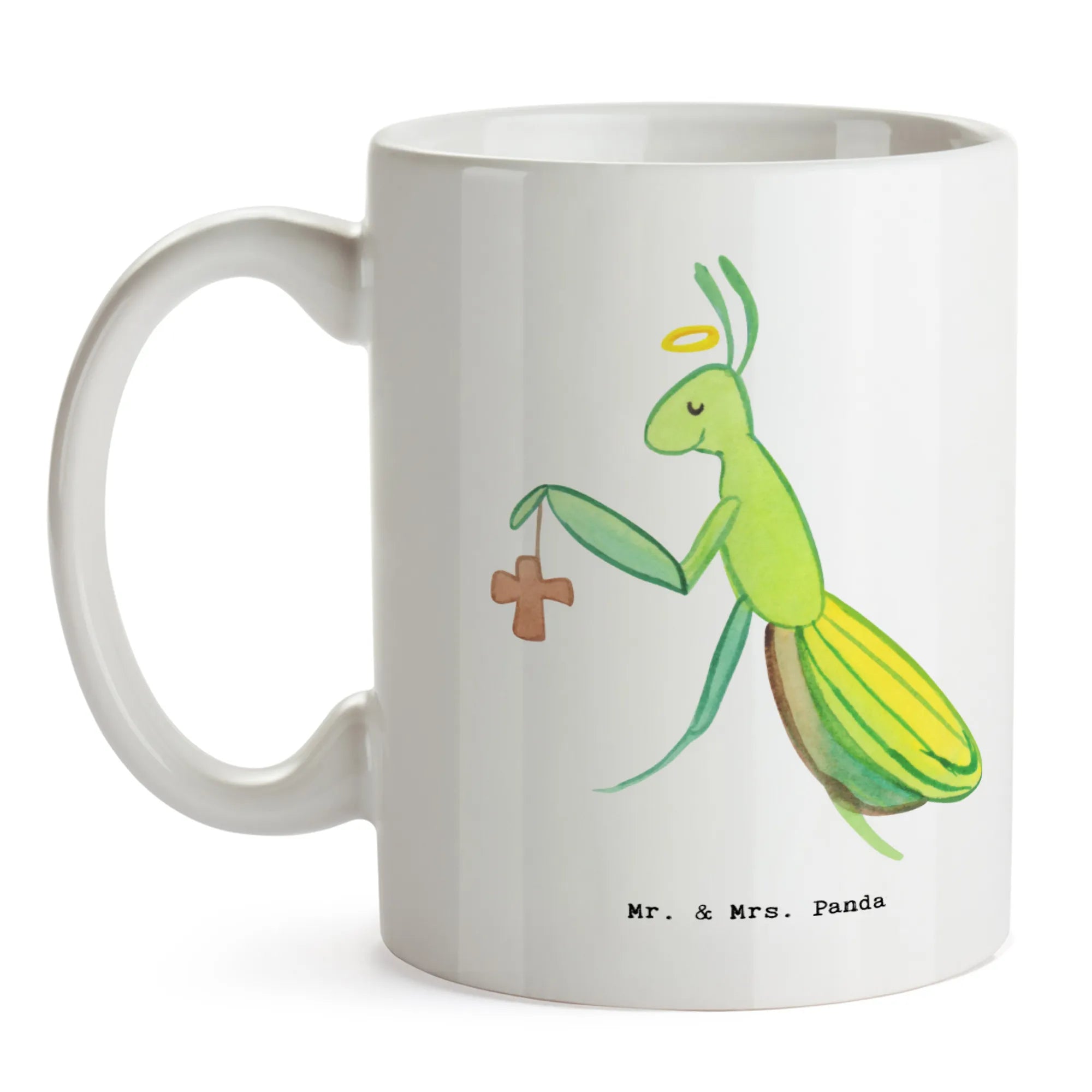 Spiritual Mantis with Halo and Cross - Heartwarming Home Decor by Mr. & Mrs. Panda