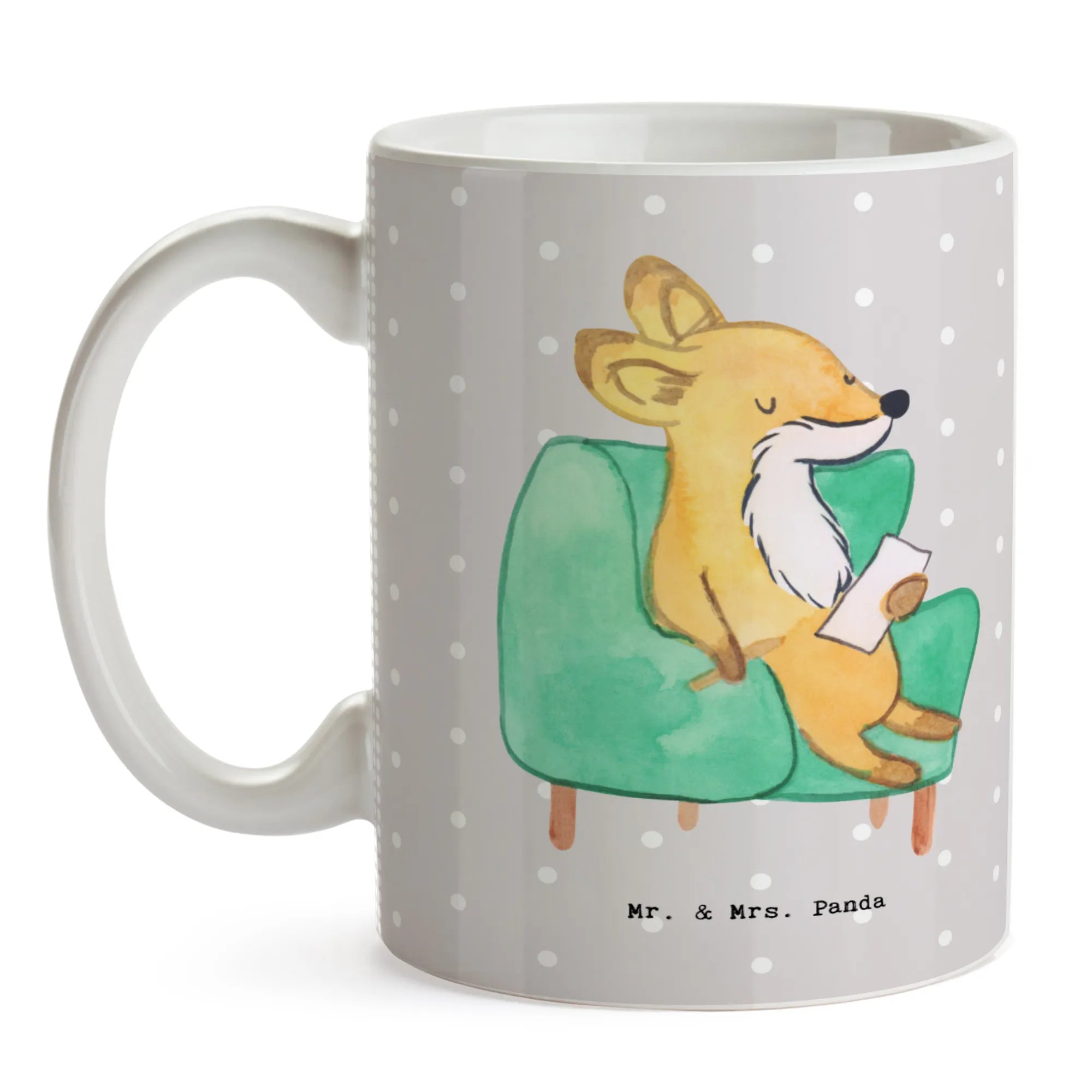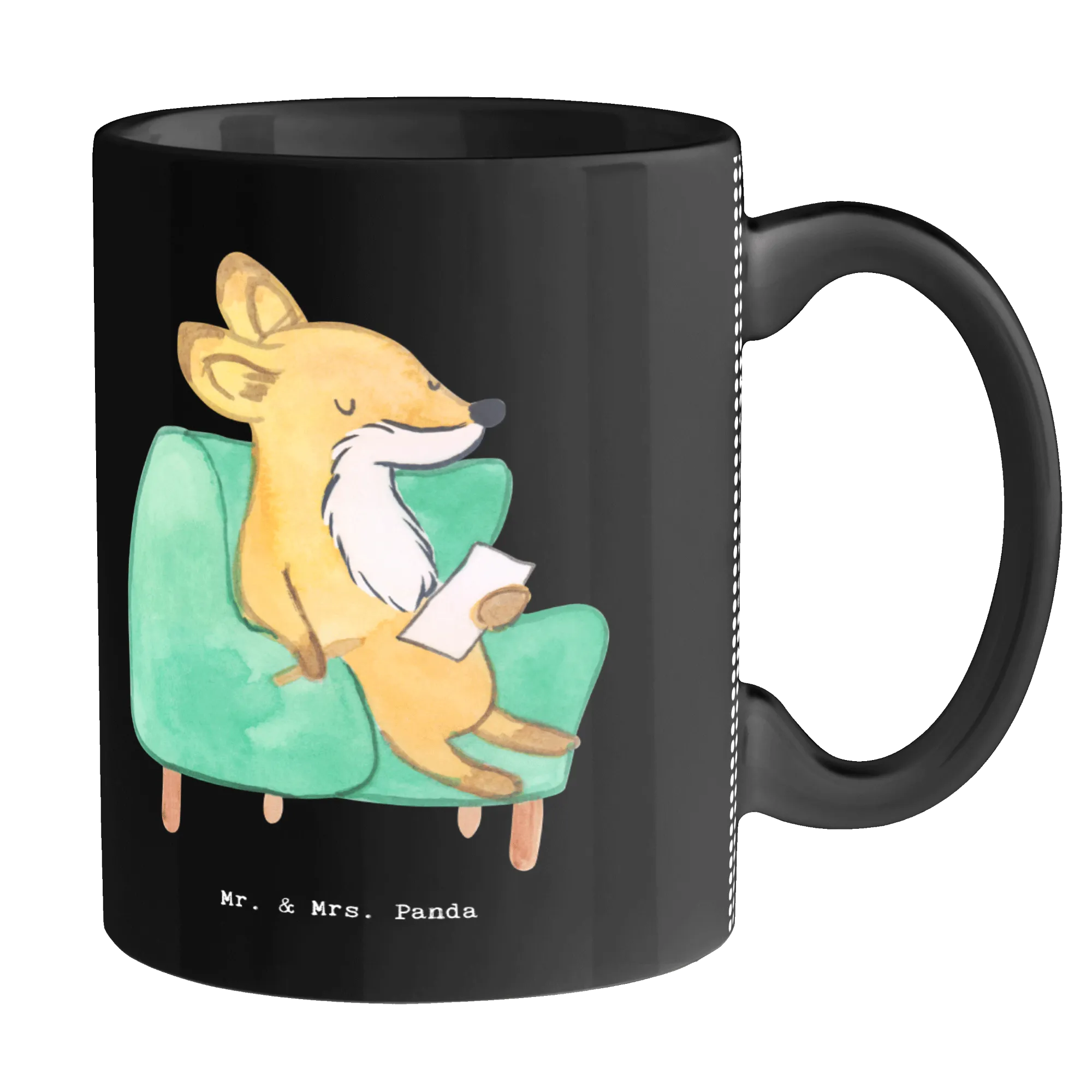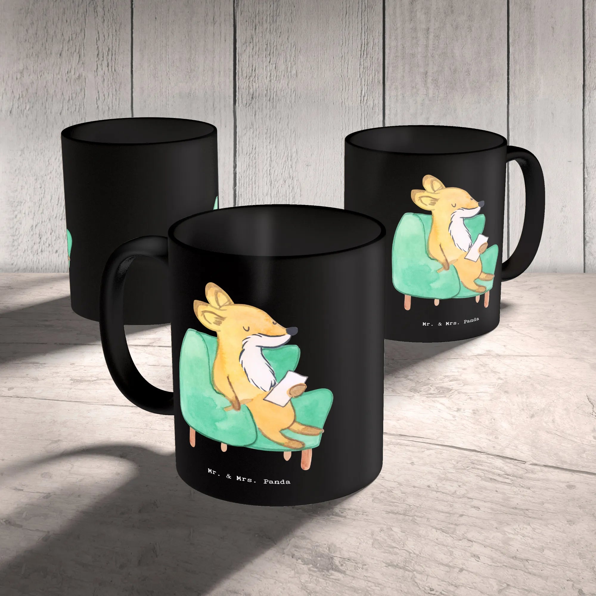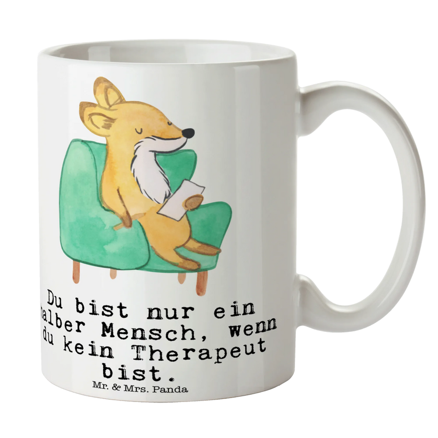 Du suchst ein liebevolles Geschenk für Therapeut*innen, Kolleg*innen oder Mitarbeiter? Diese zauberhafte Tasse kombiniert Humor, Herzlichkeit und Alltagstauglichkeit. Das Motiv zeigt einen niedlichen Fuchs auf einem Ohrensessel mit Notizblock – eine kleine Szene, die Empathie und Wertschätzung ausdrückt. Der Spruch „Du bist nur ein halber Mensch, wenn du kein Therapeut bist.“ sorgt für ein Schmunzeln am Morgen.