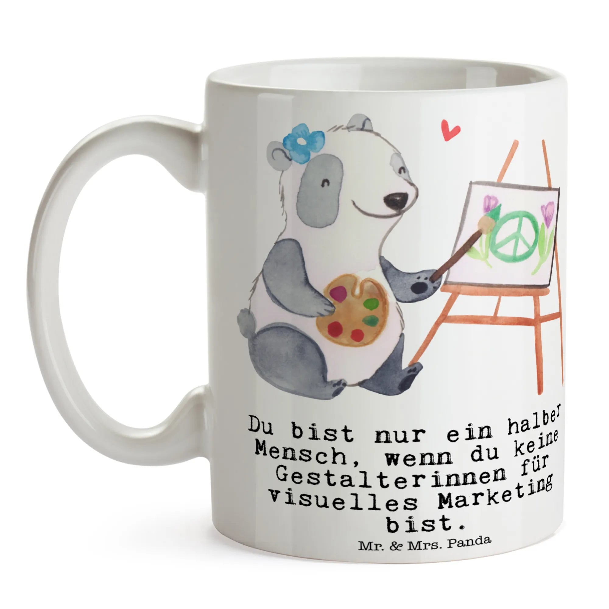 Are you looking for a special gift for your friend or colleague who is a visual marketing designer? Look no further! The Mr. & Mrs. Panda ceramic mug featuring the delightful motif "Is life even worth living if you're not a visual marketing designer?" is the perfect choice for any occasion. This unique mug, part of the exclusive collection of Professions, showcases a charming design created with love, making it a thoughtful and creative gift idea.