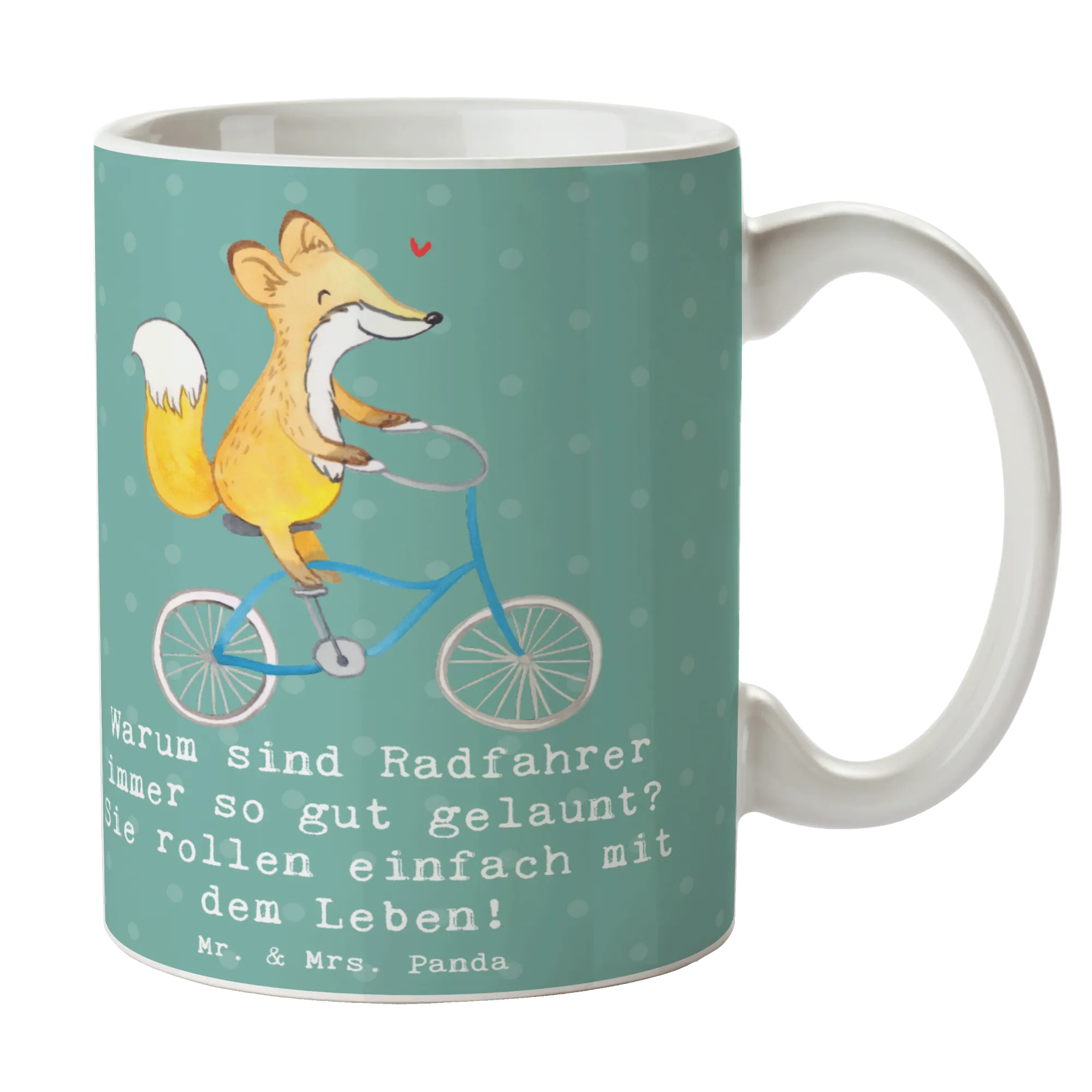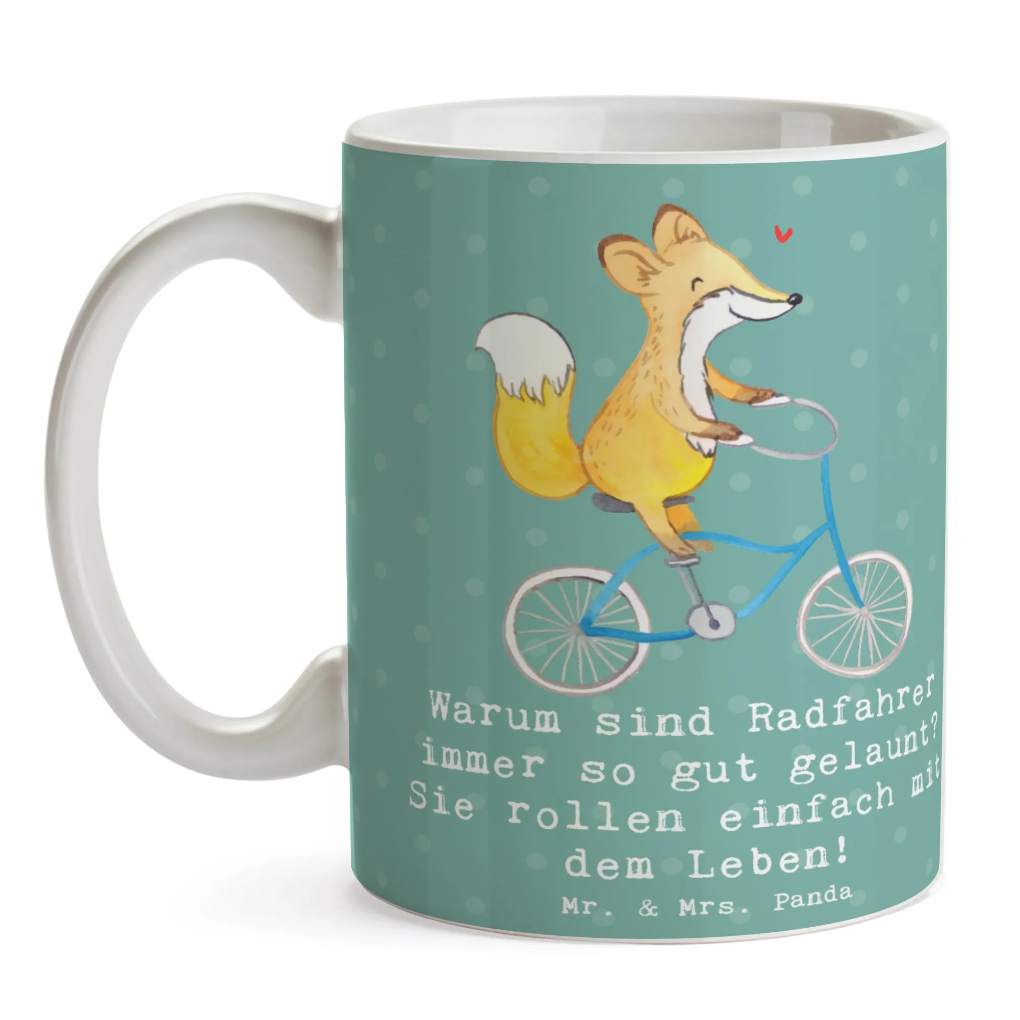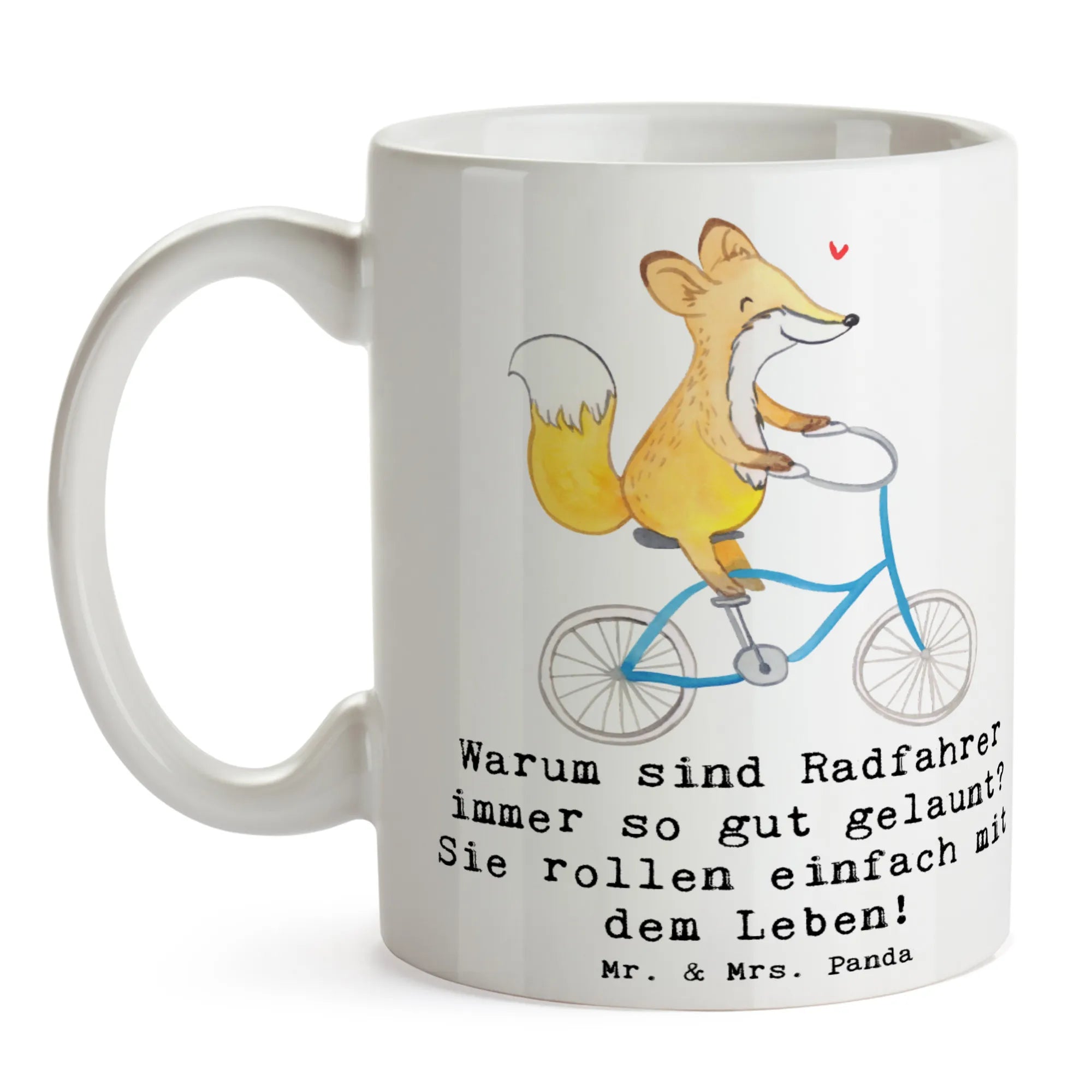 Mug Warum sind Radfahrer immer so gut gelaunt? Sie rollen einfach mit dem Leben! - White