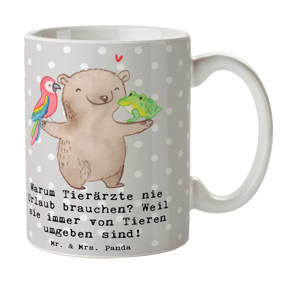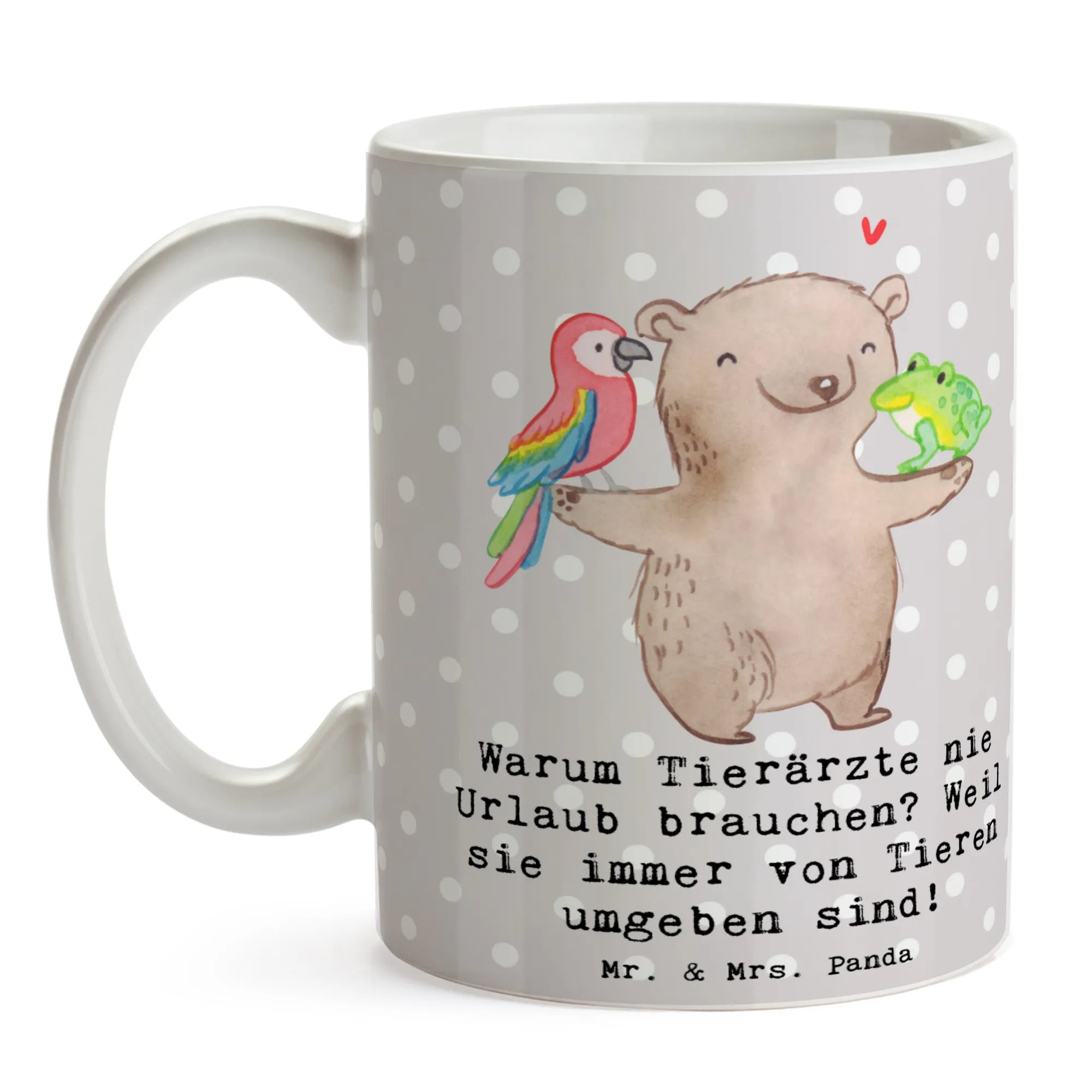 Mug Warum Tierärzte nie Urlaub brauchen? Weil sie immer von Tieren umgeben sind! - Grey Pastel
