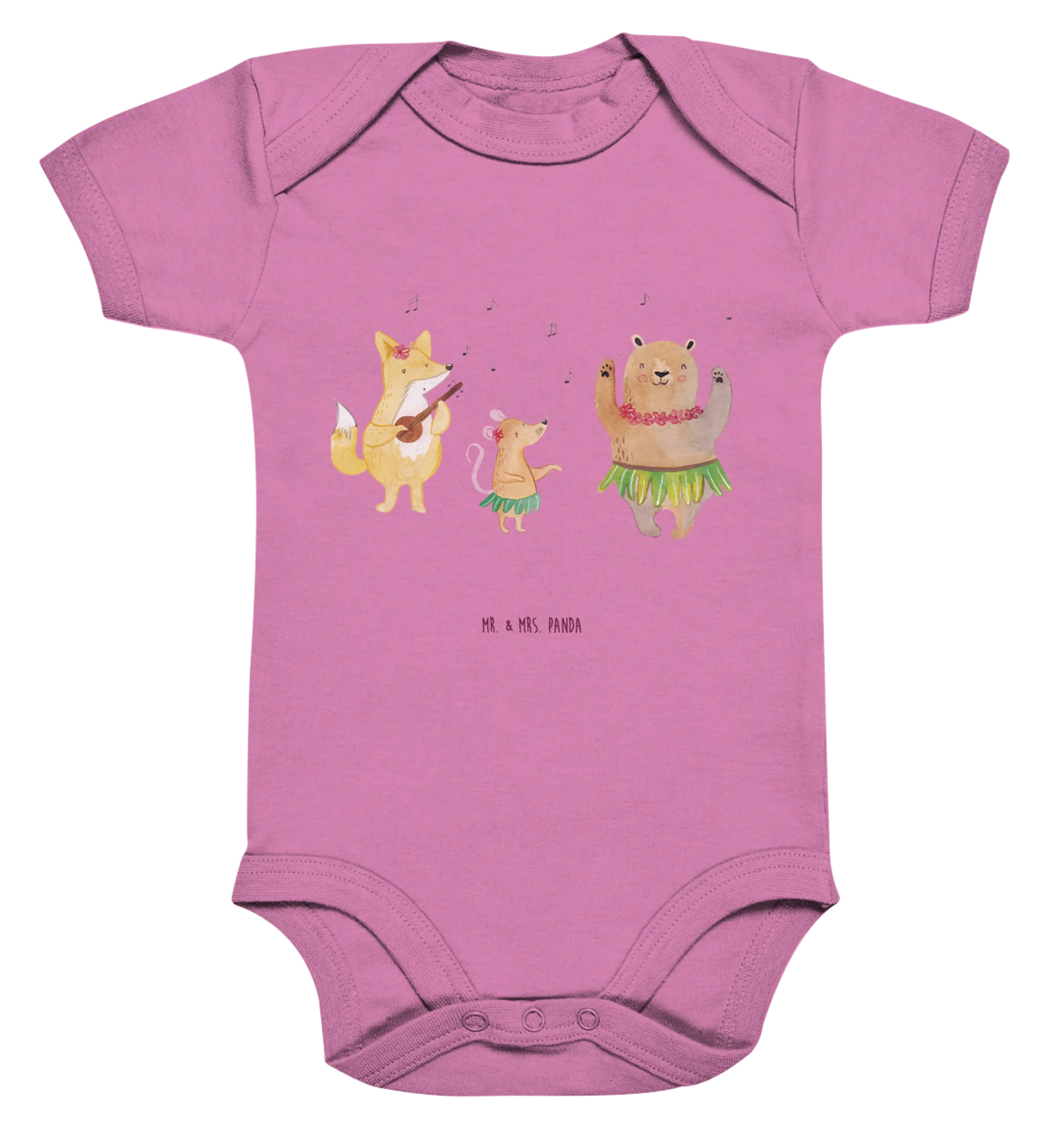 In summary, our Organic Baby Body with the 'Aloha Forest Creatures' motif is much more than just clothing; it's a delightful doorway to laughter and love in your little one's early years. Celebrate life's joyful moments with Mr. & Mrs. Panda, because when it comes to baby clothes, we believe in making every day extraordinary!