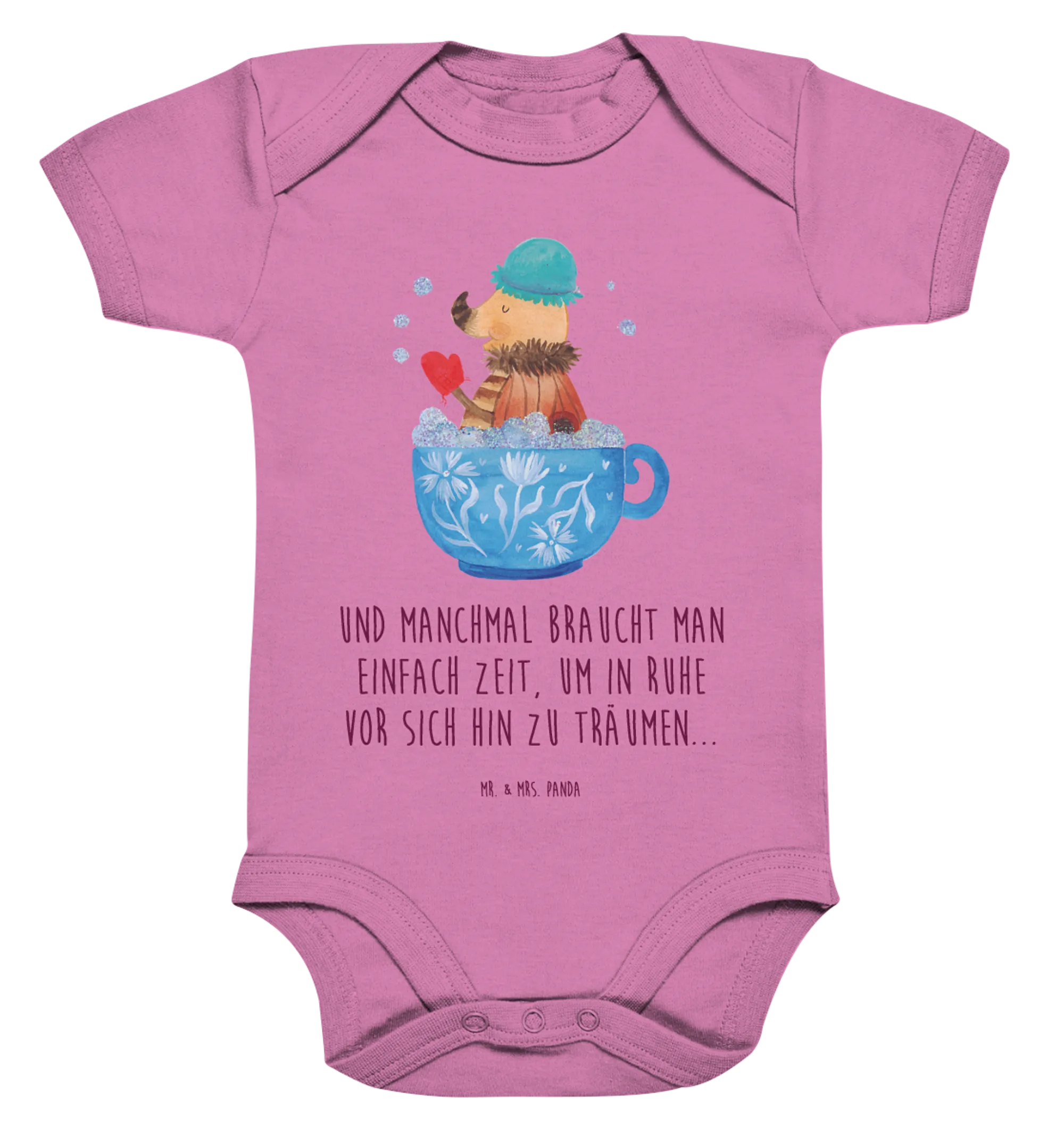 Welcome to the enchanting world of Mr. & Mrs. Panda, where magic and whimsy come together in our lovingly designed Organic Baby Body featuring the delightful motif of a Moth in a bubble bath. This charming baby outfit is crafted from the softest organic cotton, perfect for your little dreamer. With a soothing heather grey background, the cute moth is snuggled up in a coffee cup, indulging in a relaxing bubble bath, bringing joy and warmth to every moment.