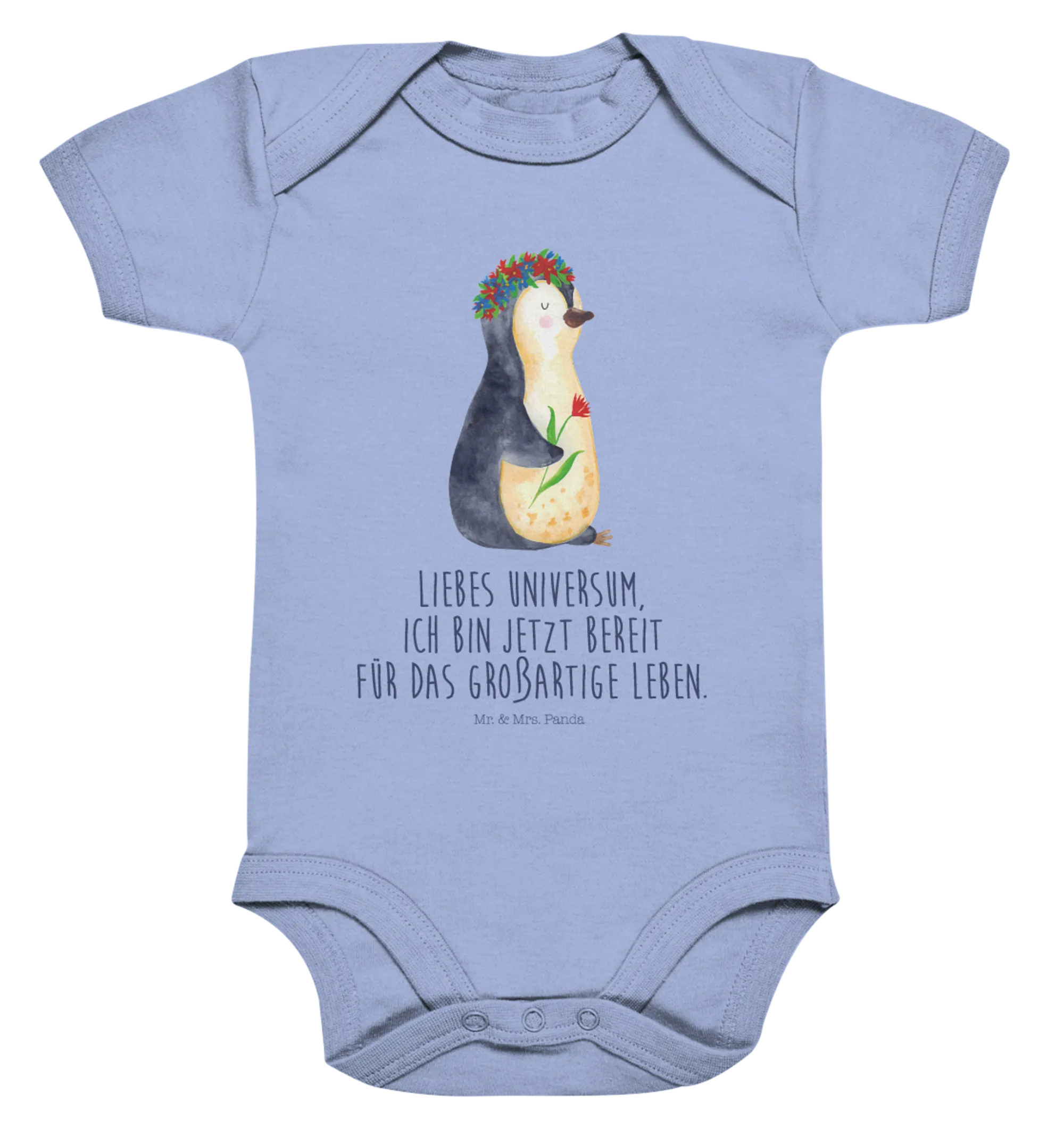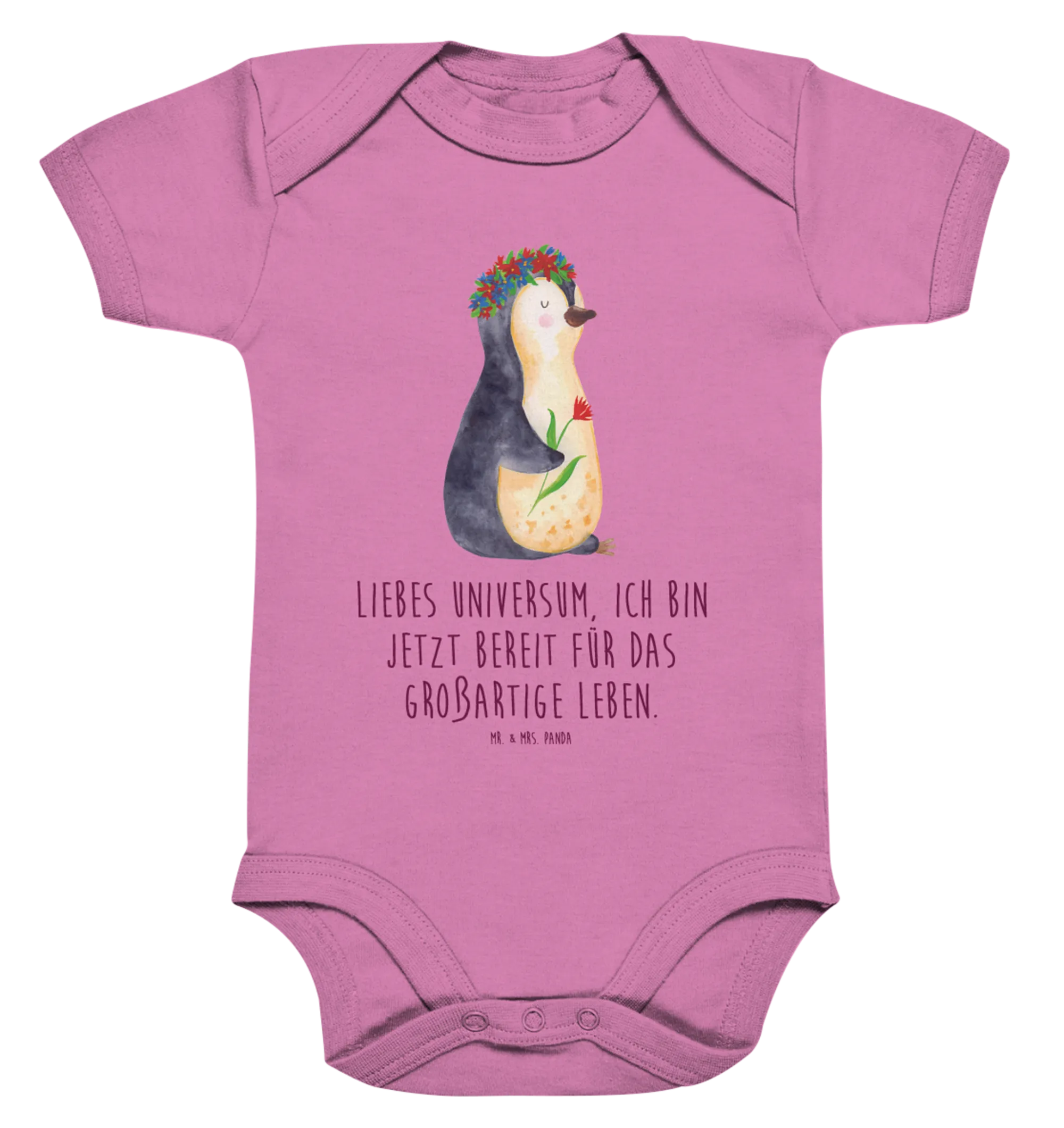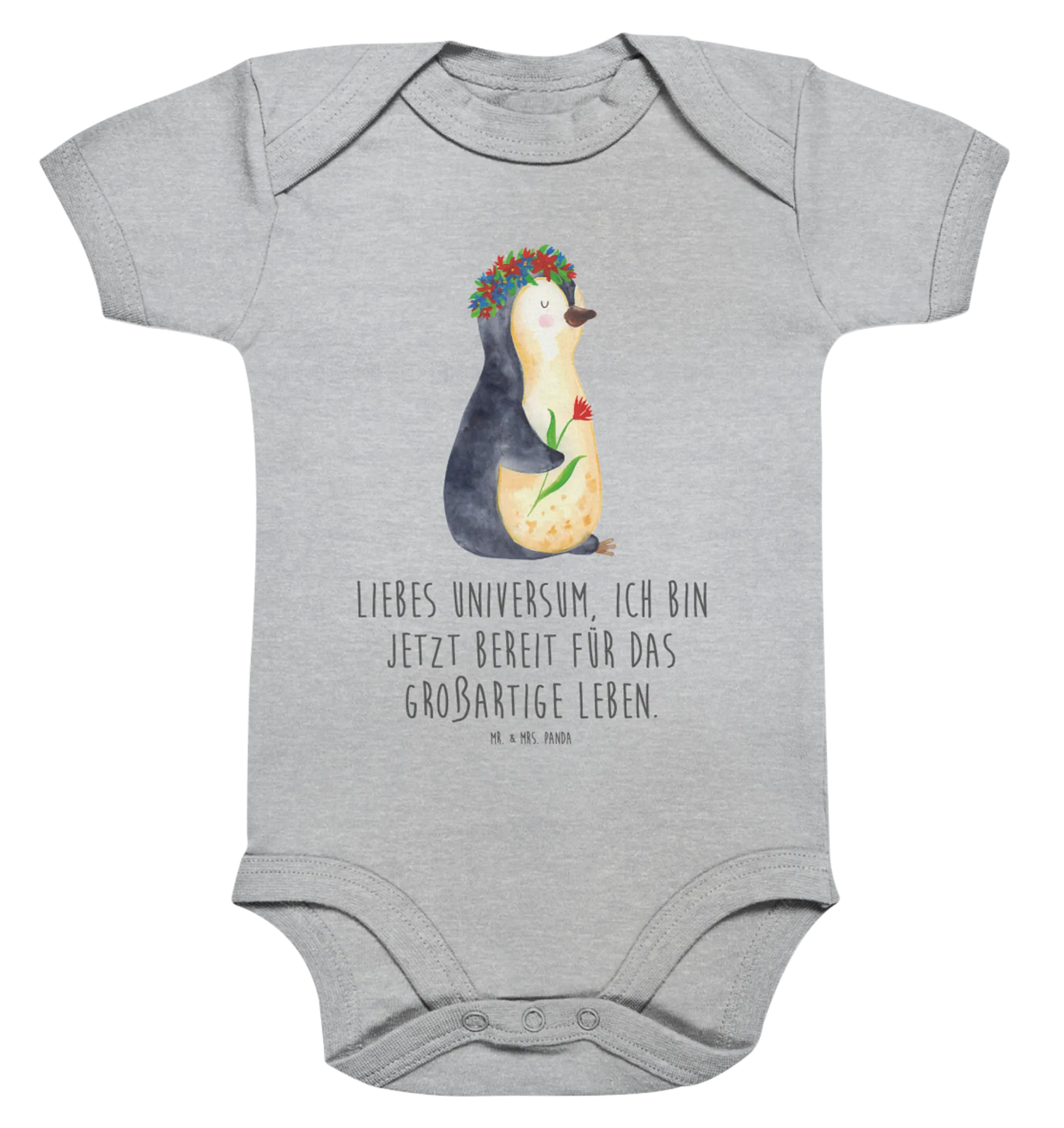 Introducing the delightful Organic Baby Body featuring the adorable Penguin flowerwreath from Mr. & Mrs. Panda's charming Penguin - Collection! This delightful baby bodysuit is not just a piece of clothing; it's a celebration of life and love wrapped in a whimsical design that both babies and parents will adore. Crafted from 100% organic cotton, it's soft, breathable, and kind to your baby's delicate skin. You can trust that it is the ideal choice for your little one.