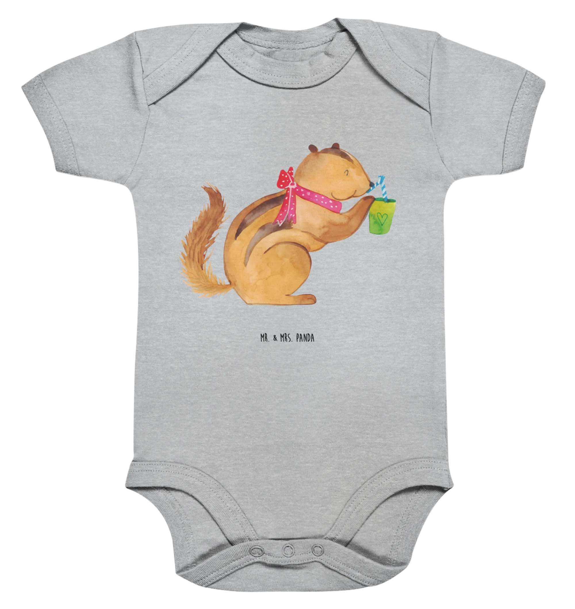 Crafted from high-quality organic cotton, it’s soft to the touch and gentle on baby’s skin, perfect for newborns aged 1 to 3 months. The eye-catching design of the charming squirrel enjoying a refreshing smoothie is sure to capture the hearts of parents and onlookers alike. It’s not just a clothing item; it’s a little piece of art, lovingly hand-drawn by Mrs. Panda, embodying warmth and cuteness that make it a special gift for any baby!
