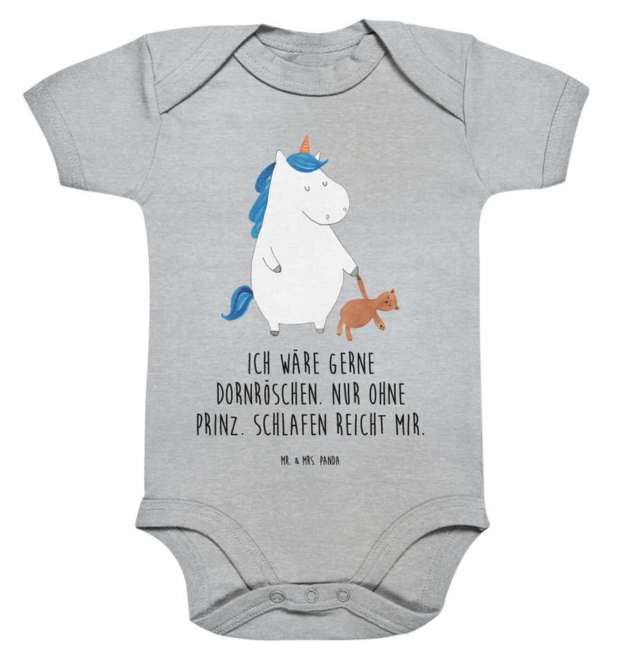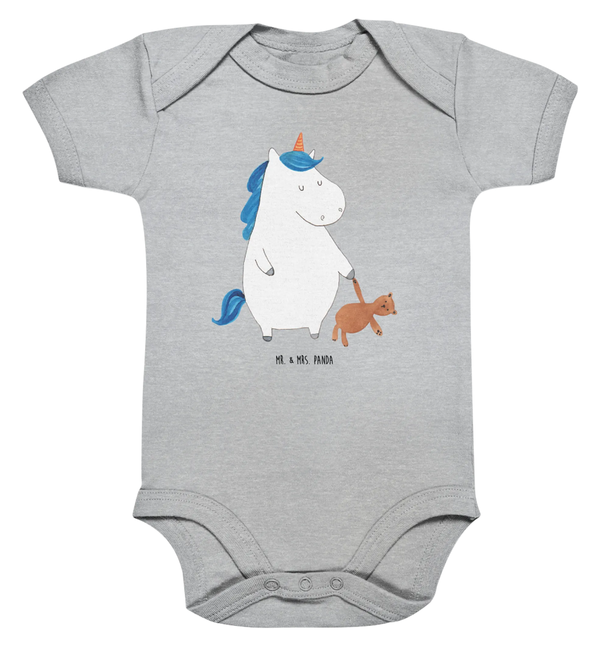 Introducing the delightful Organic Baby Body Unicorn Teddy from the special Unicorn - Collection by Mr. & Mrs. Panda! This charming bodysuit is the ultimate gift for little dreamers and brings a sprinkle of happiness to every outfit. With its hand-drawn motif of a sleepy unicorn holding a teddy bear, this baby body is not only adorable but also perfect for snuggling up when it’s time to sleep.