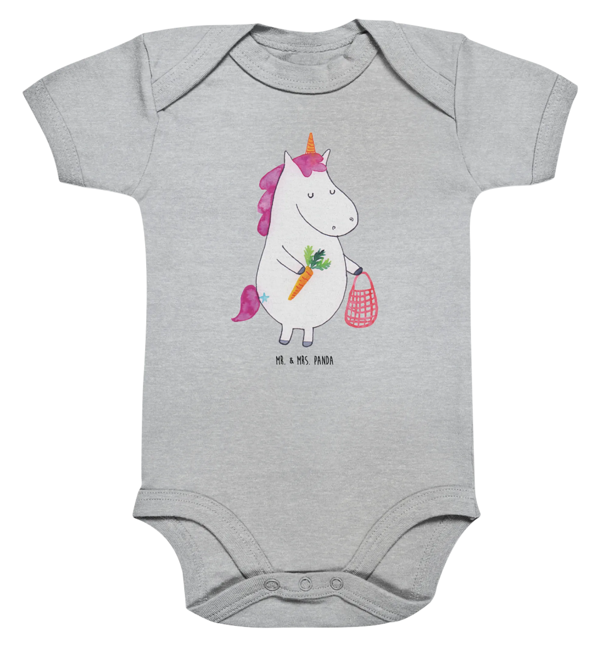 Introducing the charming Organic Baby Body Unicorn Vegetables from the delightful Unicorn Collection by Mr. & Mrs. Panda! This adorable baby body is designed exclusively for your little one, featuring a unique hand-drawn motif of a cute unicorn carrying colorful vegetables. Made from high-quality organic cotton, it ensures that your precious baby is wrapped in softness and comfort, allowing them to play, explore, and nap without any irritation to their delicate skin.