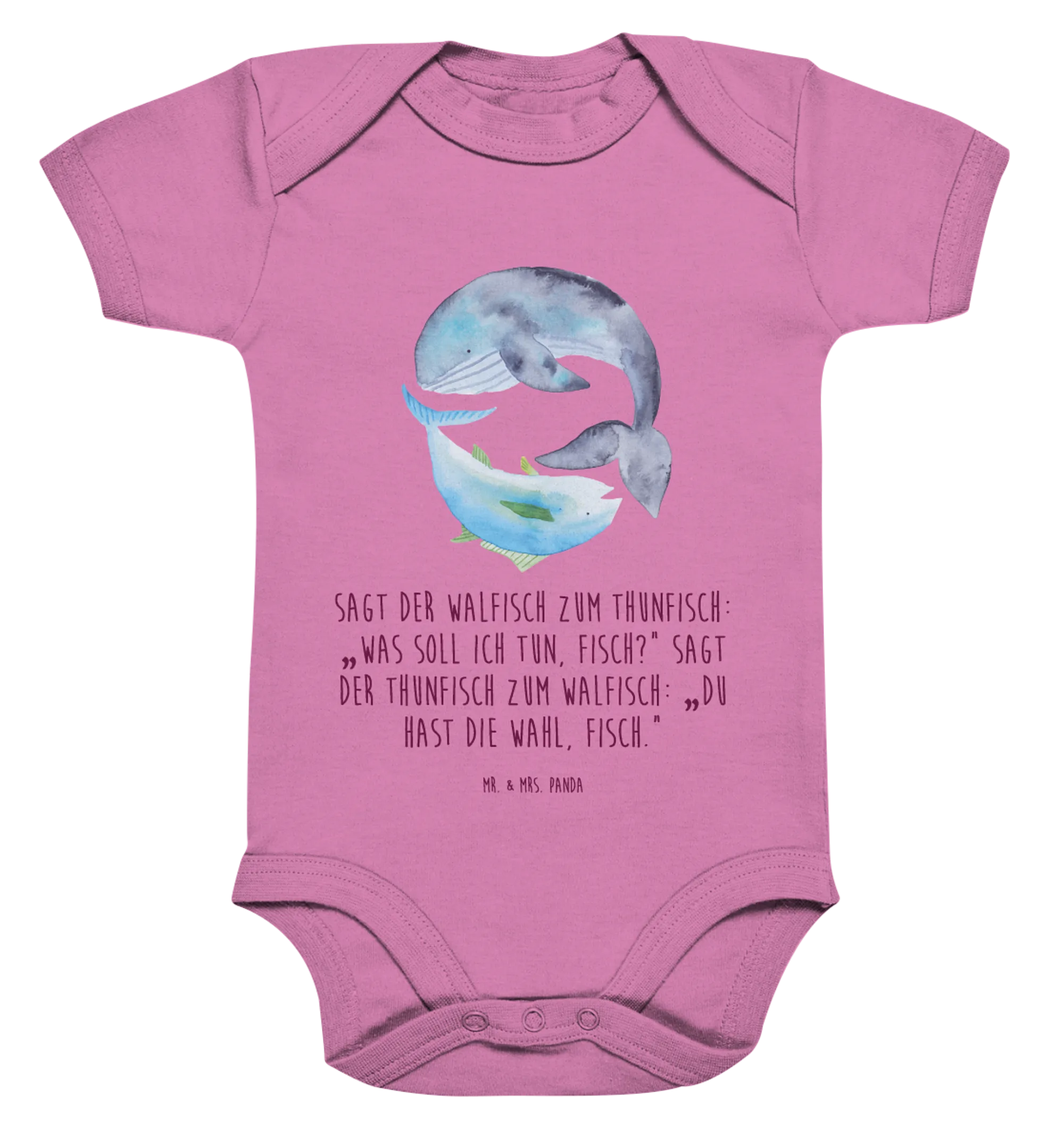 One of the highlights of this baby bodysuit is its playful phrase: "Sagt der Walfisch zum Thunfisch: „Was soll ich tun, Fisch?“ Sagt der Thunfisch zum Walfisch: „Du hast die Wahl, Fisch.“" This funny saying adds an extra layer of charm and can bring a smile to every parent's face! A fine blend of fun and cuteness makes it a perfect outfit for photo ops — capture those memorable moments forever!