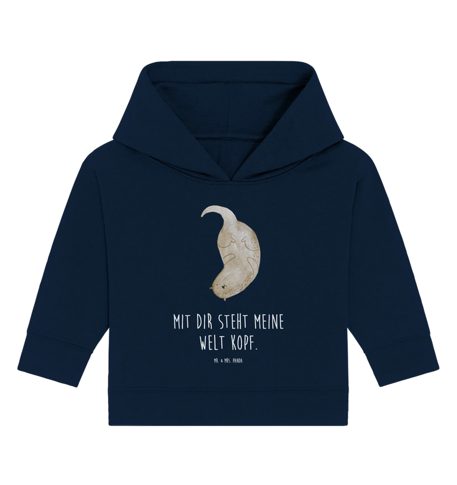 Organic Baby Hoodie otter upside down - 12. - 18. Monat - with saying - French Navy