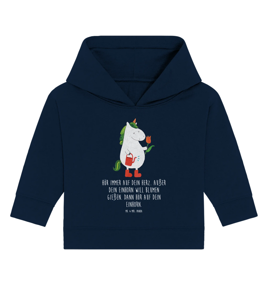 Organic Baby Hoodie unicorn gardener - 12. - 18. Monat - with a saying - French Navy
