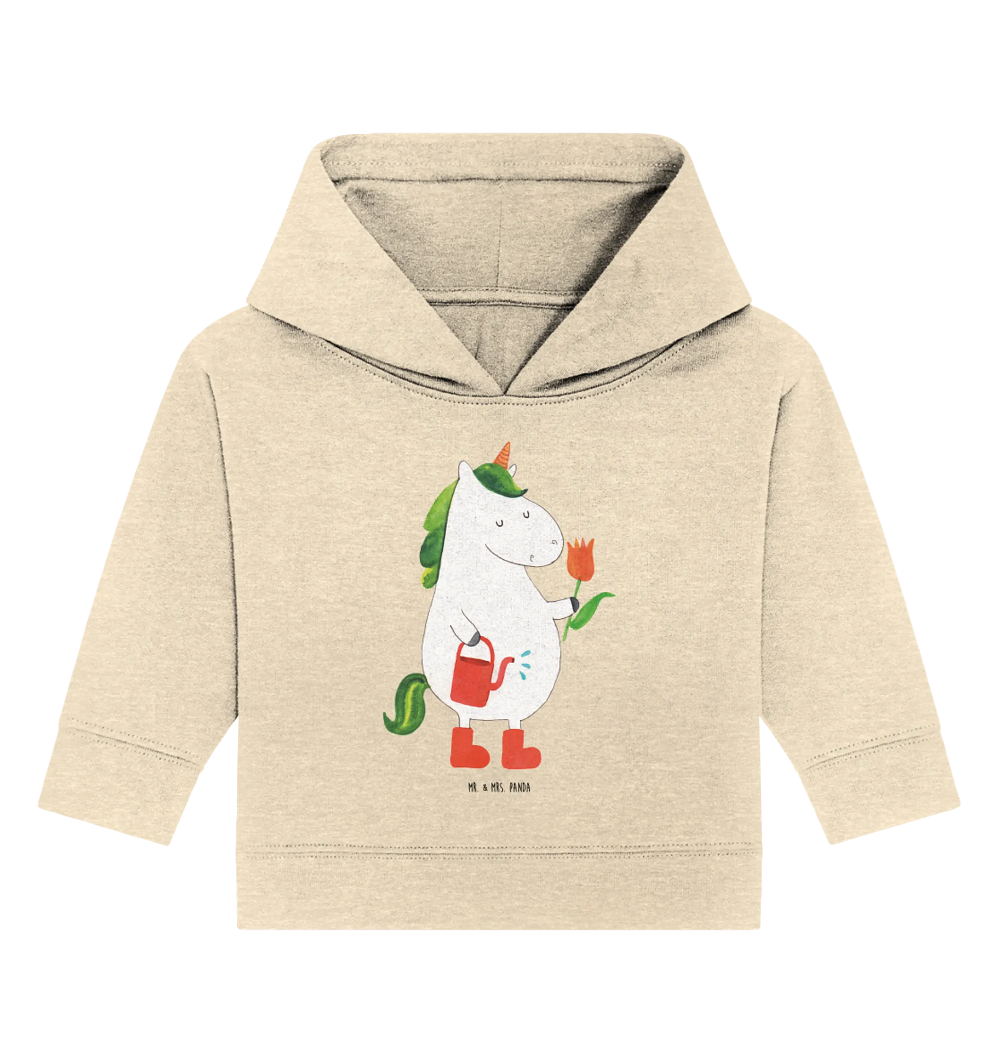 Introducing the adorable Organic Baby Hoodie from Mr. & Mrs. Panda, featuring the delightful Unicorn Gardener motif! This unique piece is part of our exclusive Unicorn Collection, designed with love and crafted in the heart of Northern Germany. Every stitch and every hand-drawn detail on this hoodie brings a sprinkle of magic, capturing the whimsical charm of unicorns who love to garden. Imagine your little one wearing this cozy hoodie while exploring the great outdoors or helping you plant flowers in the garden! It’s not just a hoodie; it’s an invitation to dream and explore a world filled with colors and flowers.