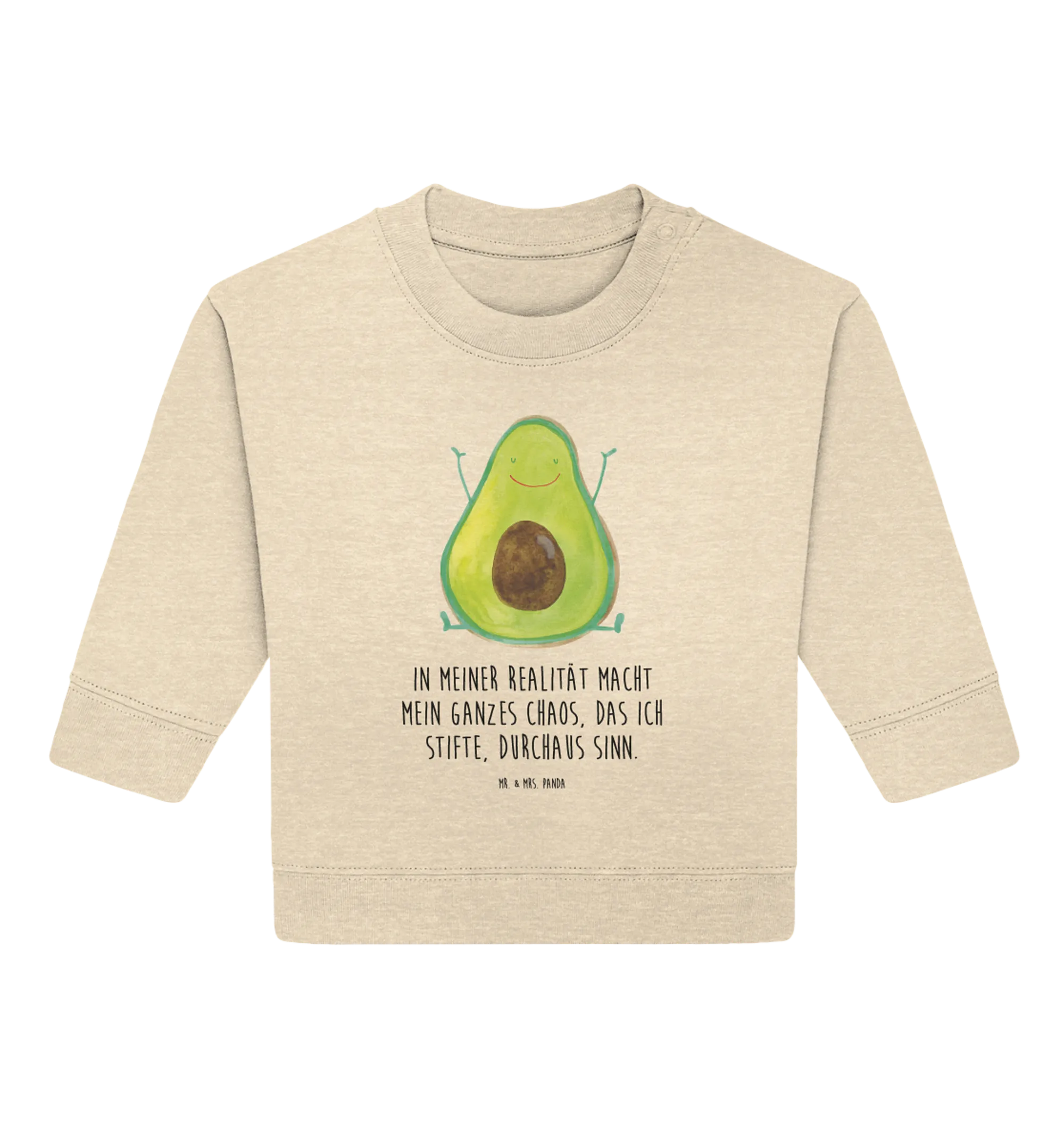 Die Avocado Kollektion ist eine liebevolle Zusammenstellung, die zeigt, welche Wunder das Leben für uns bereithält. Egal ob als Geschenk zur Geburt, zum ersten Geburtstag oder einfach nur, um einem besonderen Menschen eine Freude zu bereiten – dieser Pullover sorgt für begeisterte Gesichter. Der Spruch „In meiner Realität macht mein ganzes Chaos, das ich stifte, durchaus Sinn.” fängt die unbeschwerte und fröhliche Stimmung perfekt ein.