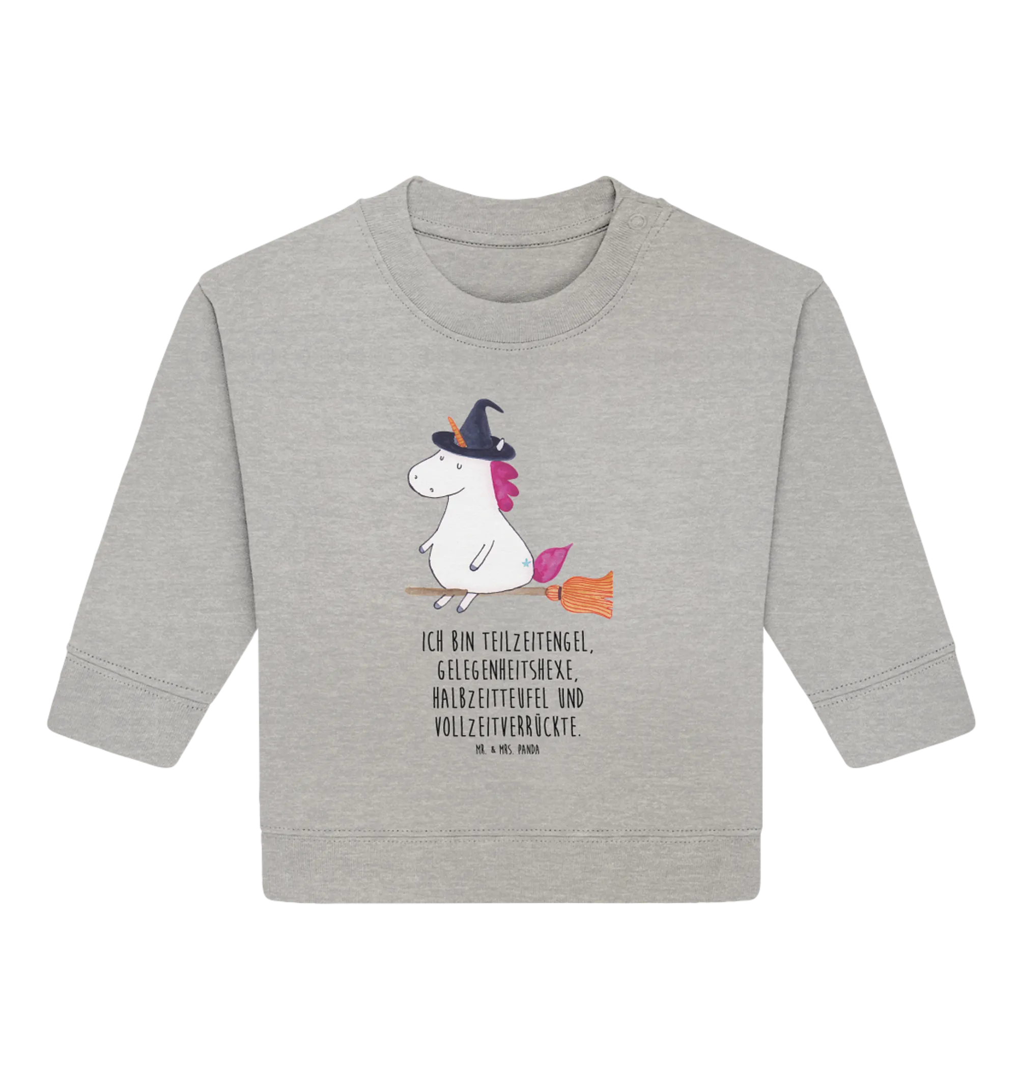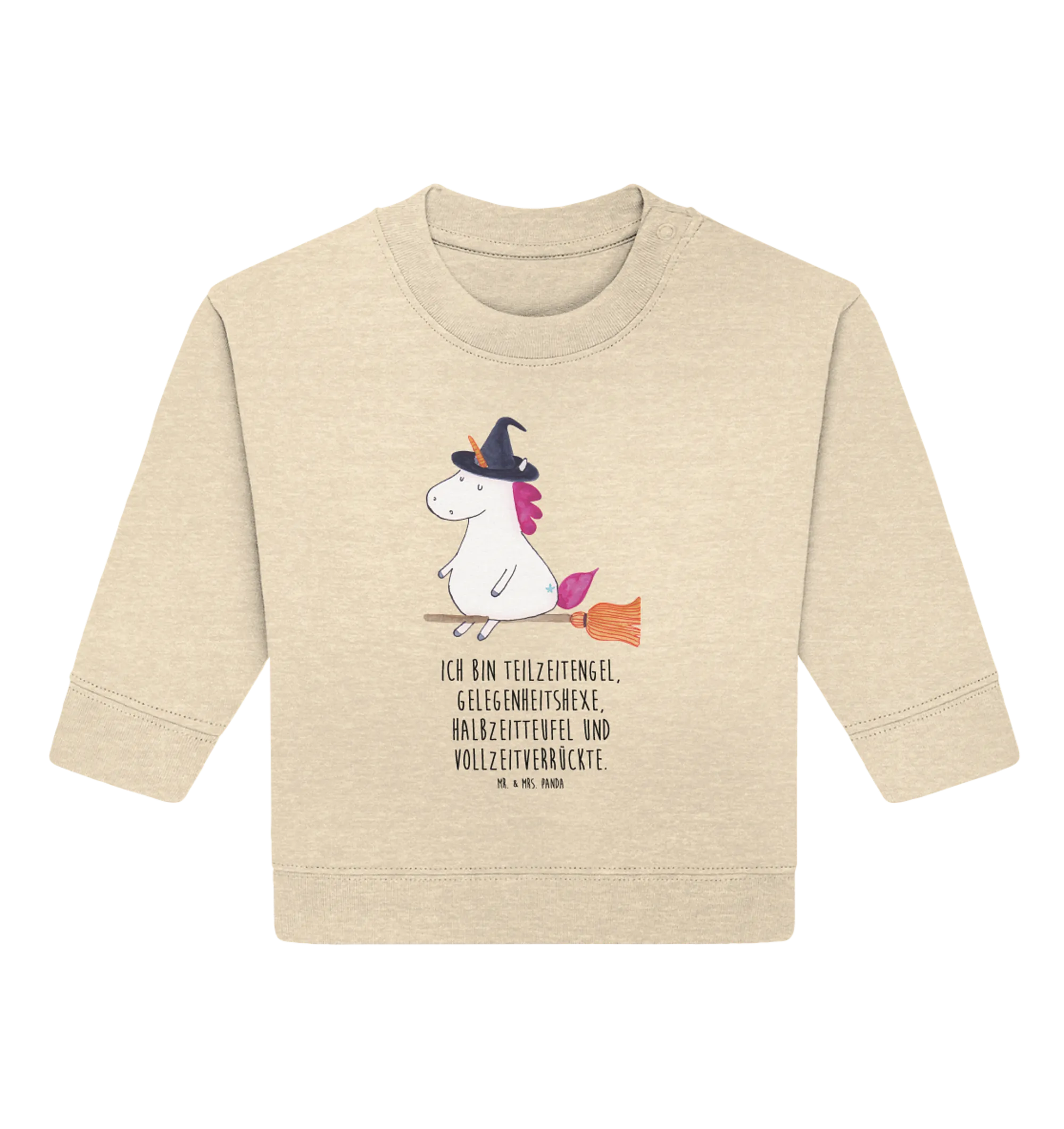 So whether you’re a loving parent or a caring friend, this Organic Baby Pullover with the Unicorn Witch motif is an excellent choice for anyone who wants to spread joy, spark creativity, and envelop their little ones in coziness. Dress your baby in style, comfort, and a sprinkle of magic with this beautiful sweatshirt from Mr. & Mrs. Panda. It’s not just a pullover; it’s a little piece of magic brought to life, waiting to be worn and cherished! Don’t miss out on this enchanting addition to your baby’s clothing collection! Whether for everyday adventures or special celebrations, it’s the perfect gift, filled with character and warmth, because every baby deserves to shine!