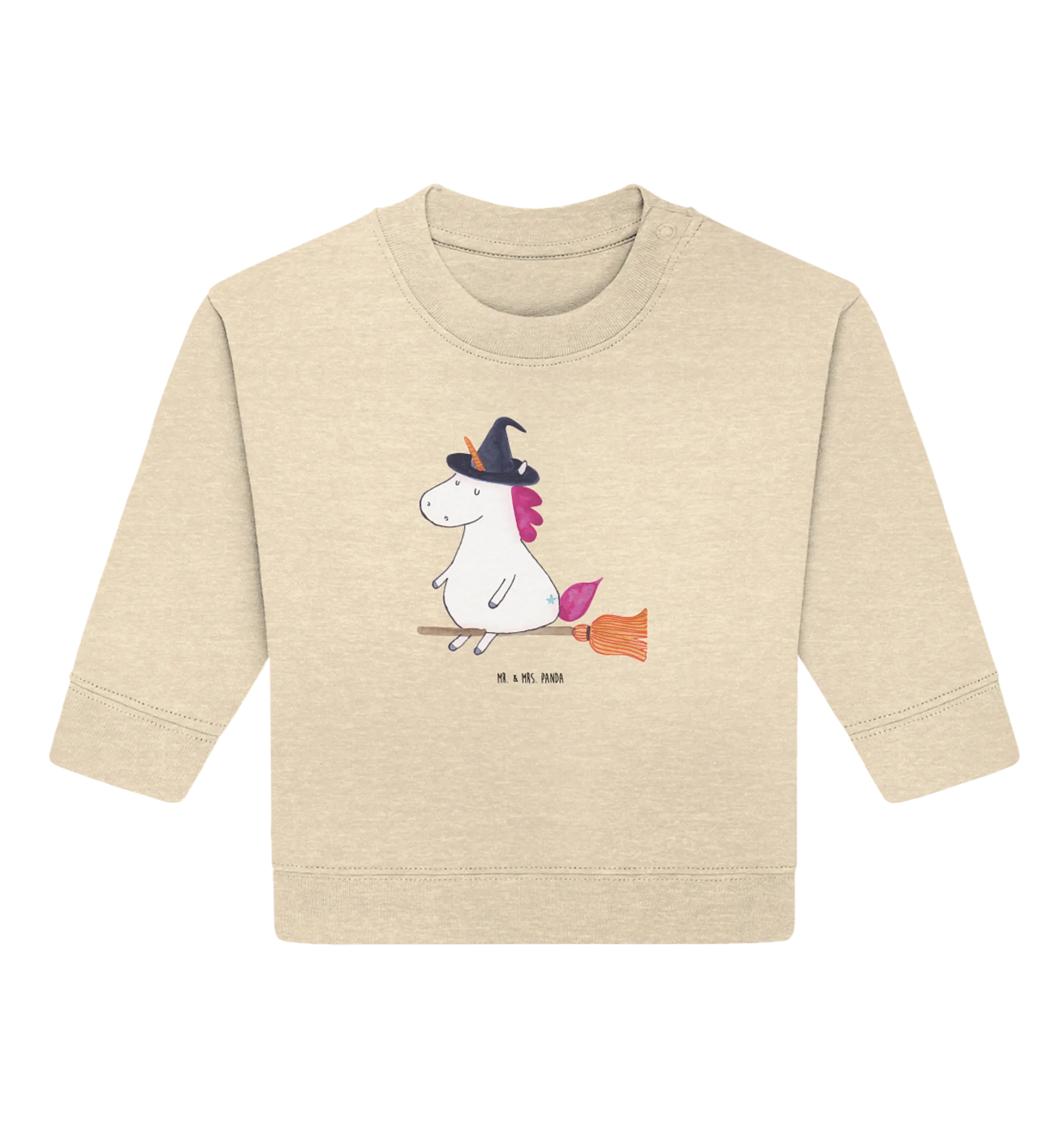Introducing the magical and whimsical Organic Baby Pullover featuring the enchanting Unicorn Witch motif from the exclusive Unicorn Collection by Mr. & Mrs. Panda!
