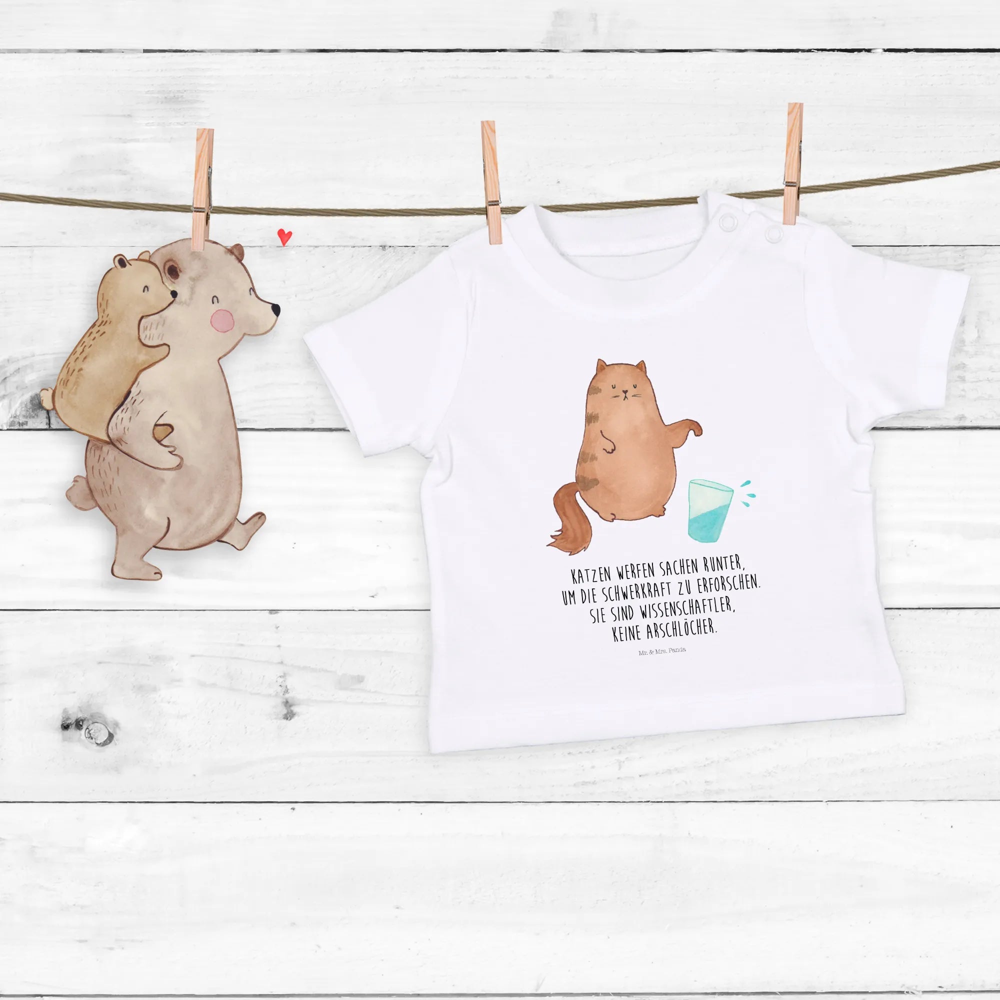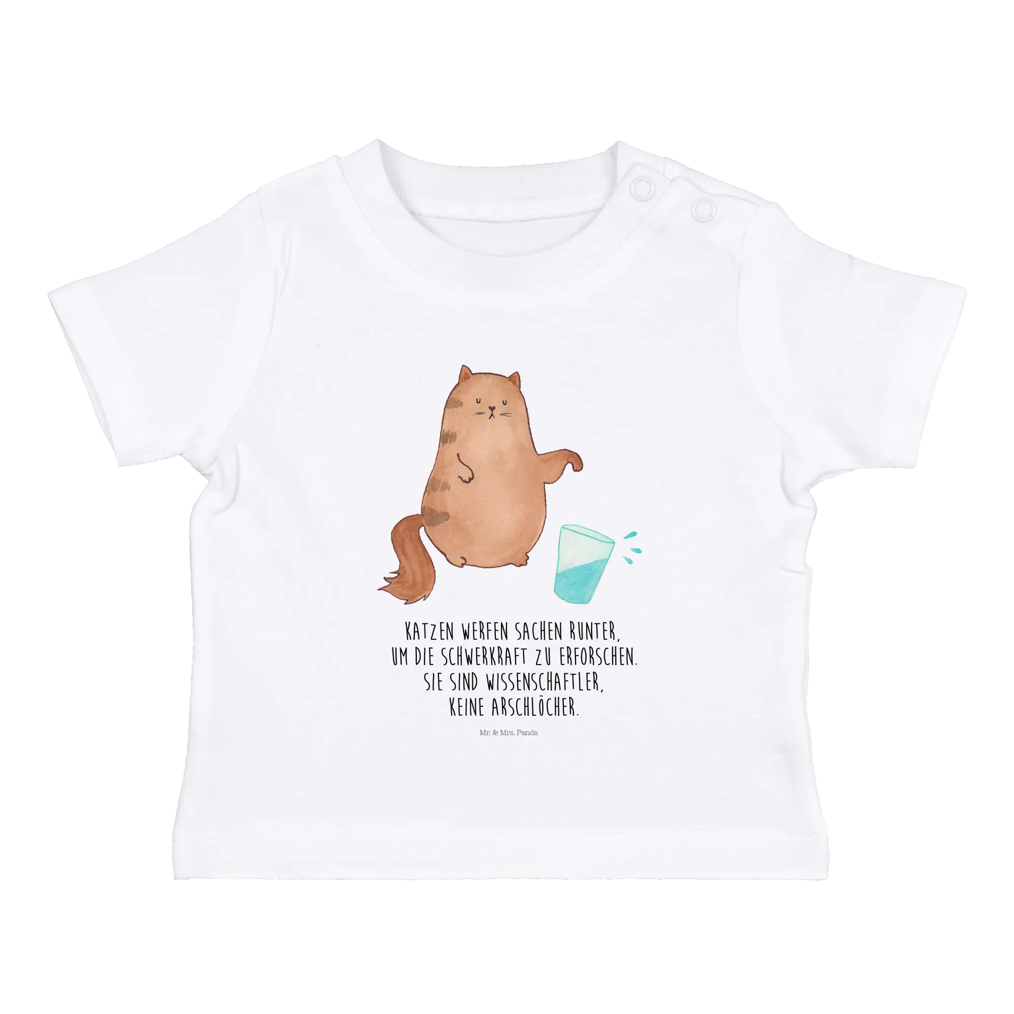 This Organic Baby Shirt isn't just a cute piece of clothing; it's a conversation starter for fellow cat owners and a favorite for cat fans everywhere! The artistic design features a cheeky little kitty exploring a water glass, portraying the playful nature of cats investigating everything around them. Not to mention, it comes with a delightful slogan: "Cats knock things over simply to investigate the effects of gravity - they're scientists, not jerks." This adds just the right touch of humor that resonates with anyone who has spent time in the company of our furry friends.