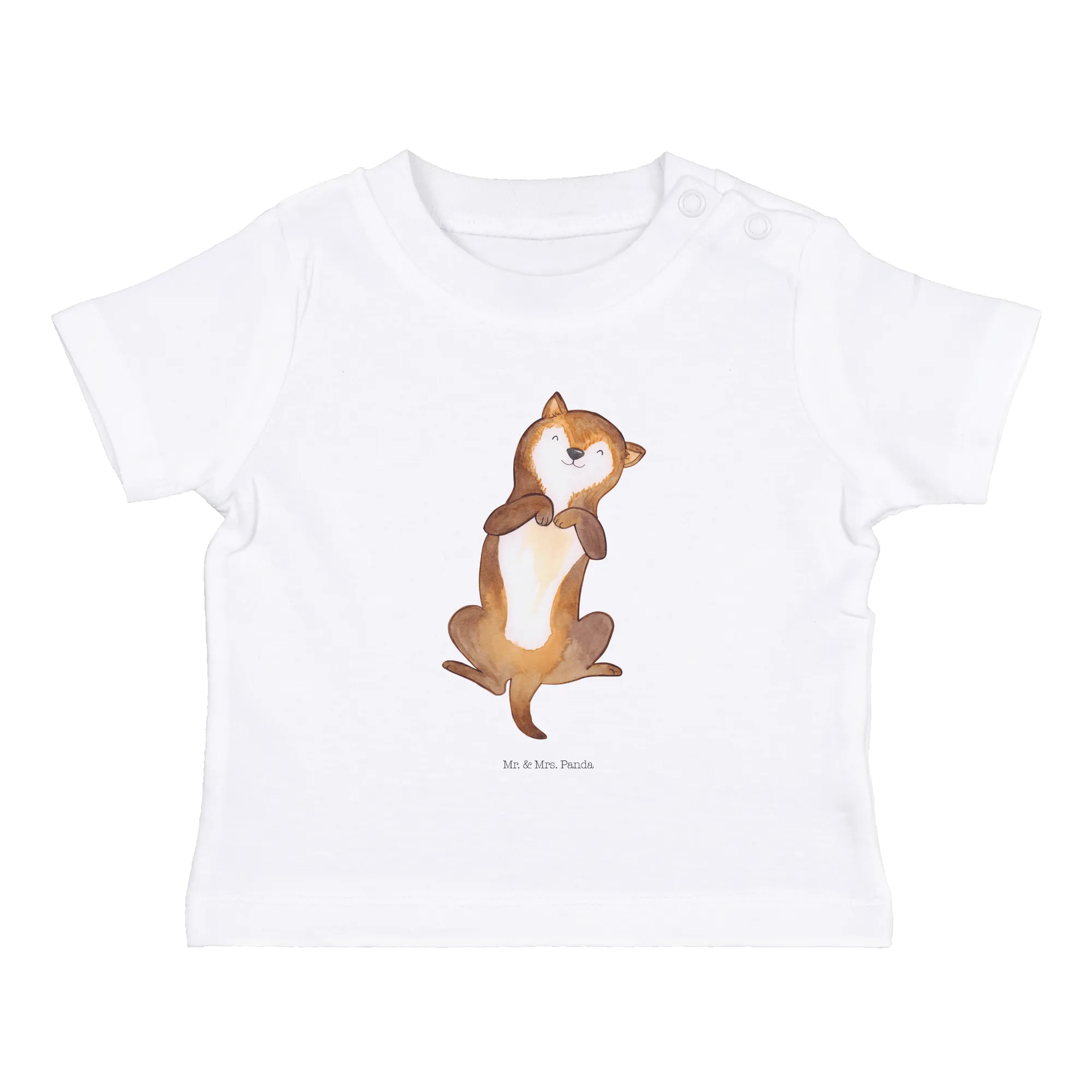 This delightful shirt, from the Mr. & Mrs. Panda Dog Collection, is not just a piece of clothing; it’s a heartfelt expression of love for our furry friends and their endless cuteness. The cute design shows a joyful pup lying on its back, eagerly waiting for a little one to shower it with affection, which beautifully represents the bond between dogs and humans.